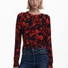 Fine long-sleeve sweater with a round neck and water lily print designed by Monsieur Christian Lacroix.