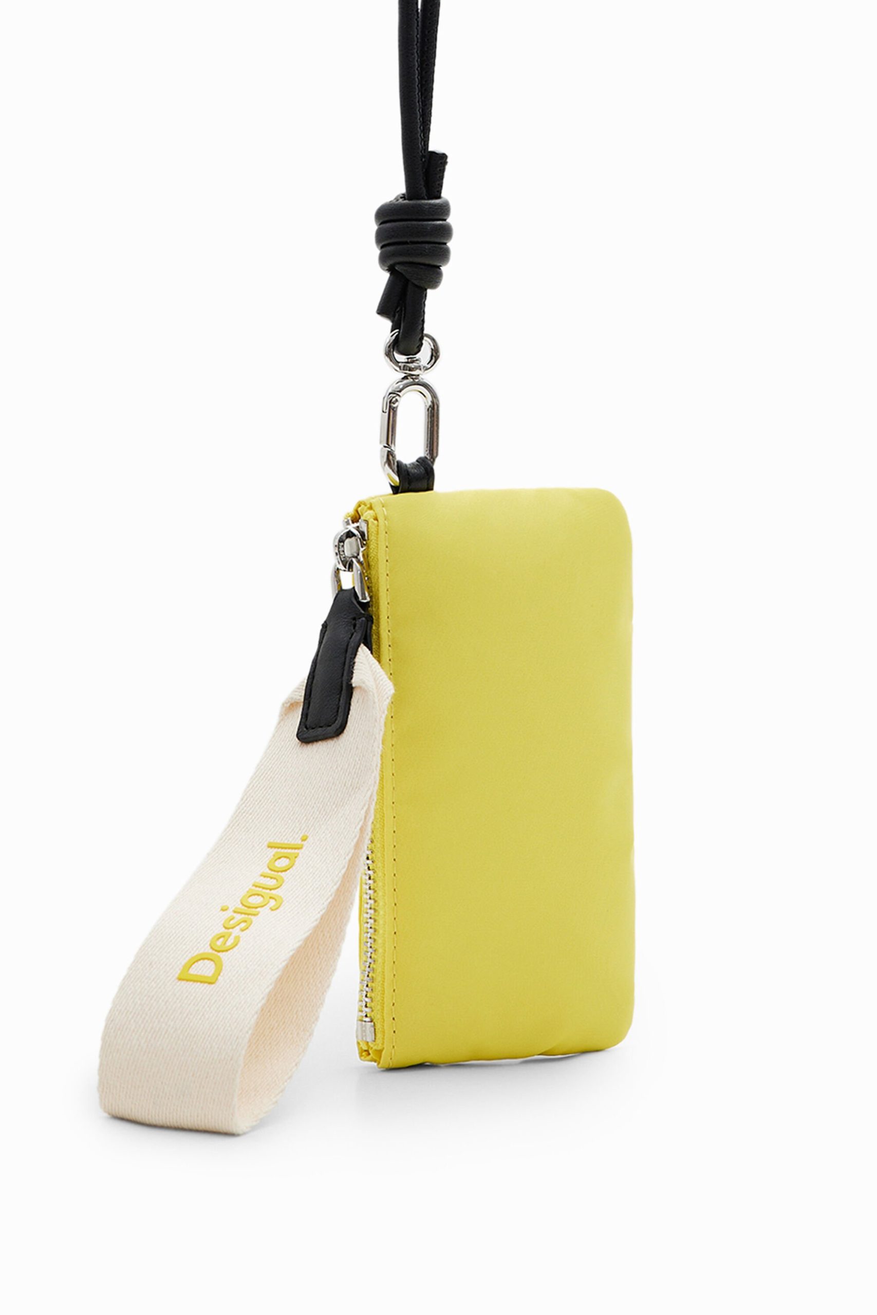 Small solid-coloured nylon wallet with a zip featuring a decorative element with the Desigual logo