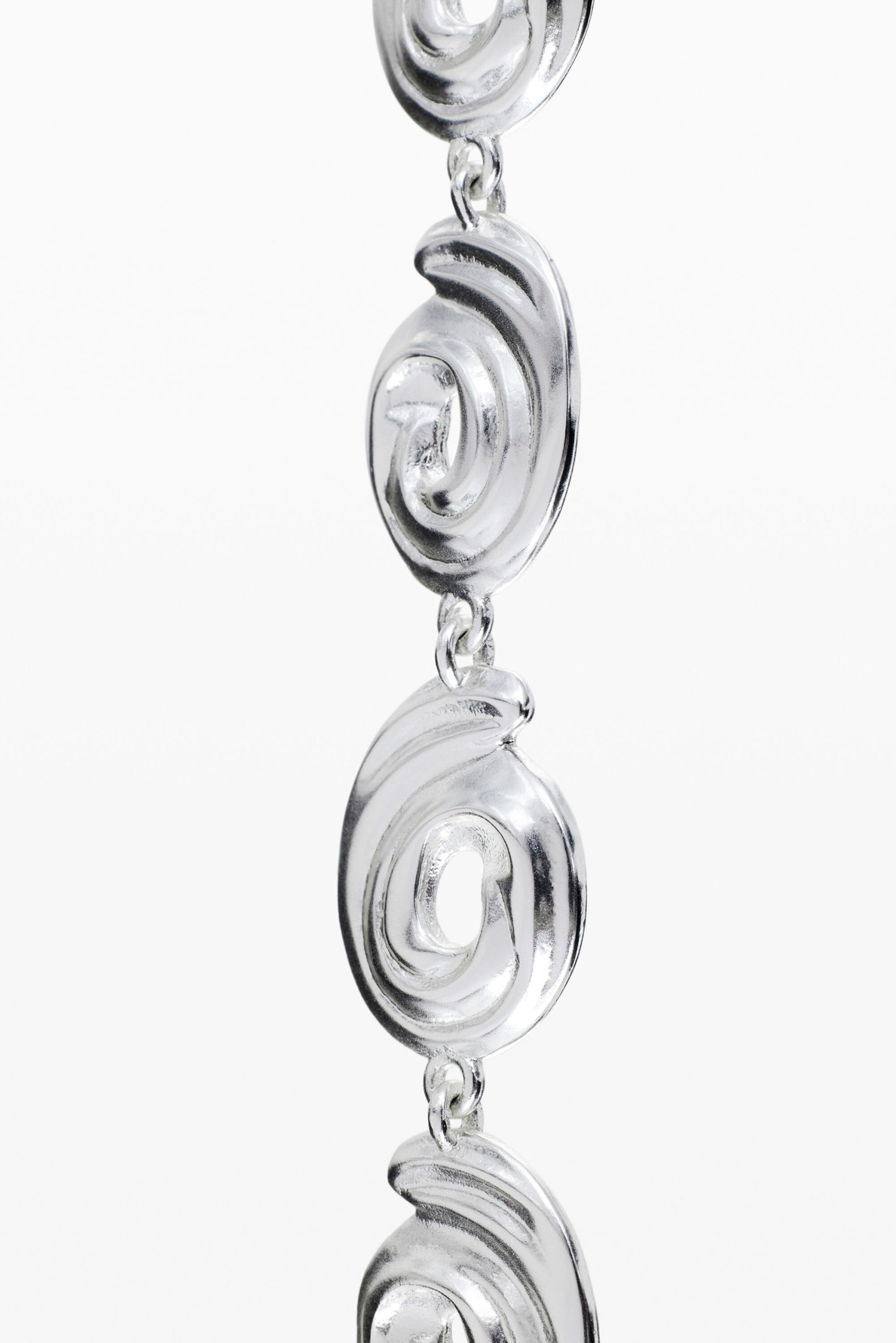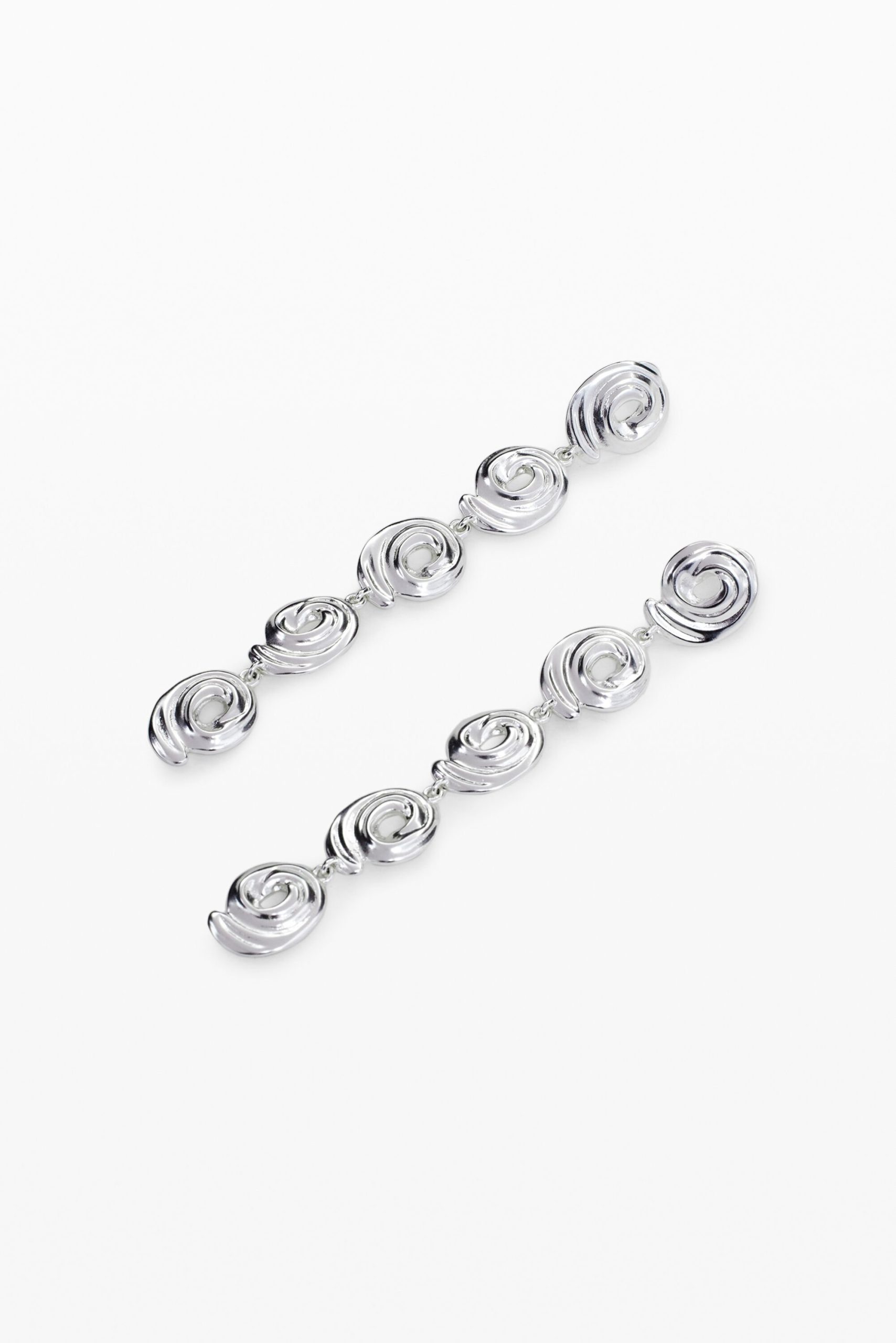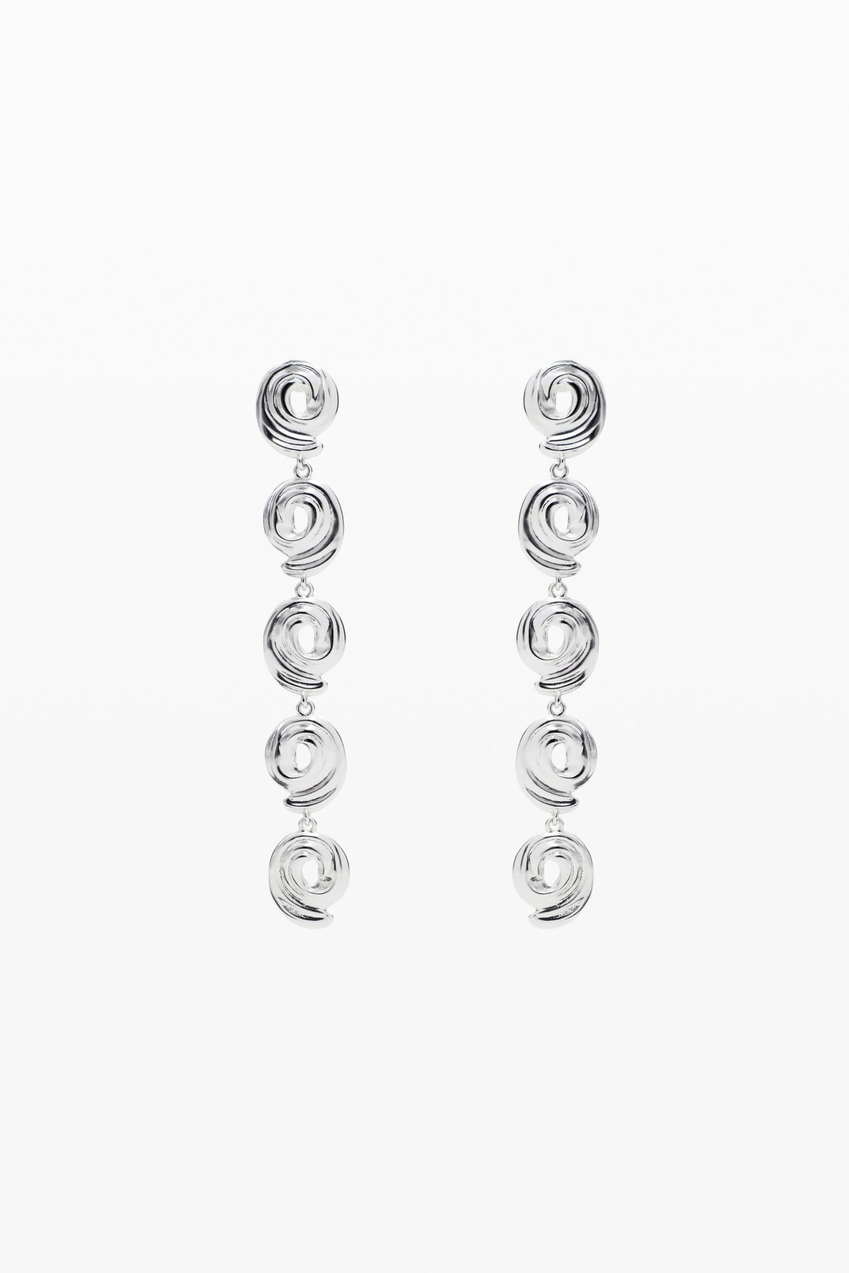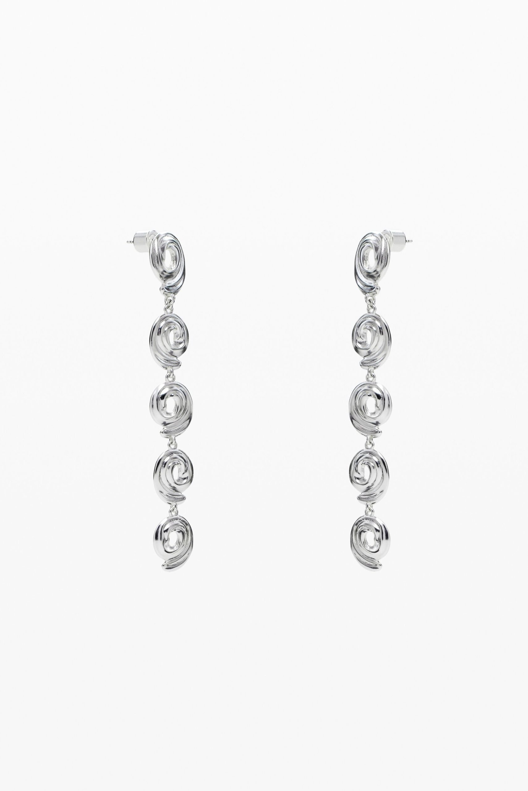 Cascade earrings with spiral shapes in sterling silver of 3 micro inches and pressure closure, with pearl details. Zalio x Desigual collection; designed by Gala Meyer.