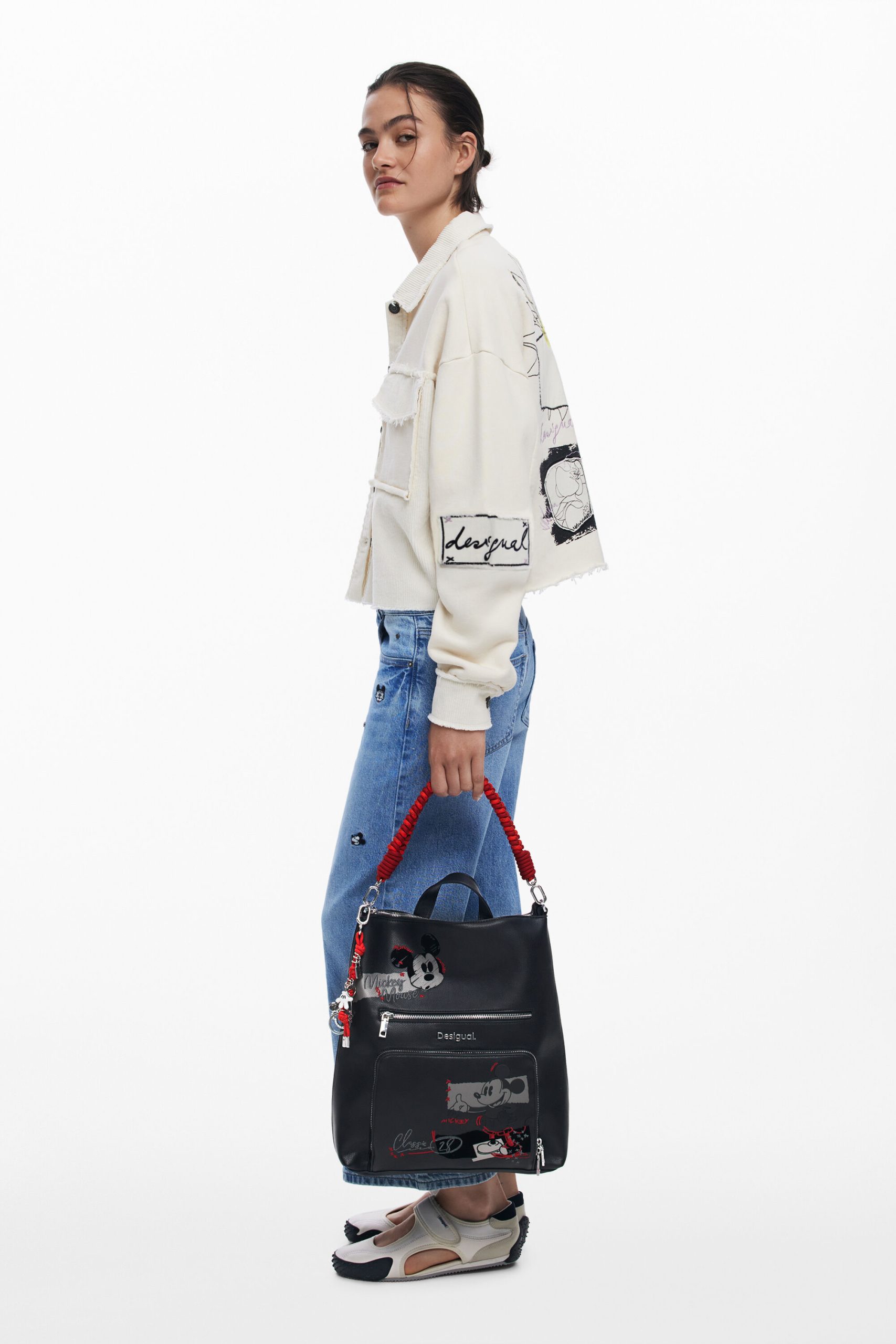 Medium faux leather backpack with exterior pockets, detachable handle convertible to a bag, and embroidery with Mickey Mouse™ motifs.