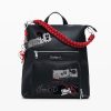Medium faux leather backpack with exterior pockets, detachable handle convertible to a bag, and embroidery with Mickey Mouse™ motifs.