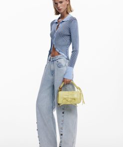 - Braided details on the pockets with metal eyelets