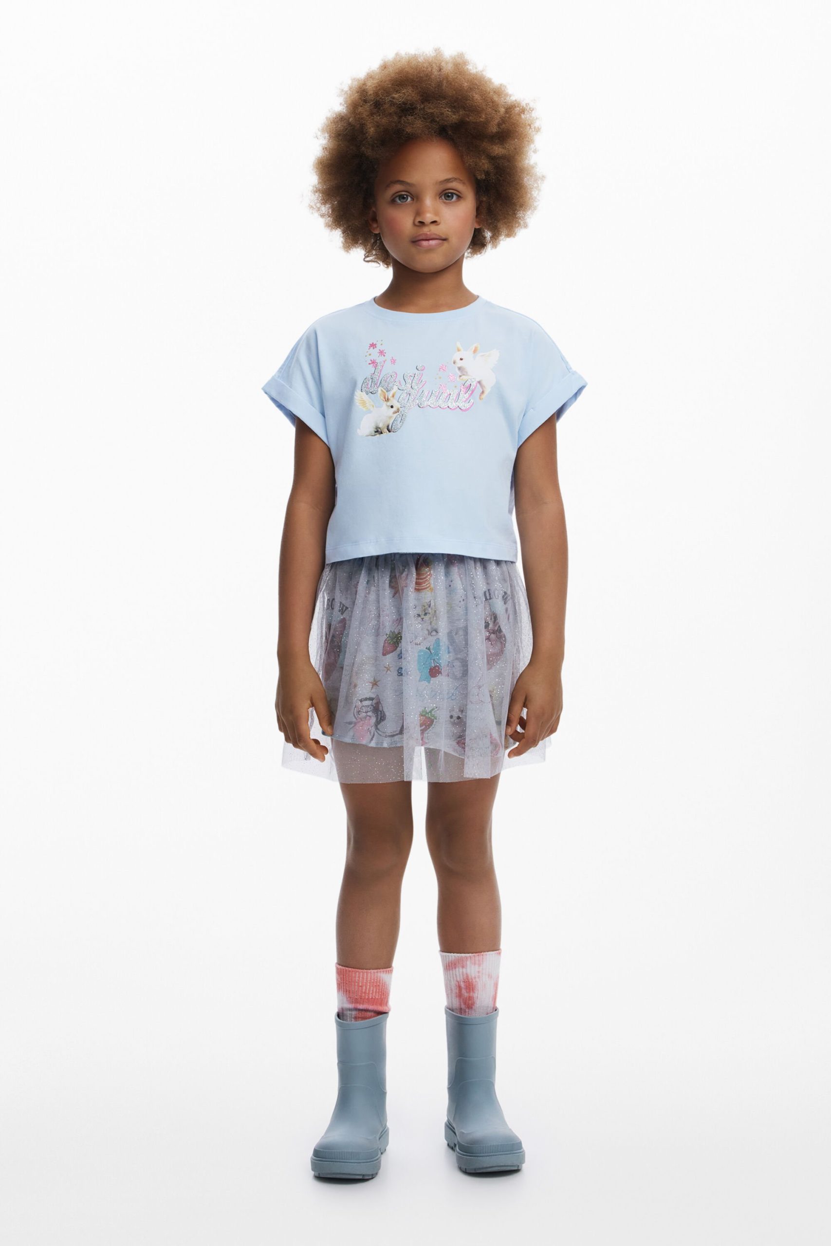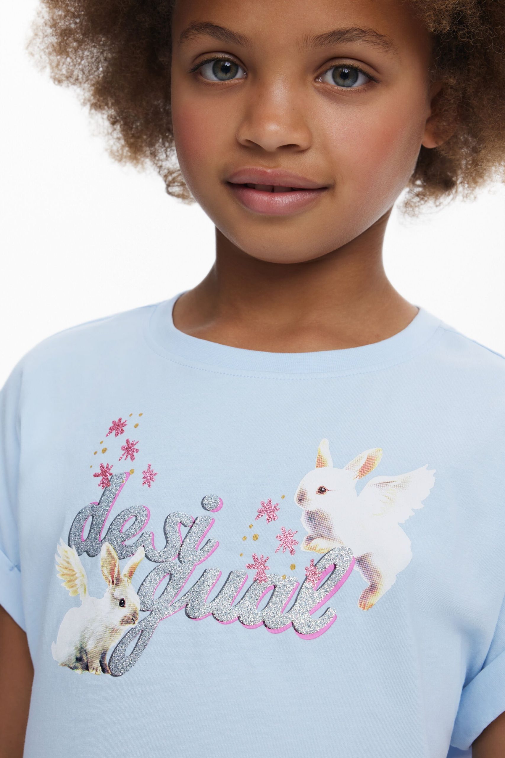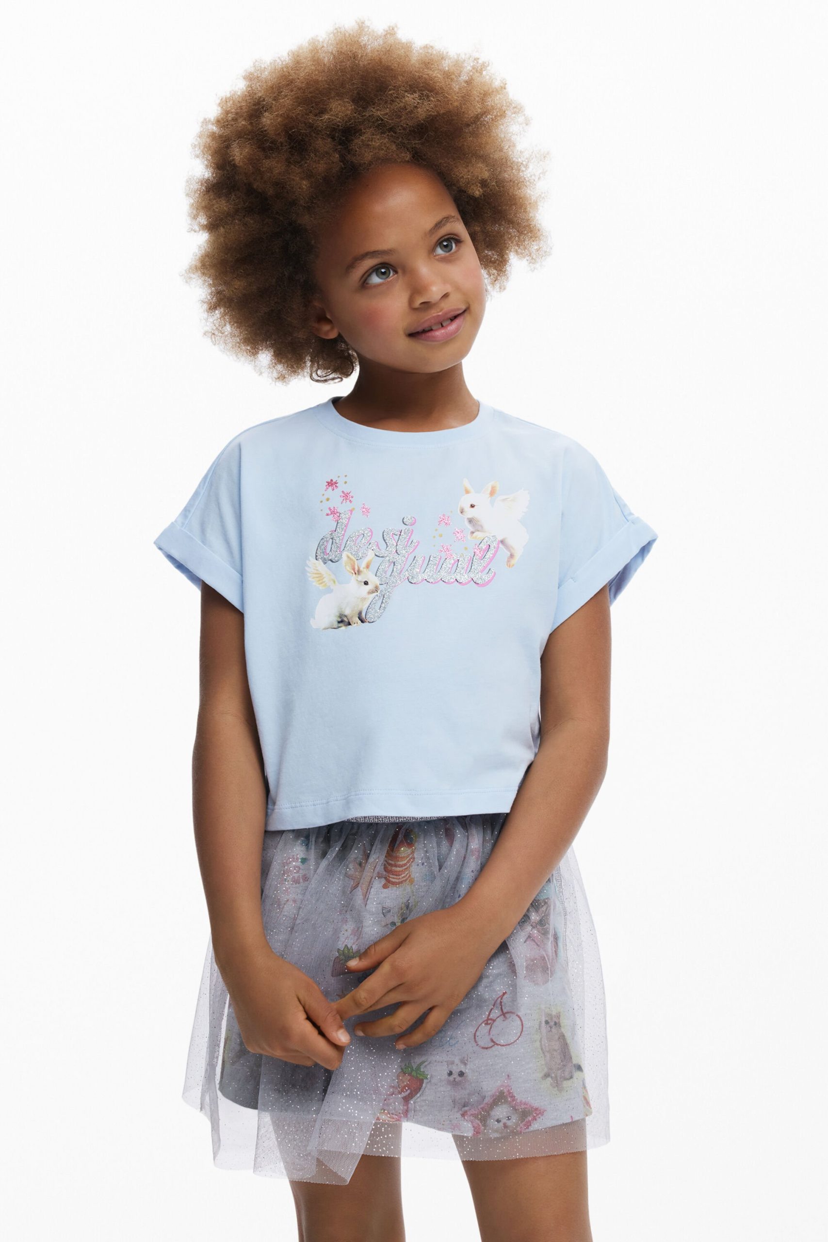Desigual Kid’s Girl Cropped T-shirt With Shiny Logo Rabbits