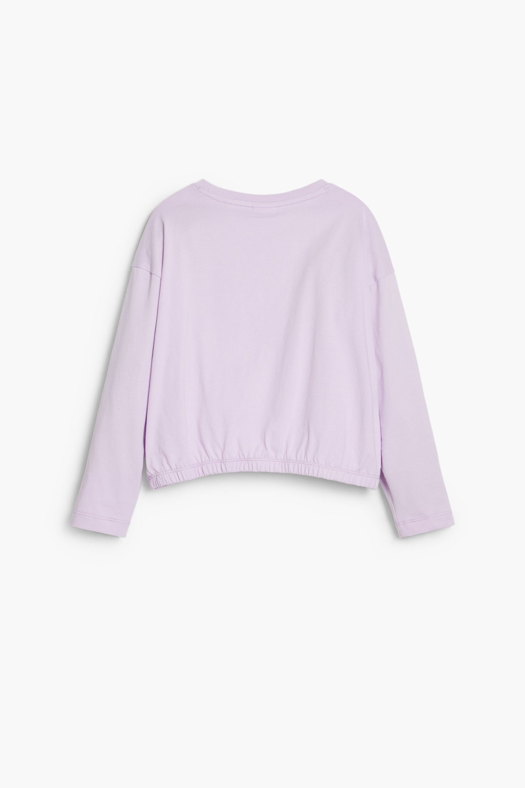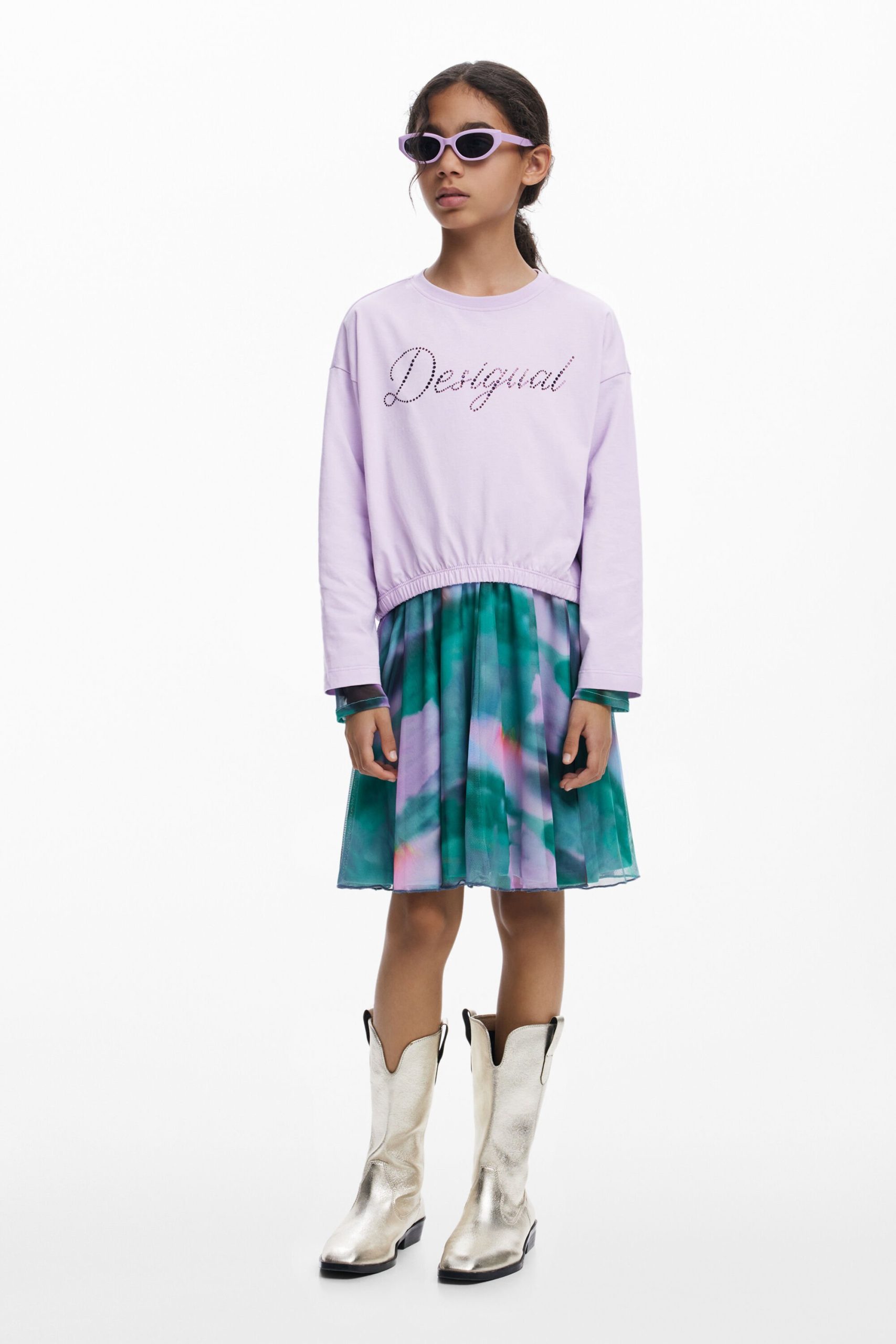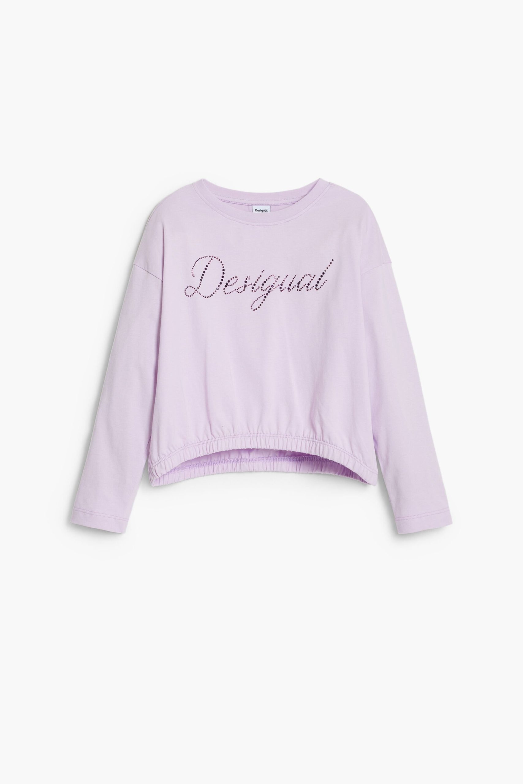 Long-sleeve T-shirt with a round neck, in cotton, in a solid color and with a logo detail in strass.