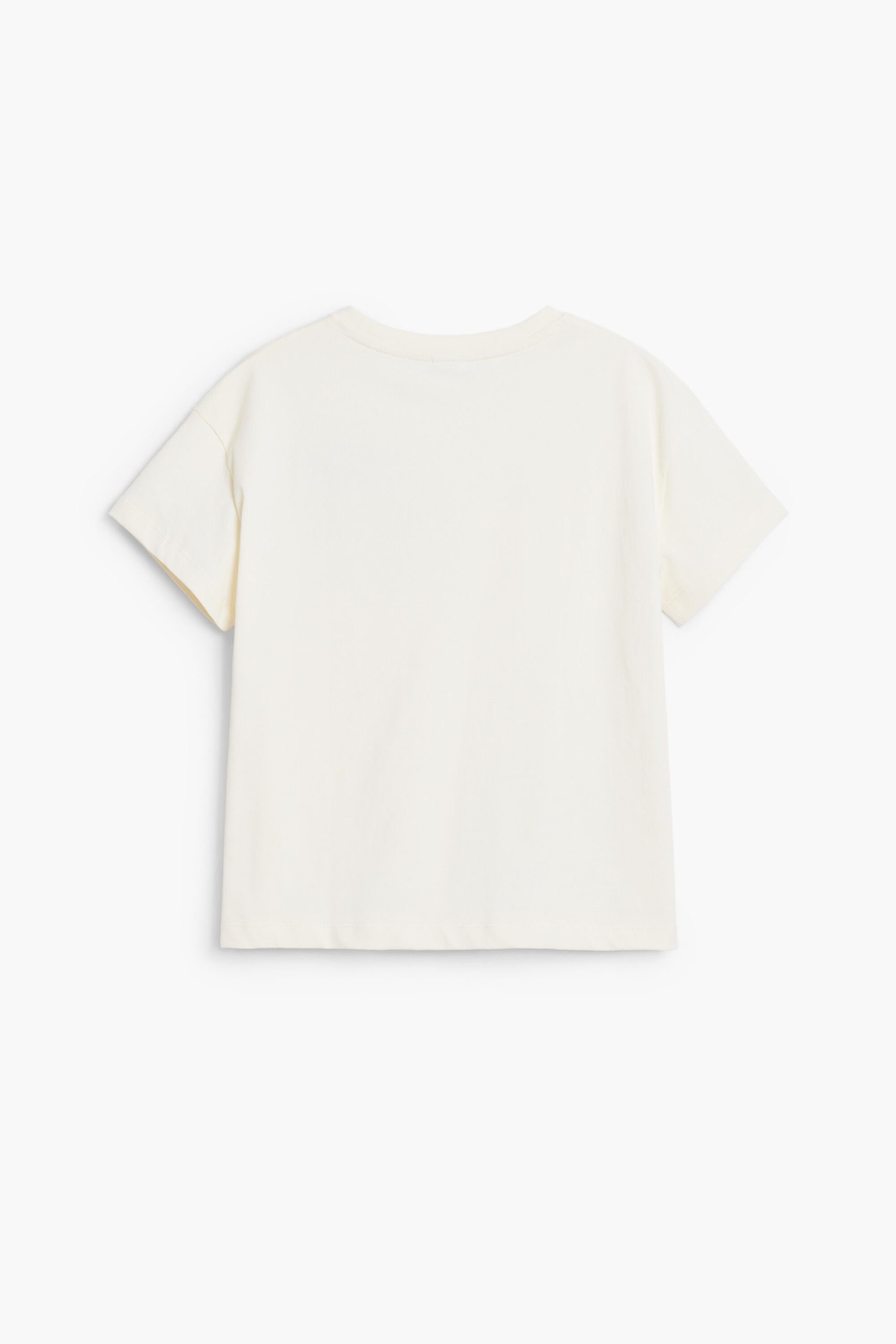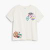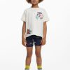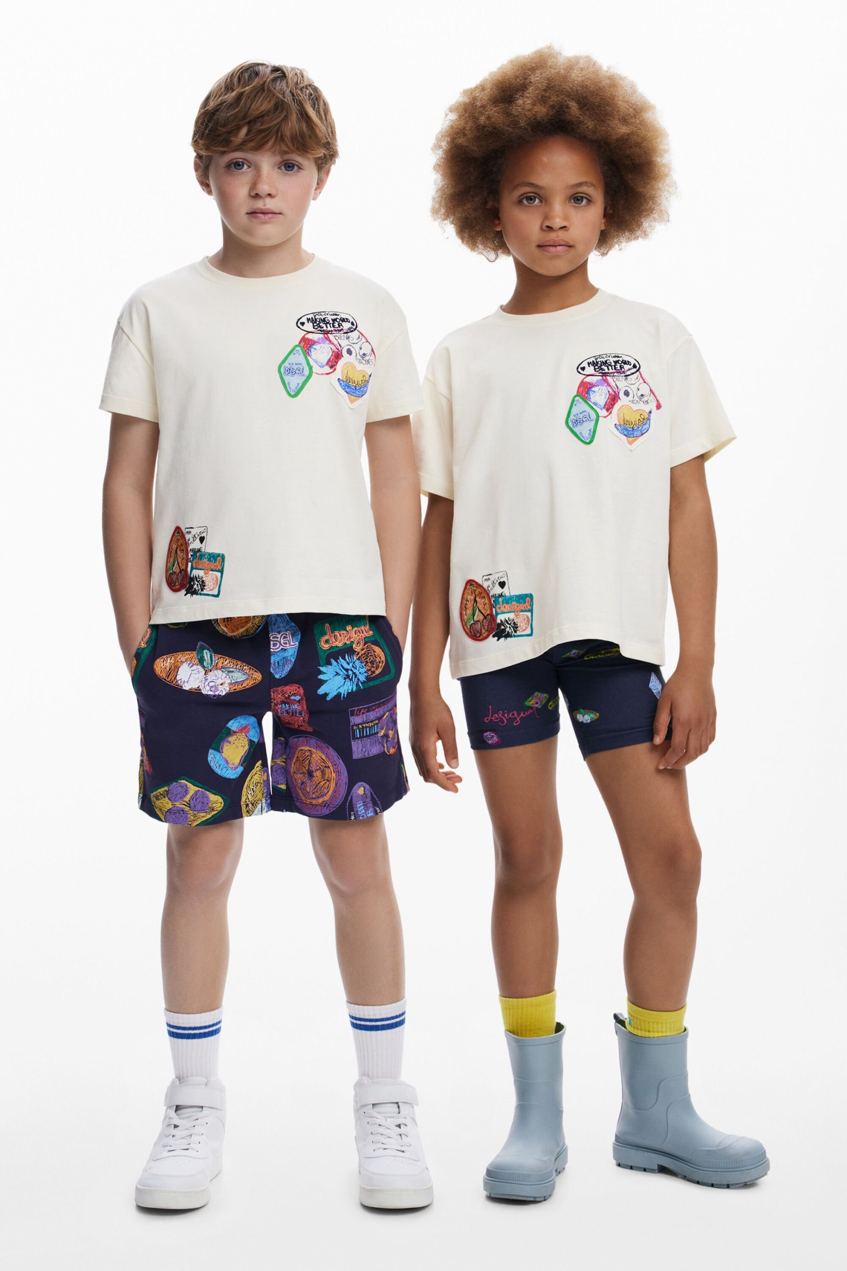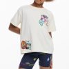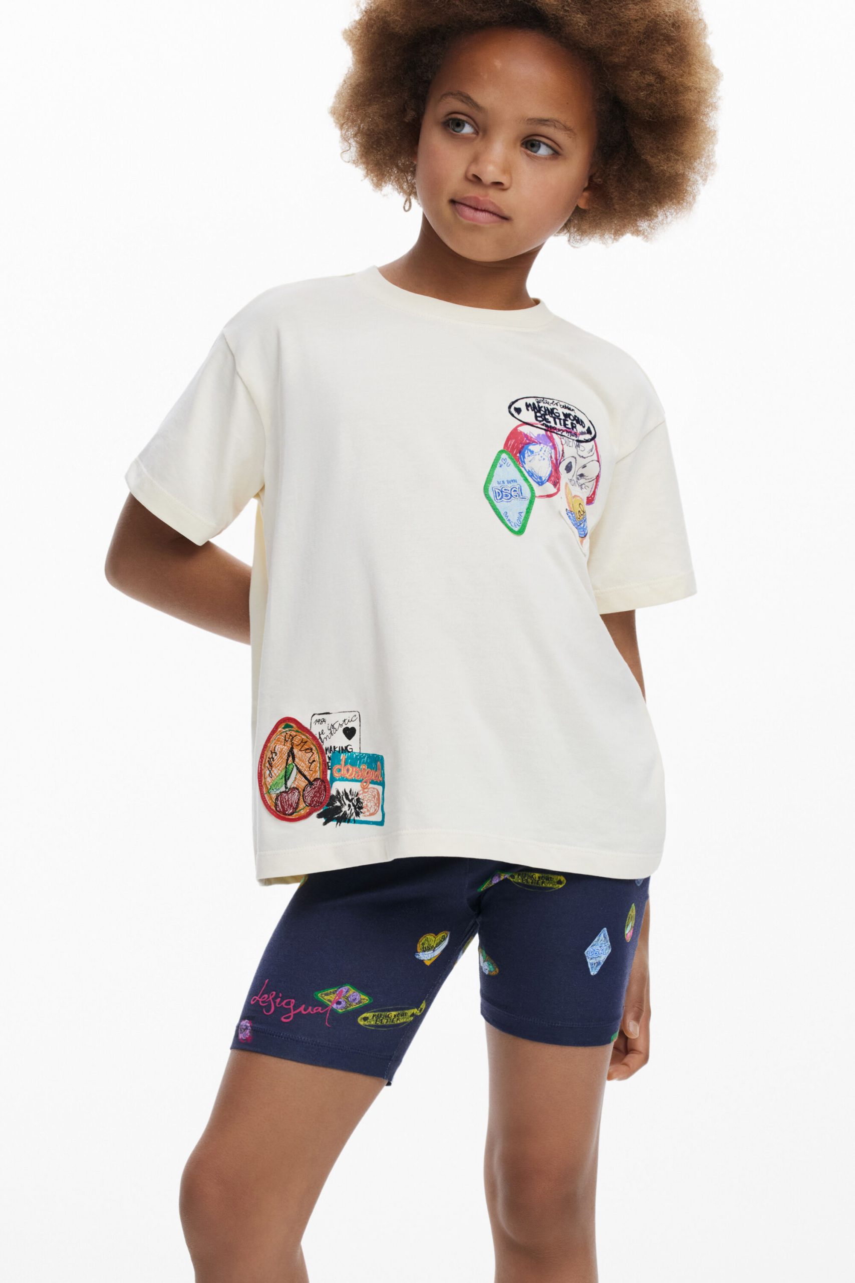 T-shirt in cotton, with short sleeves and a round neck, featuring sections and embroidery of drawings and positive messages.