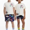 T-shirt in cotton, with short sleeves and a round neck, featuring sections and embroidery of drawings and positive messages.
