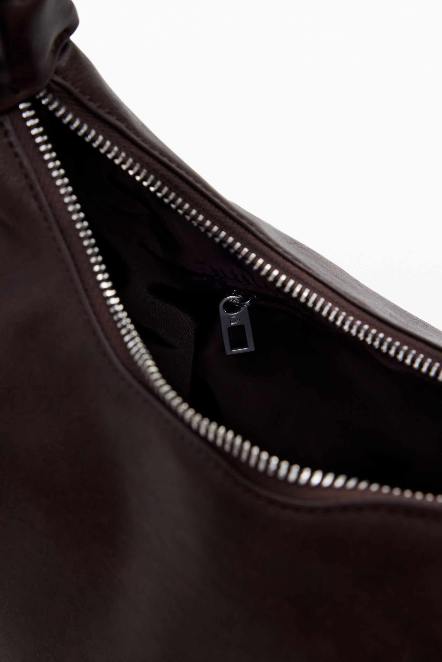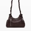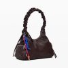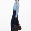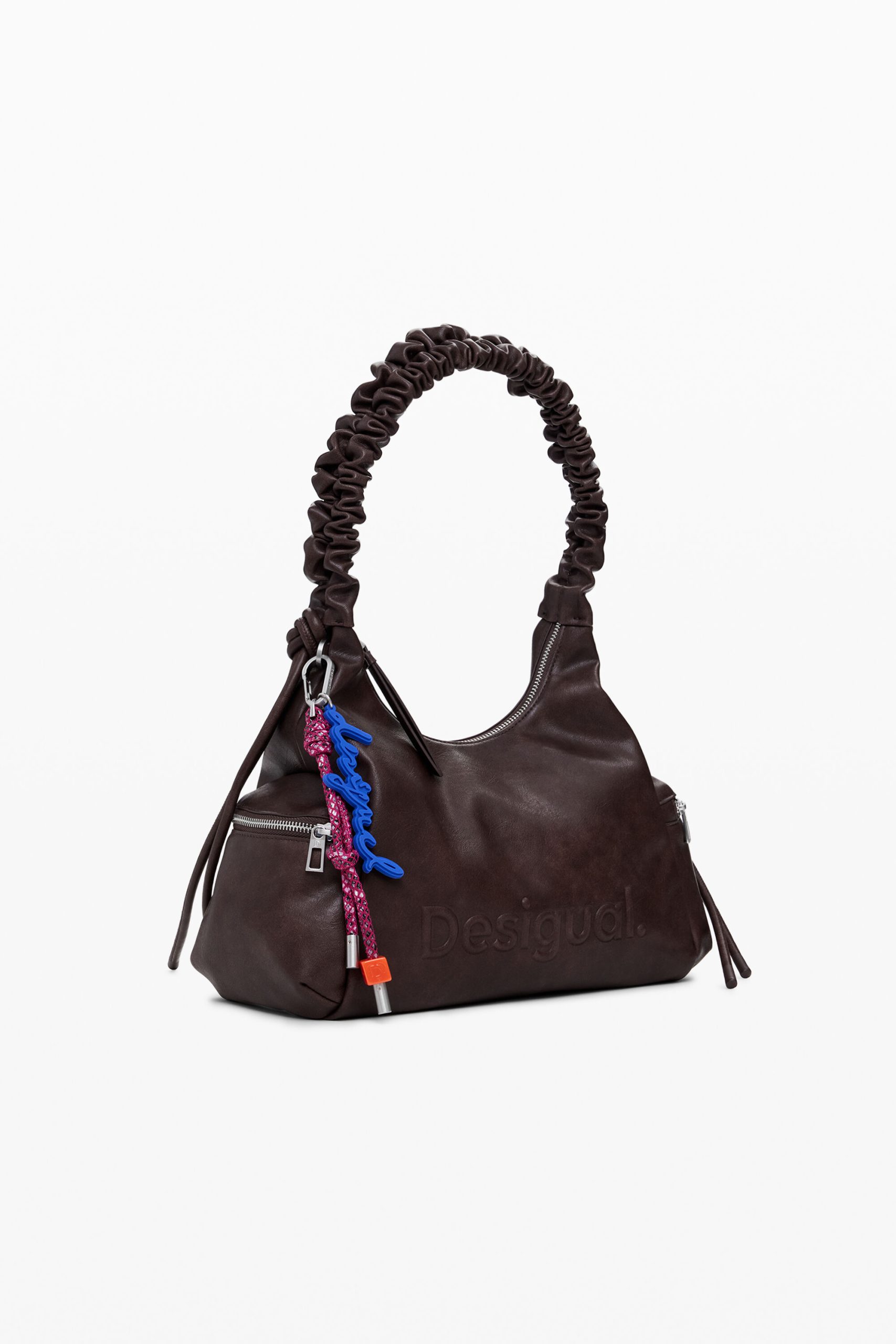 Medium-sized handbag in solid color faux leather fabric, 3D effect logo, adjustable handle with gathering and detachable keychain detail