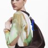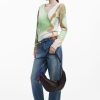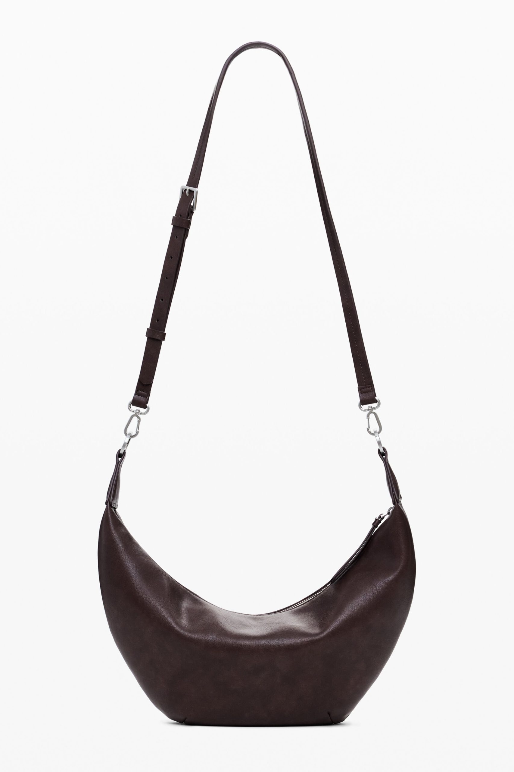 Medium-sized crossbody bag in solid color faux leather fabric, 3D effect logo, interchangeable handles, and zipper closure.