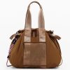 Reversible nylon handbag with pocket details, interchangeable trekking-style straps, and contrasting color printed logo.