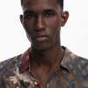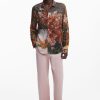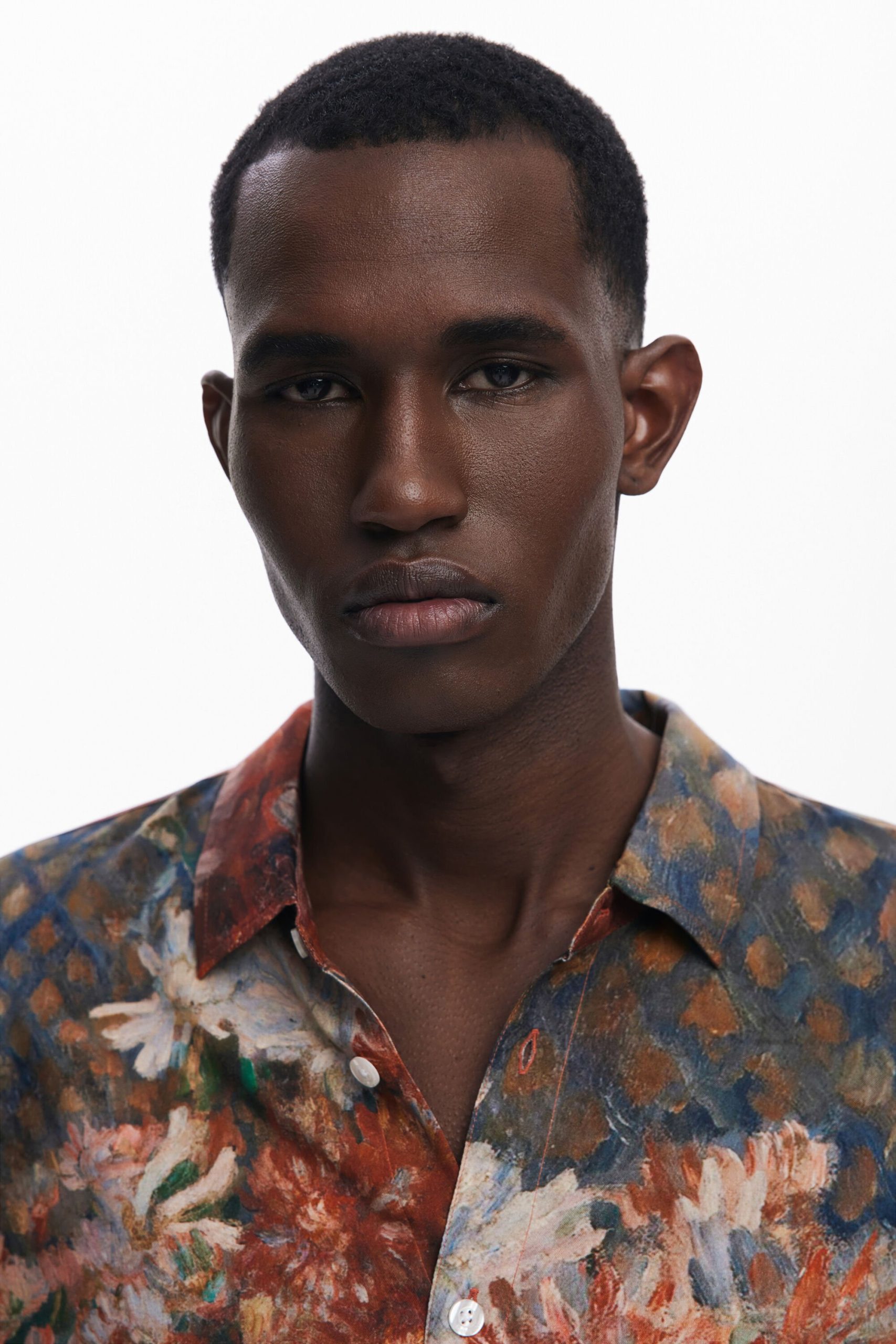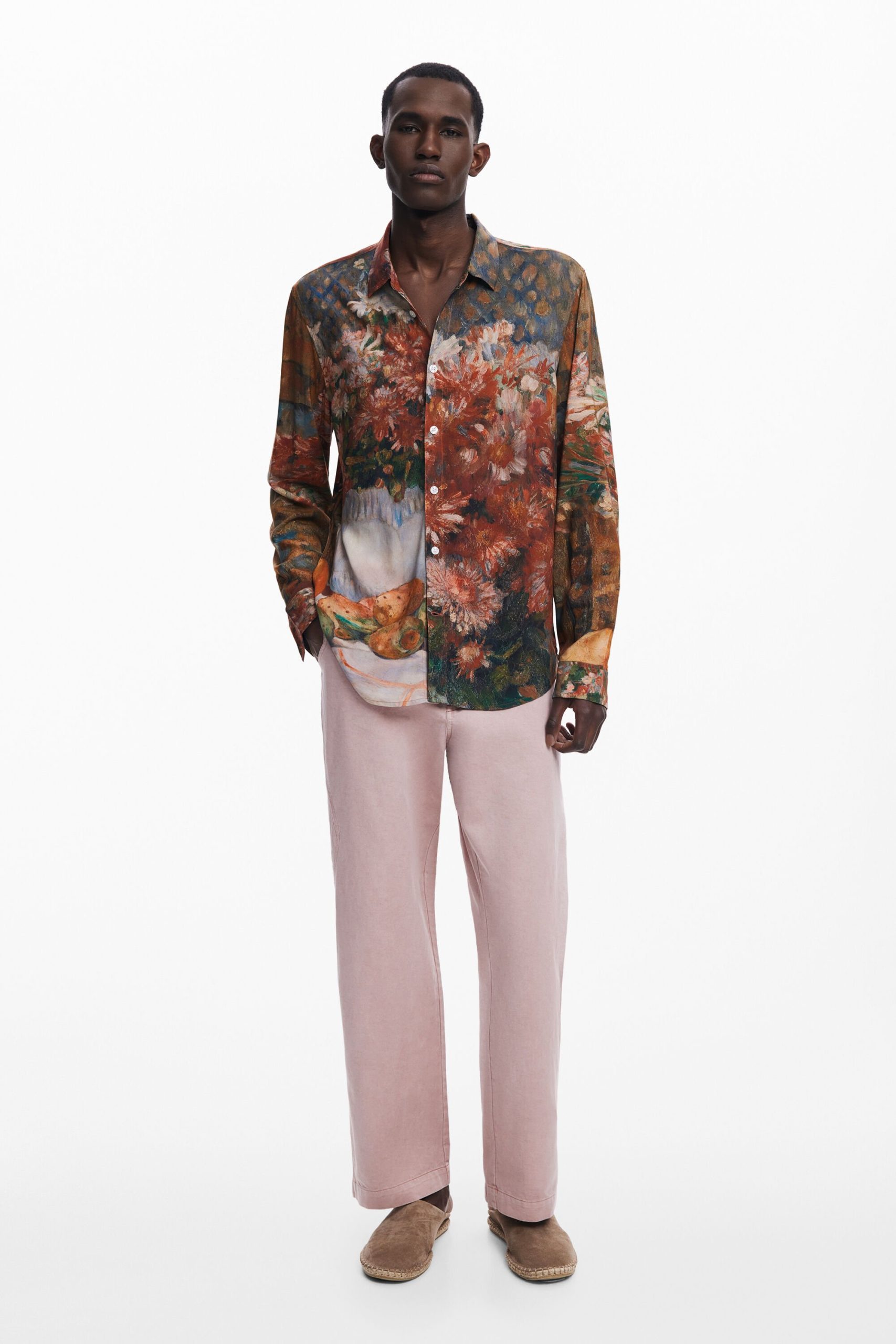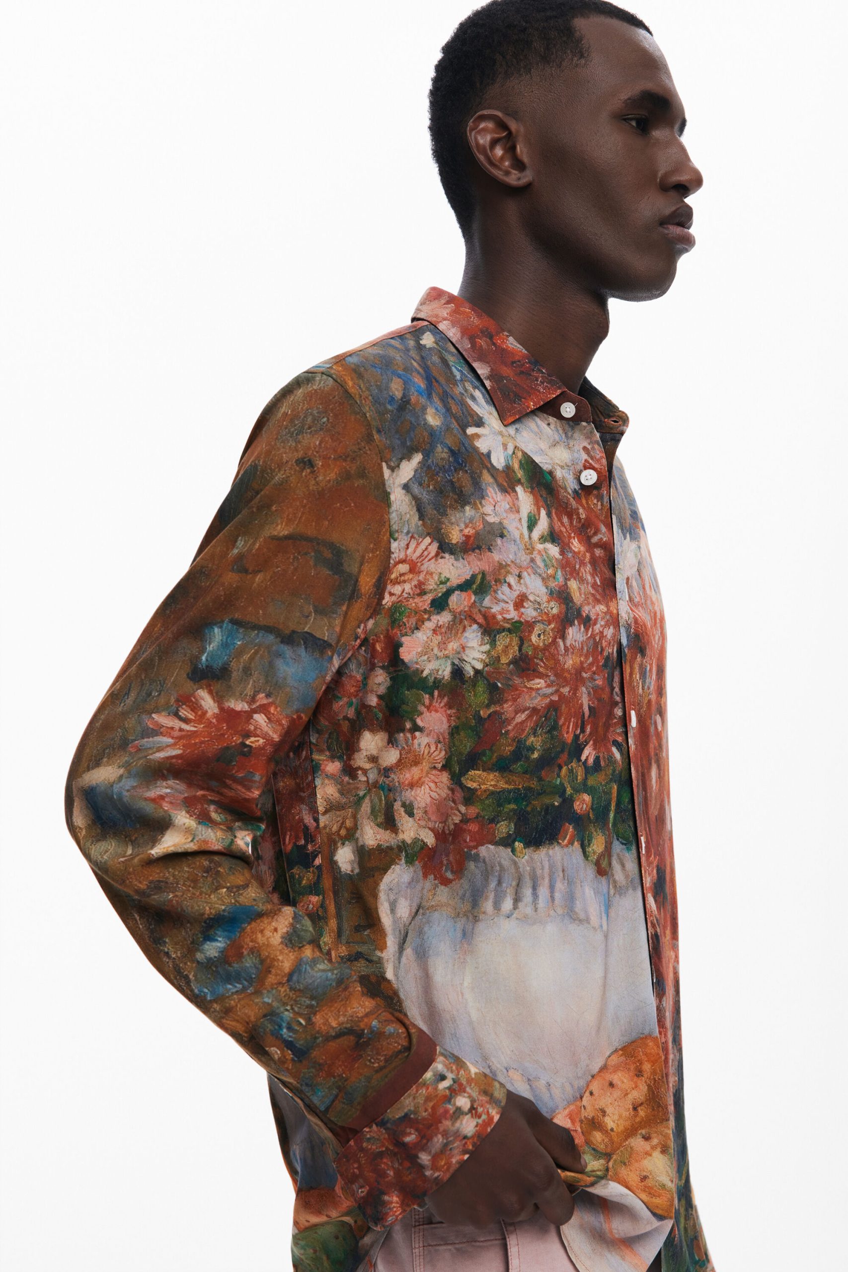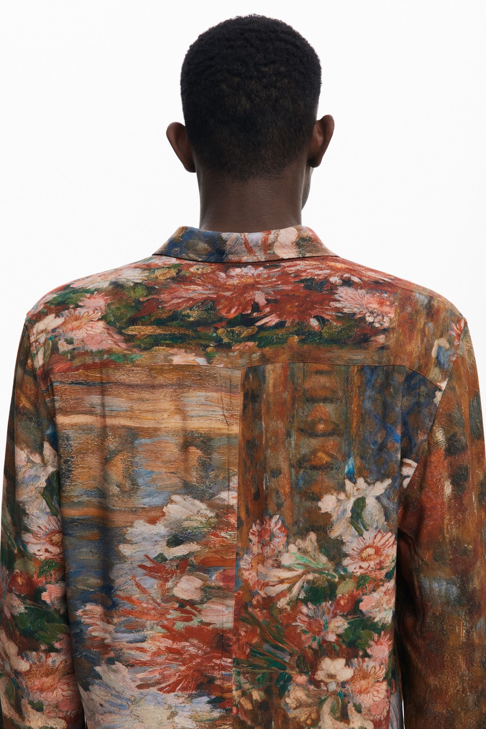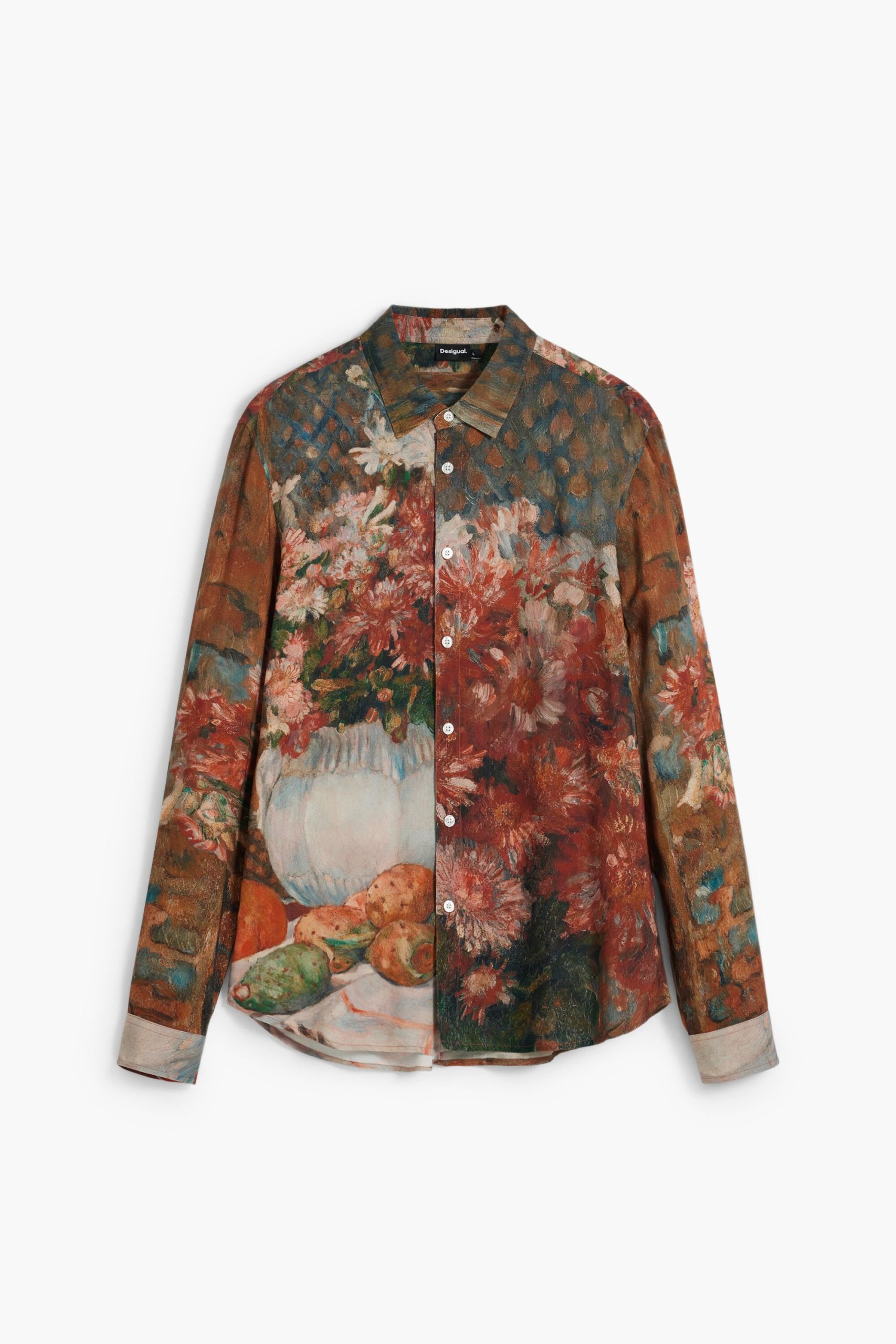 Fluid long-sleeve shirt with a design inspired by still-life impressionist-style checks in autumnal tones.
