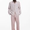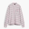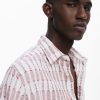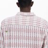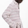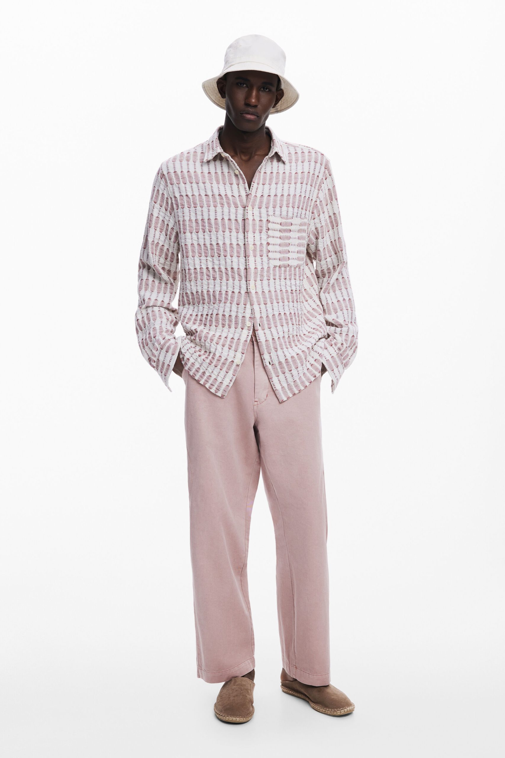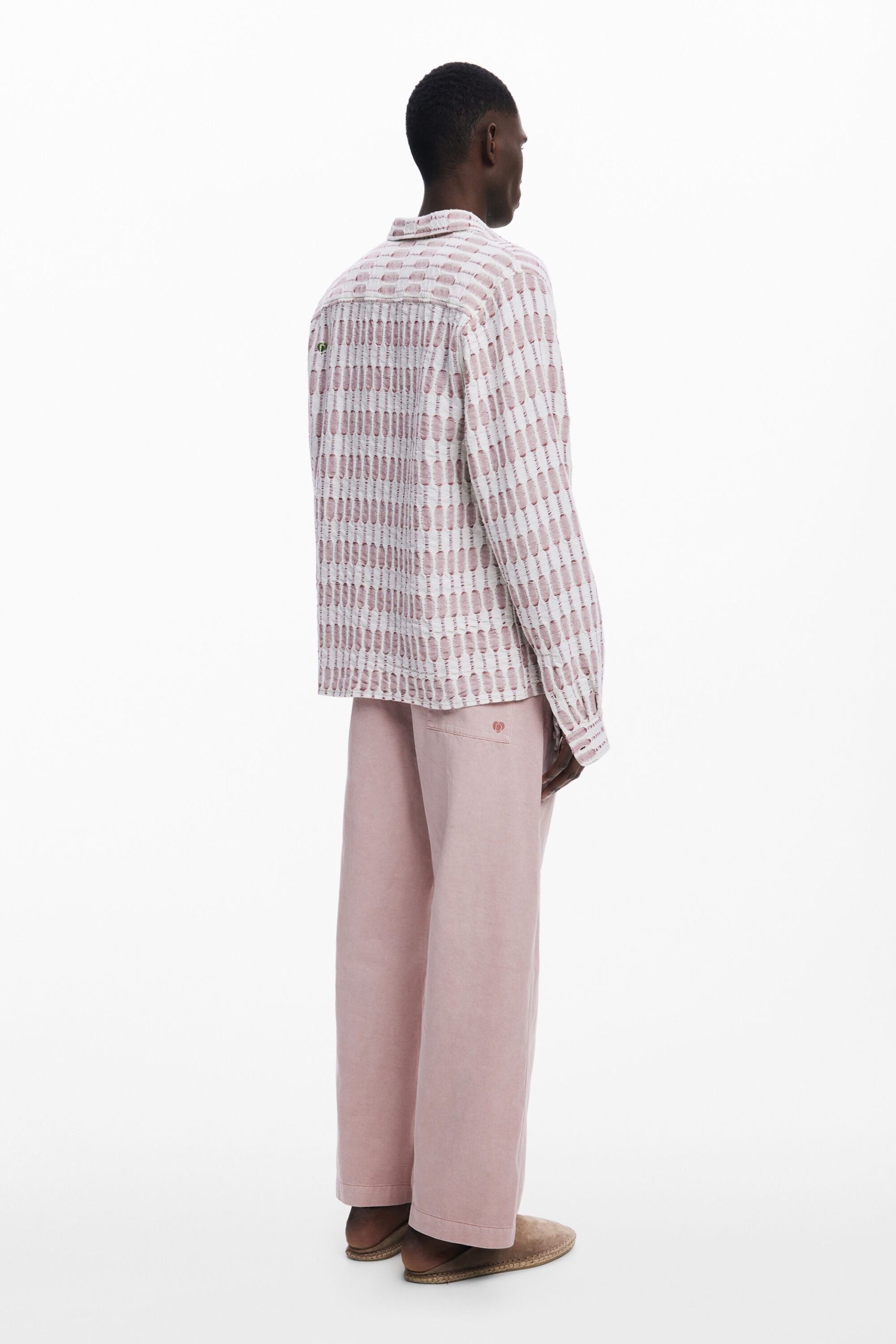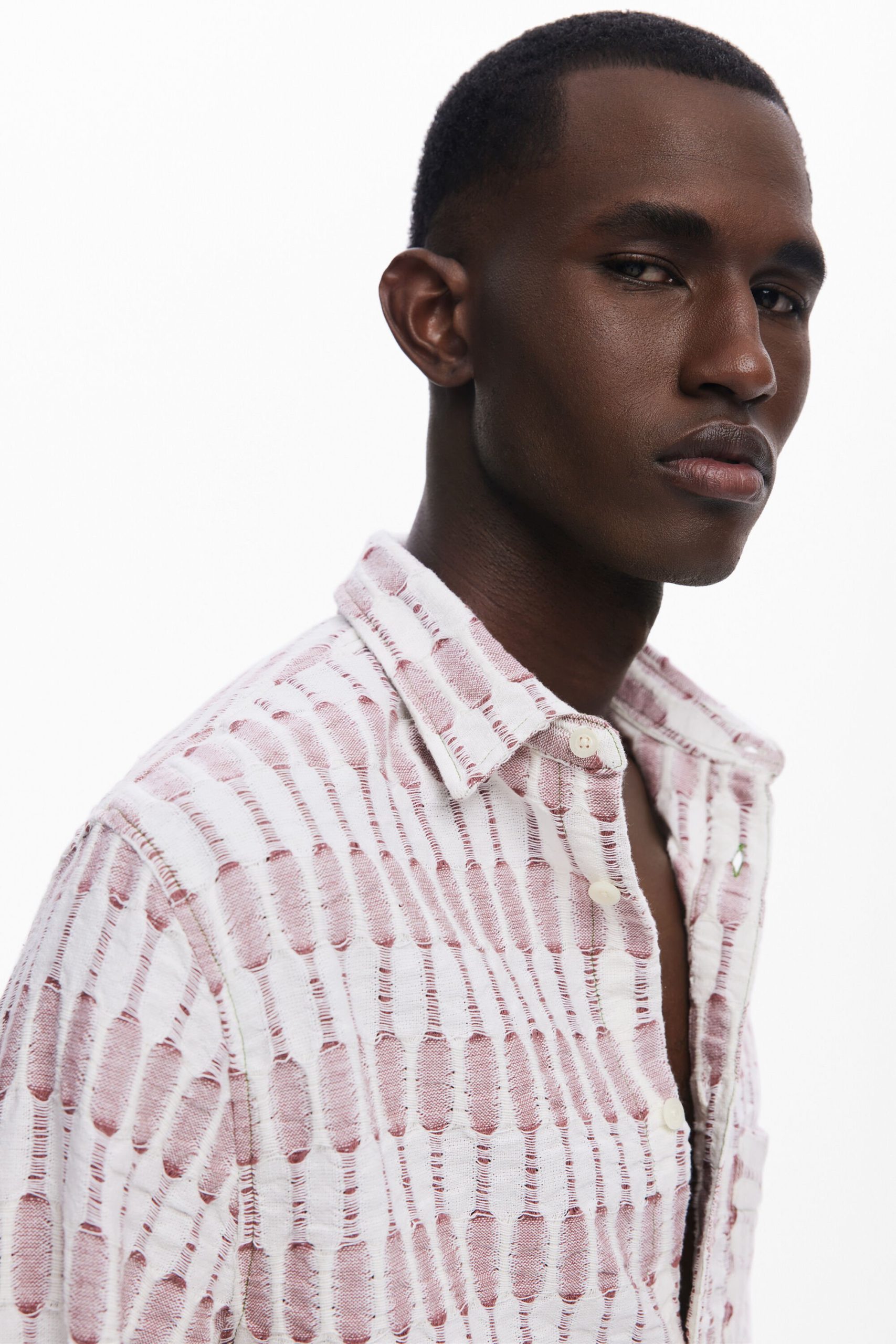 Long-sleeve striped shirt with a cut-out effect print, contrasting colors, and a front pocket.