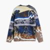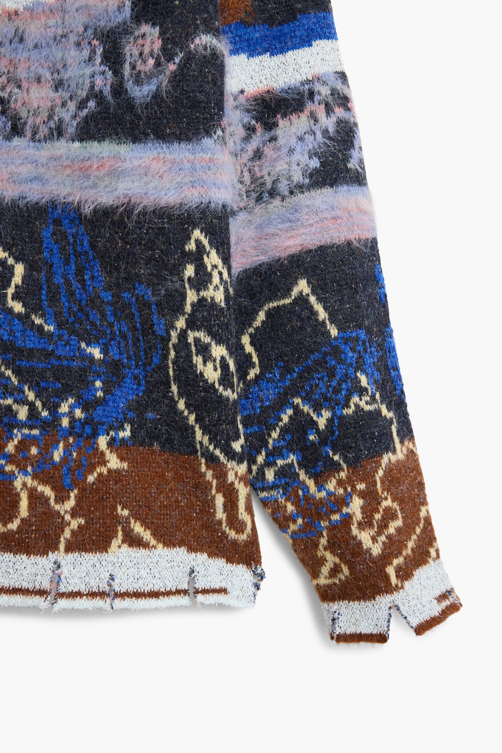 Cardigan-style sweater with buttons, made in different prints and finished with fur details.