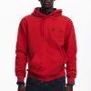 Solid color hoodie with adjustable hood, front pocket, and embroidered Asian-inspired details.