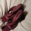 Open square-toe sandals, with heart-shaped heel and Desigual logo, made of leather with a fur finish.