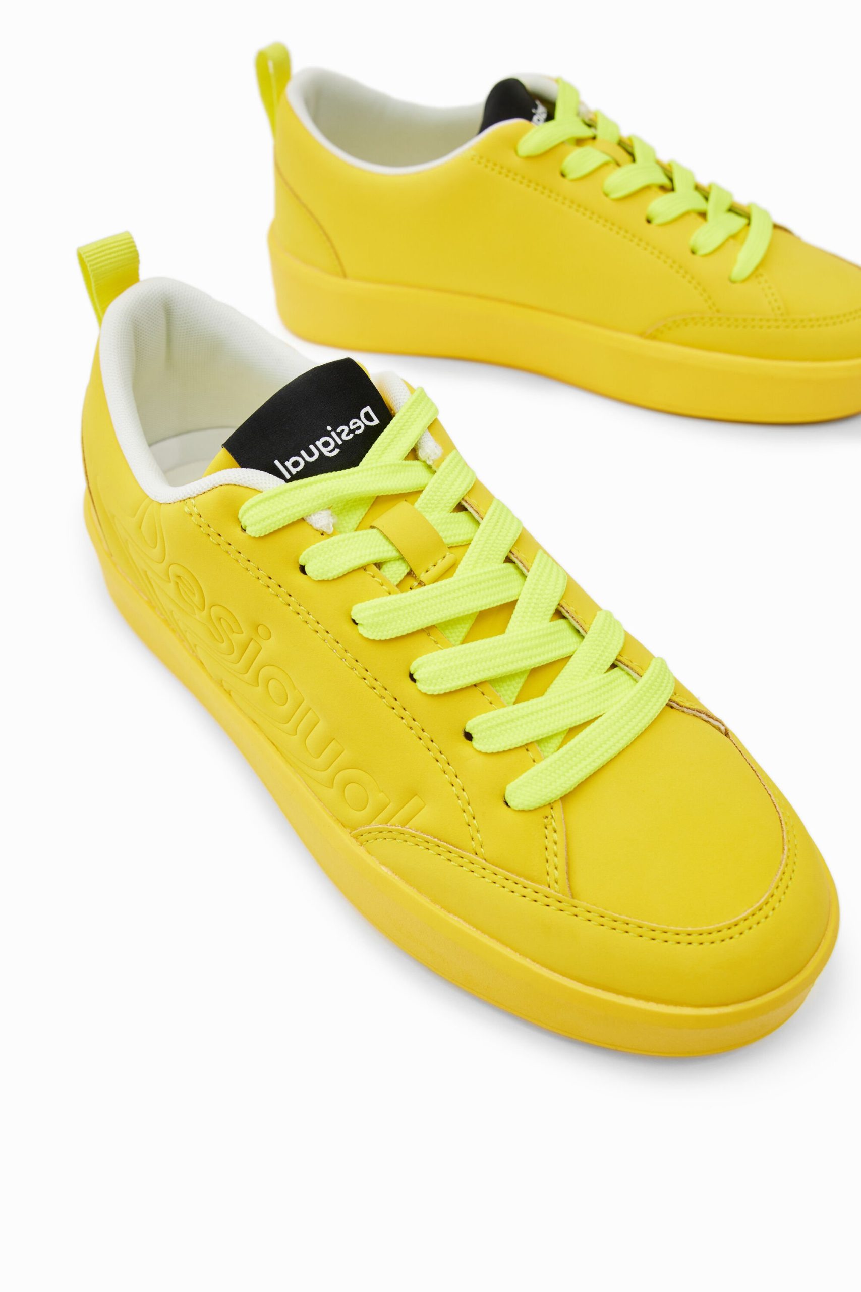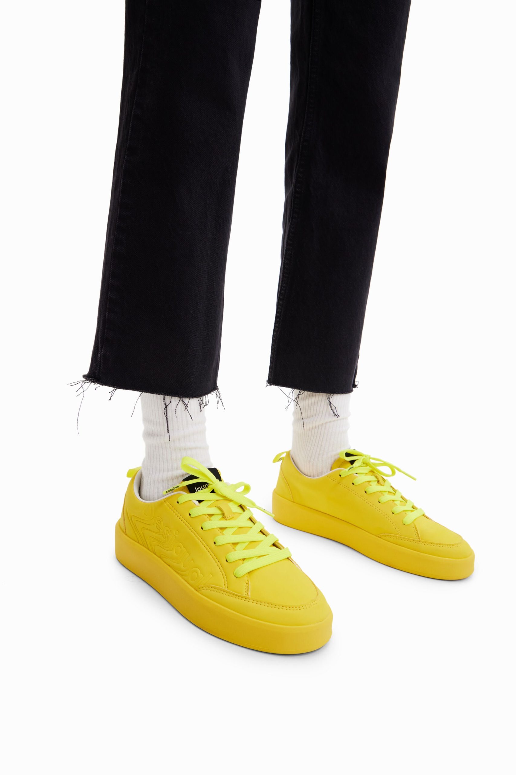 Sneakers in an eye-catching plain colour with a psychedelic logo. They pair perfectly with other accessories from the collection . Featuring fluorescent laces and a recycled rubber sole.