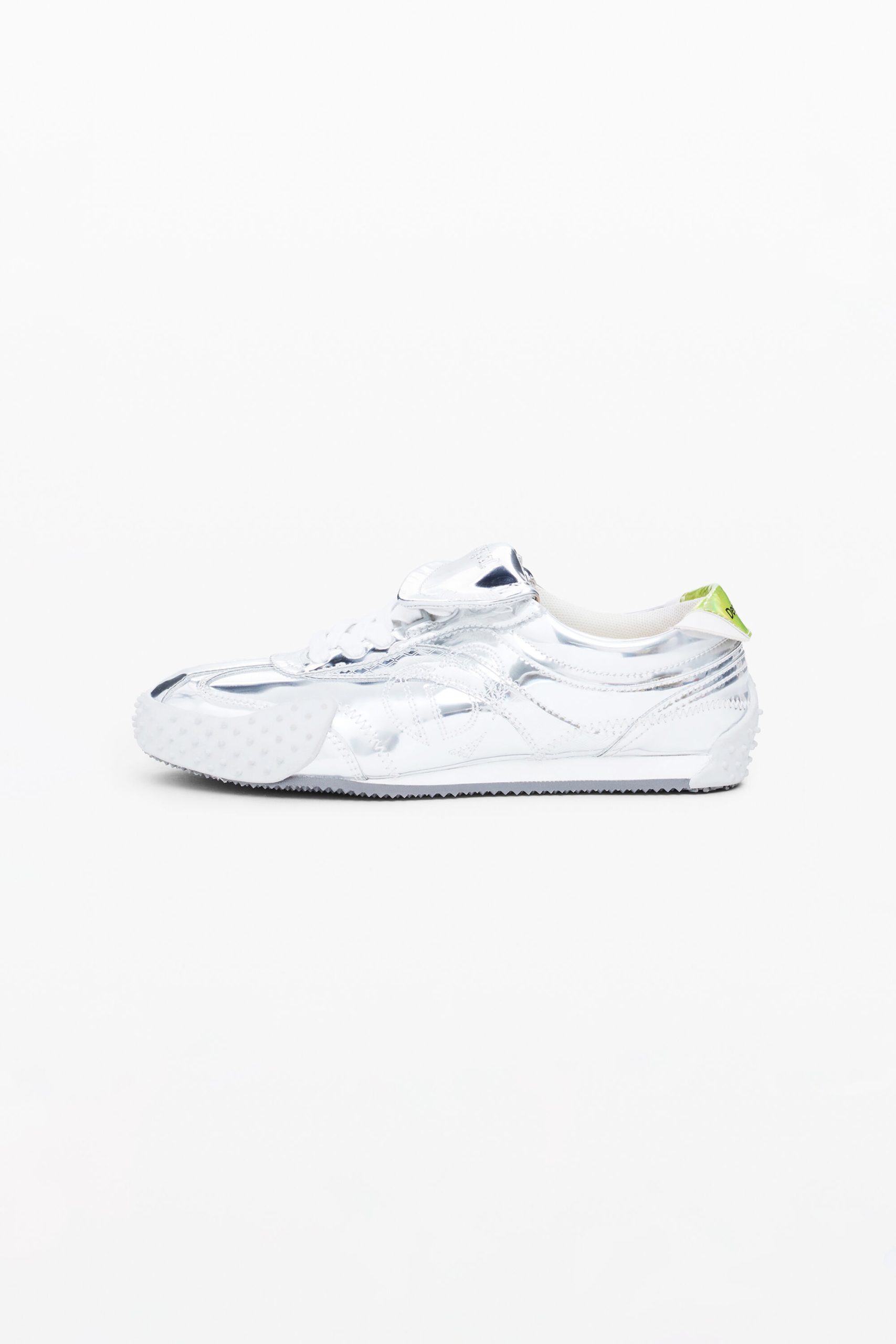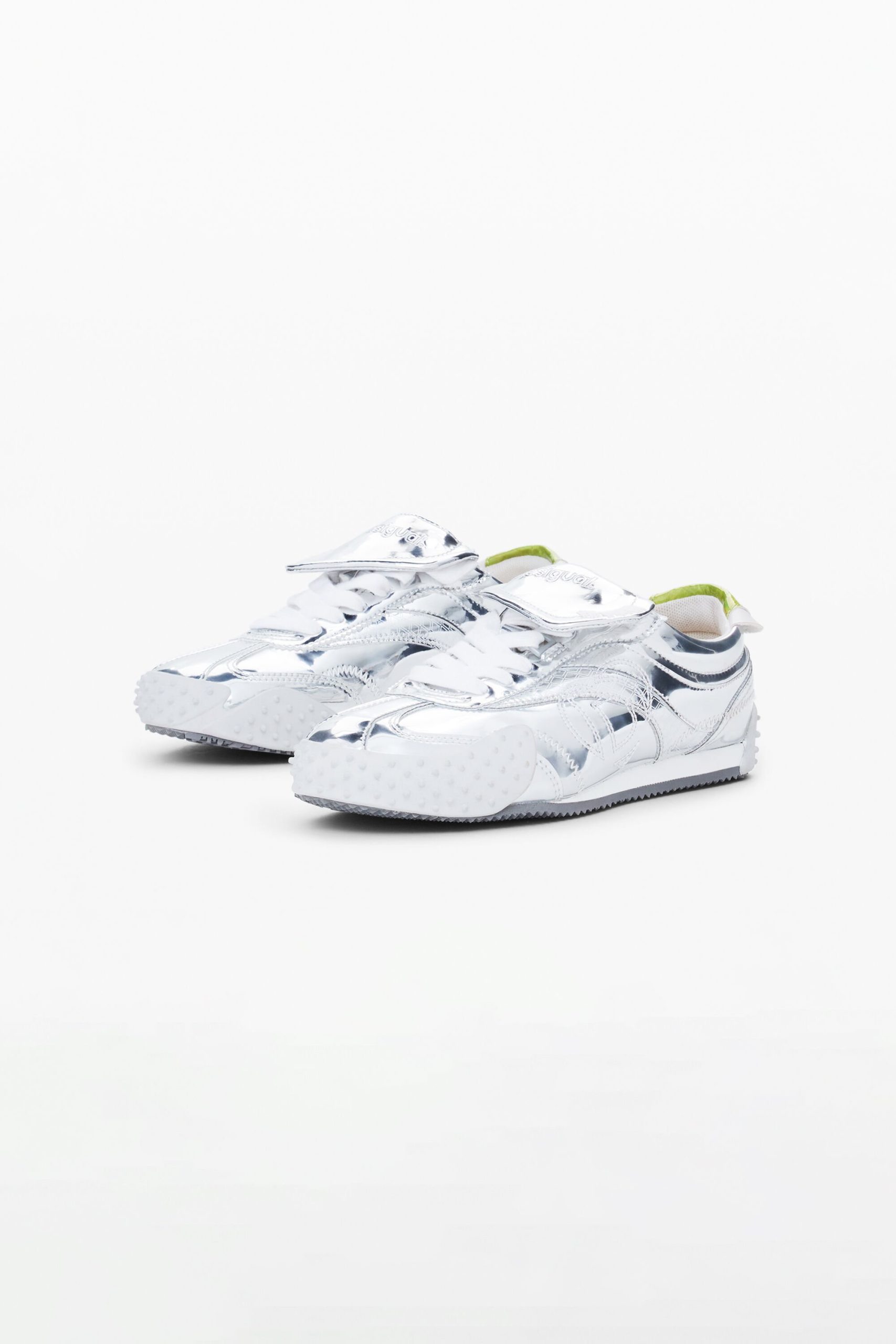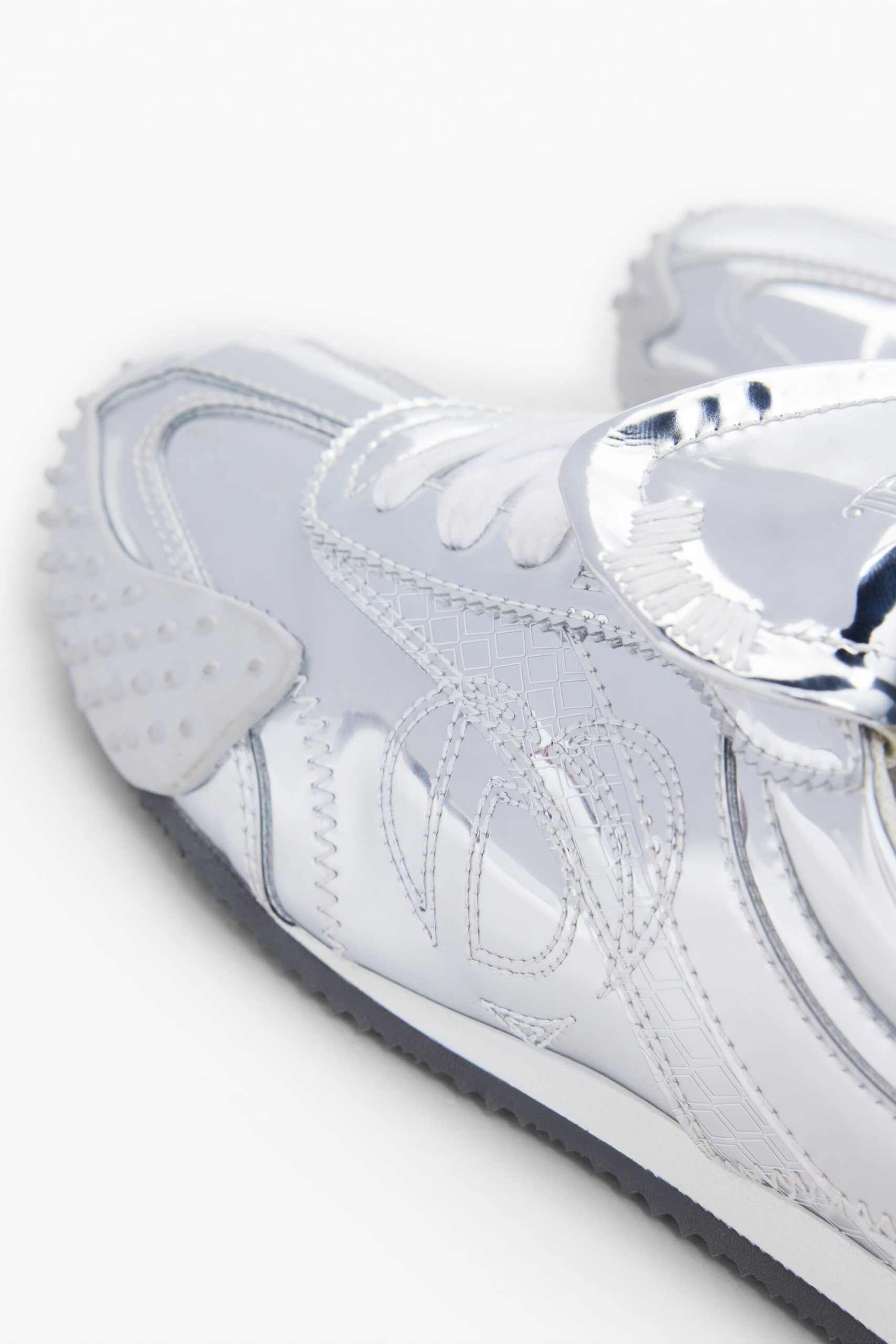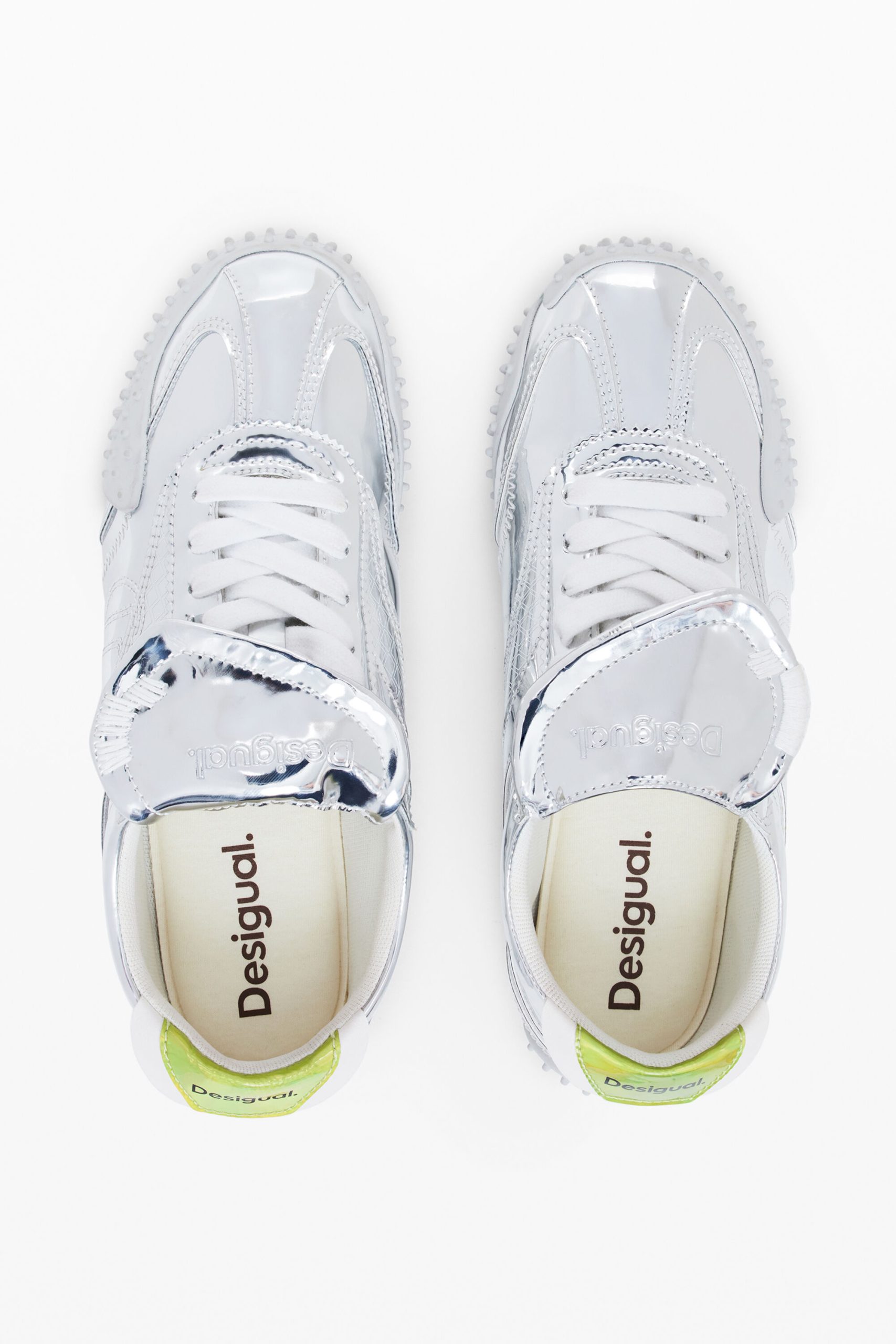 Low-top sneakers with vintage aesthetic, contrasting embroidered details, and maxi tongue