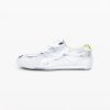 Low-top sneakers with vintage aesthetic, contrasting embroidered details, and maxi tongue