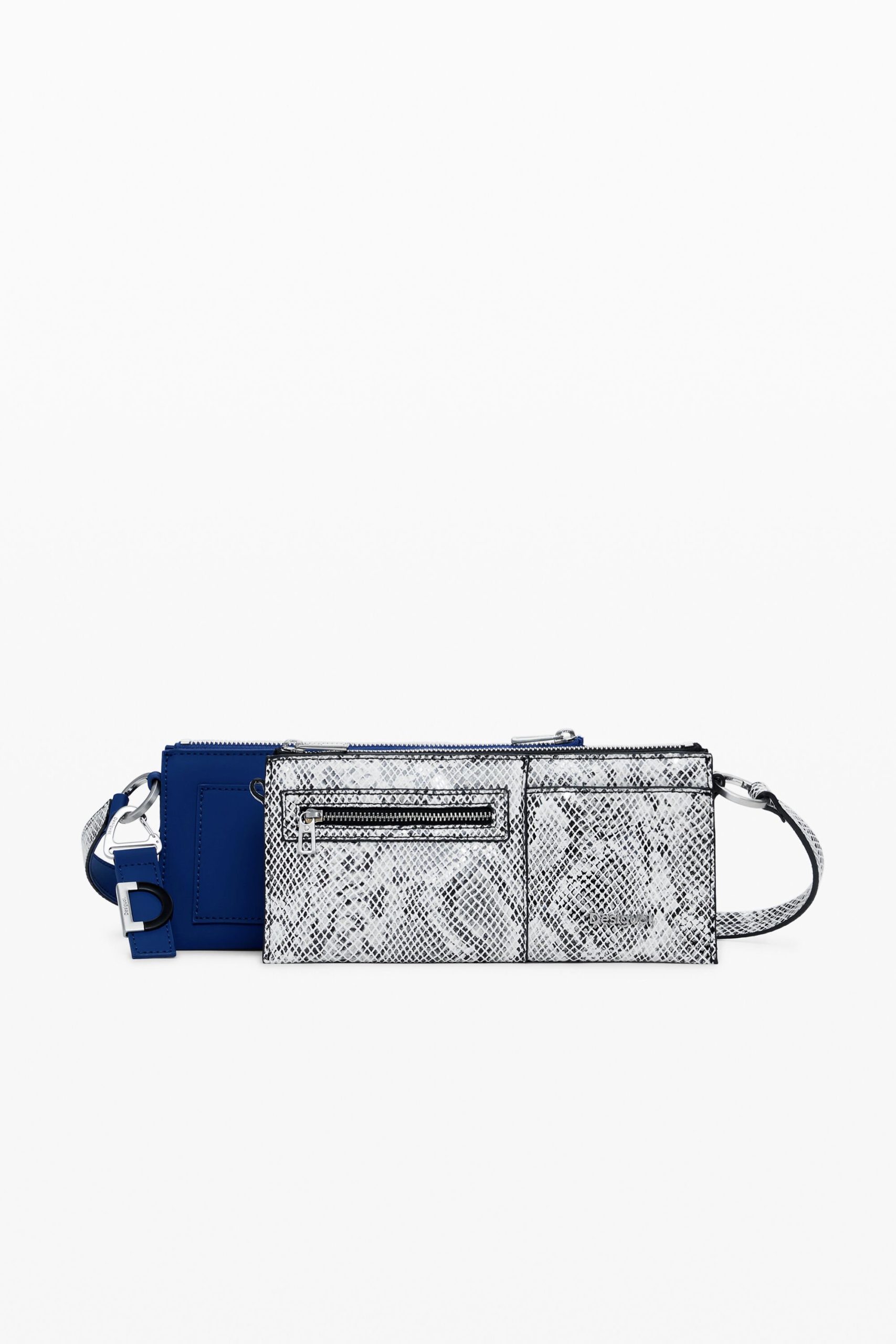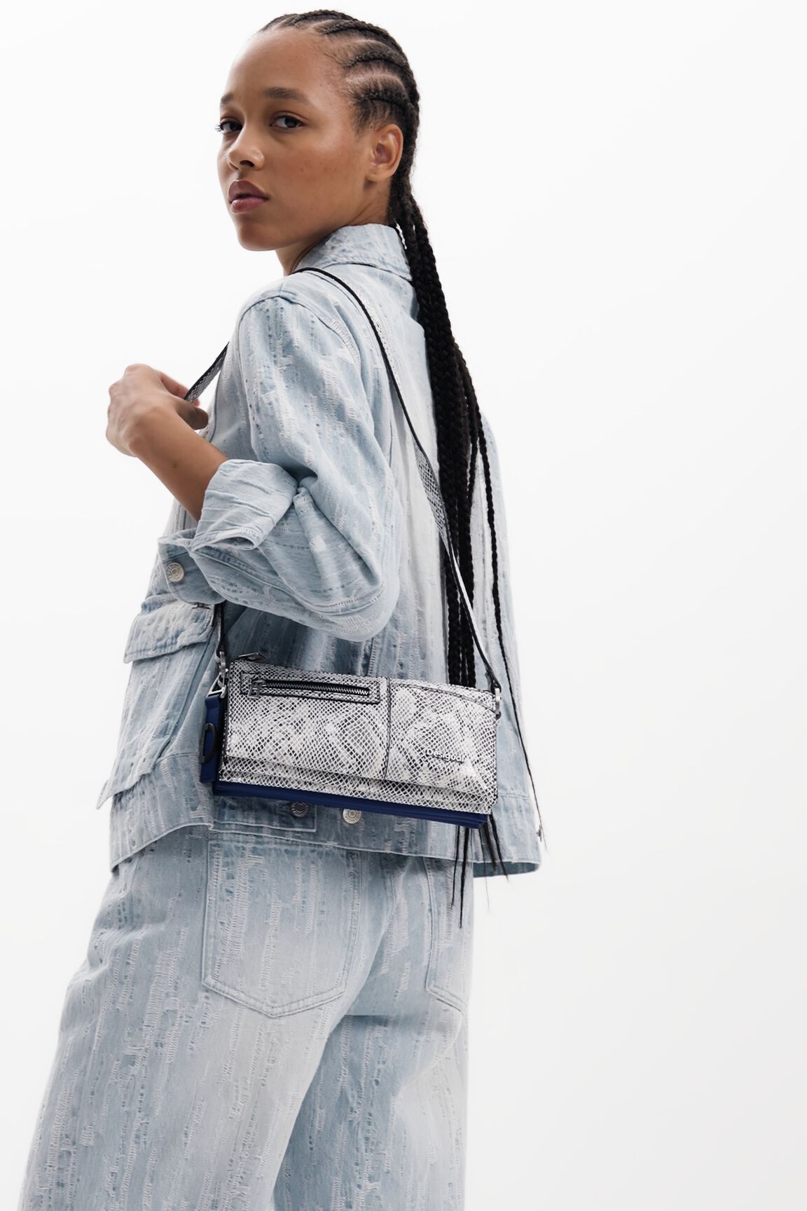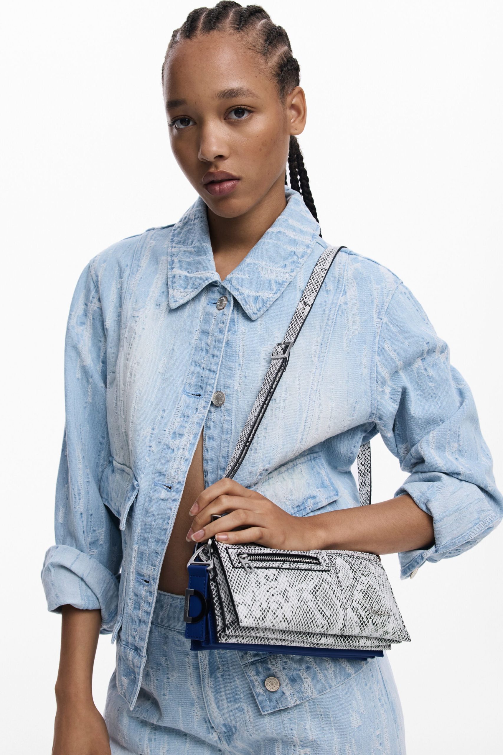 3-in-1 convertible crossbody shoulder bag in faux leather fabric with animal print style and interchangeable handles