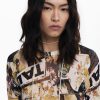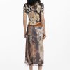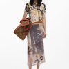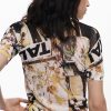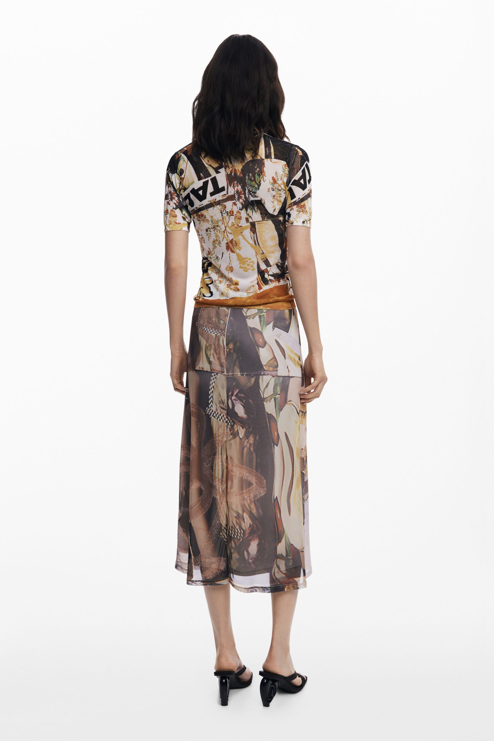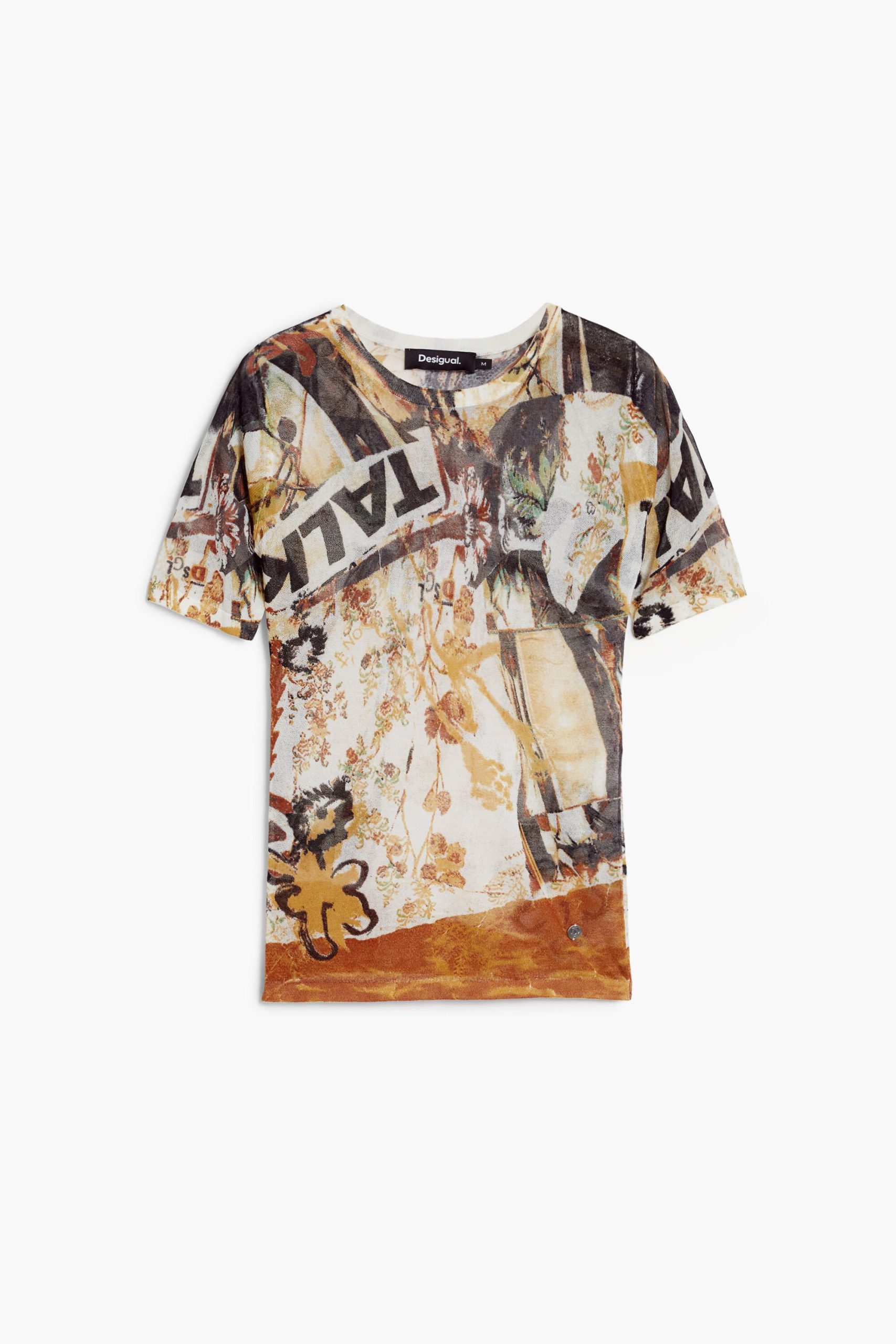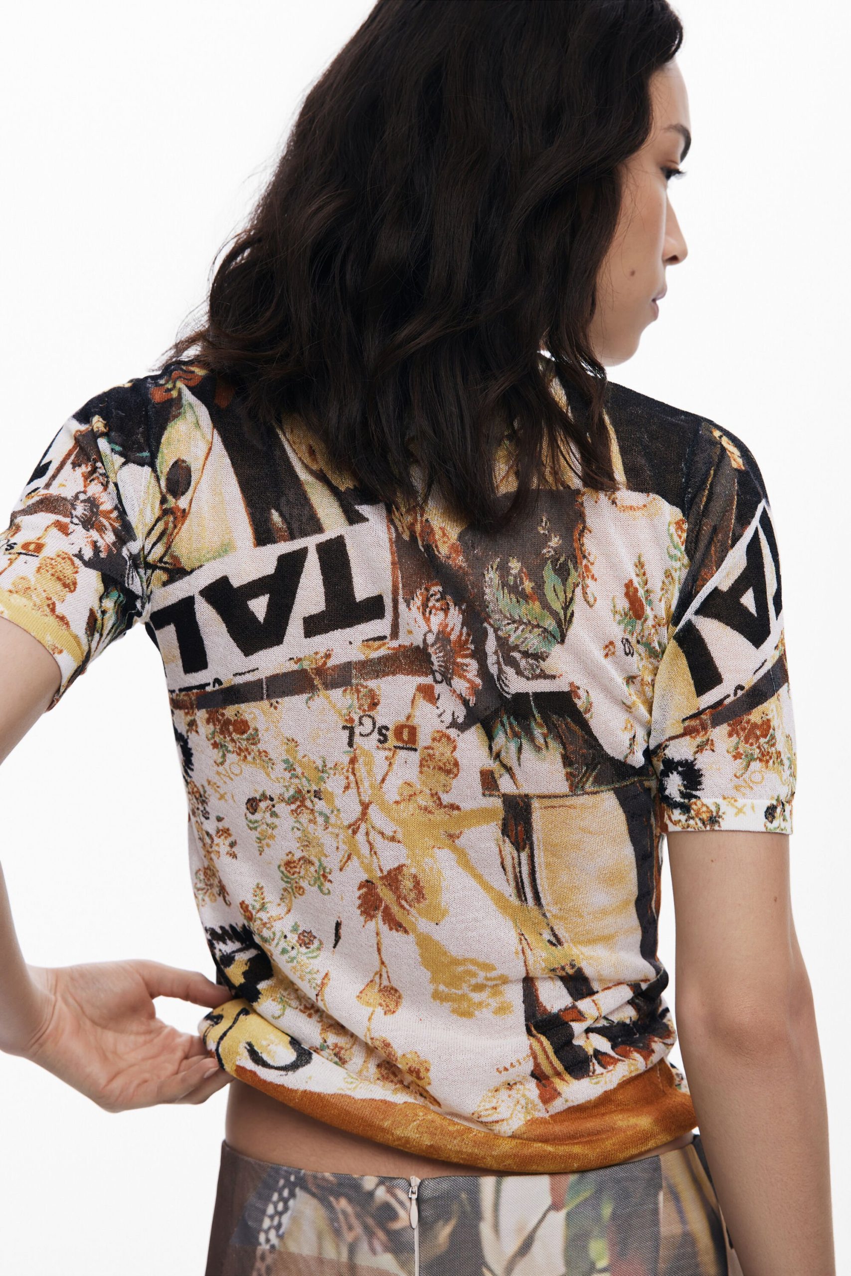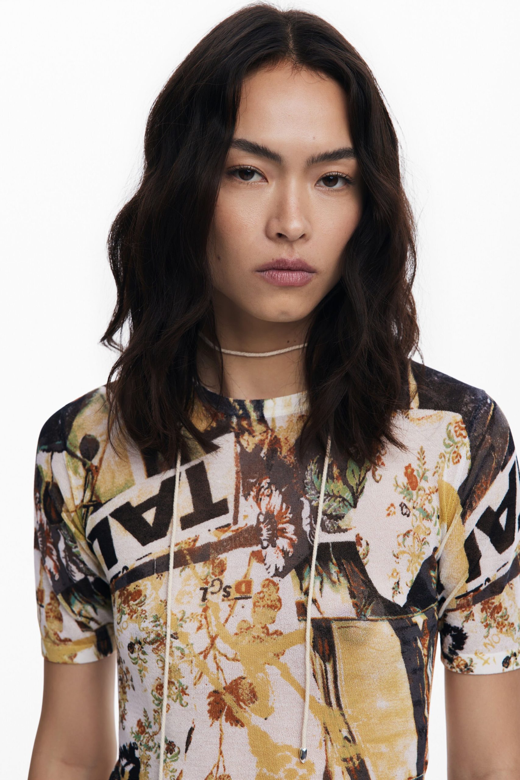 Short-sleeved T-shirt with a round neck in fine knit with ornamental Collage-style print.