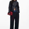 Short jacket in faux leather, zipper closure, mao collar, front pockets, and knitted fabric inside the sleeves.