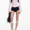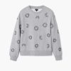 Fine knit sweater, long sleeves, trim details on the neckline and ruffles on the sleeves in coquette style designed by María Escoté.