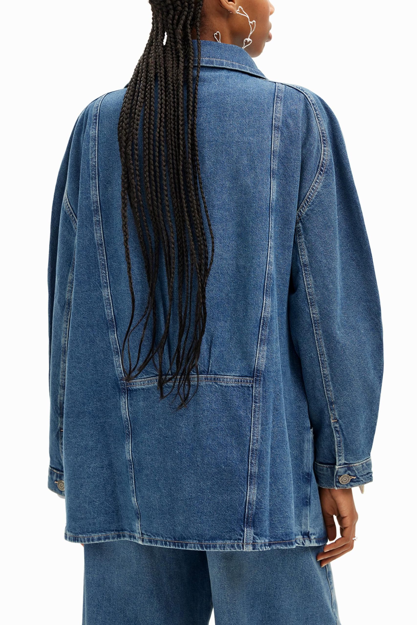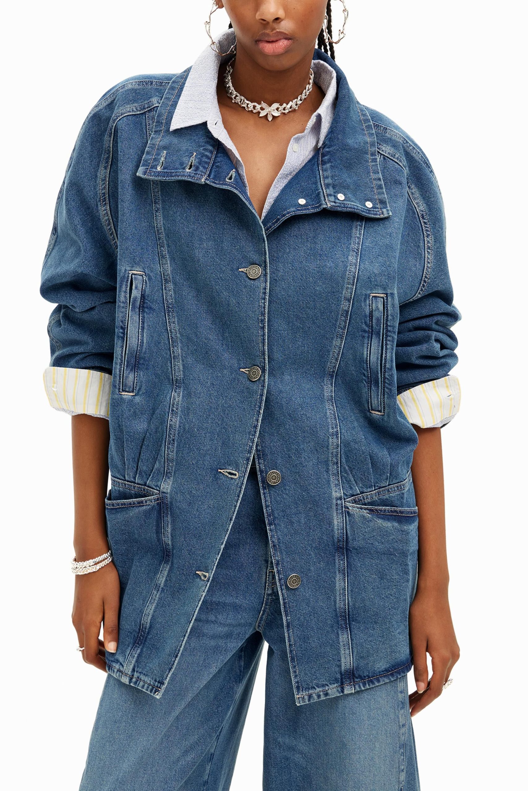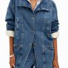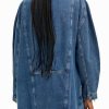 Desigual Women’s Denim Jacket With Striped Effect And V-neck.