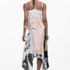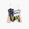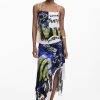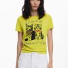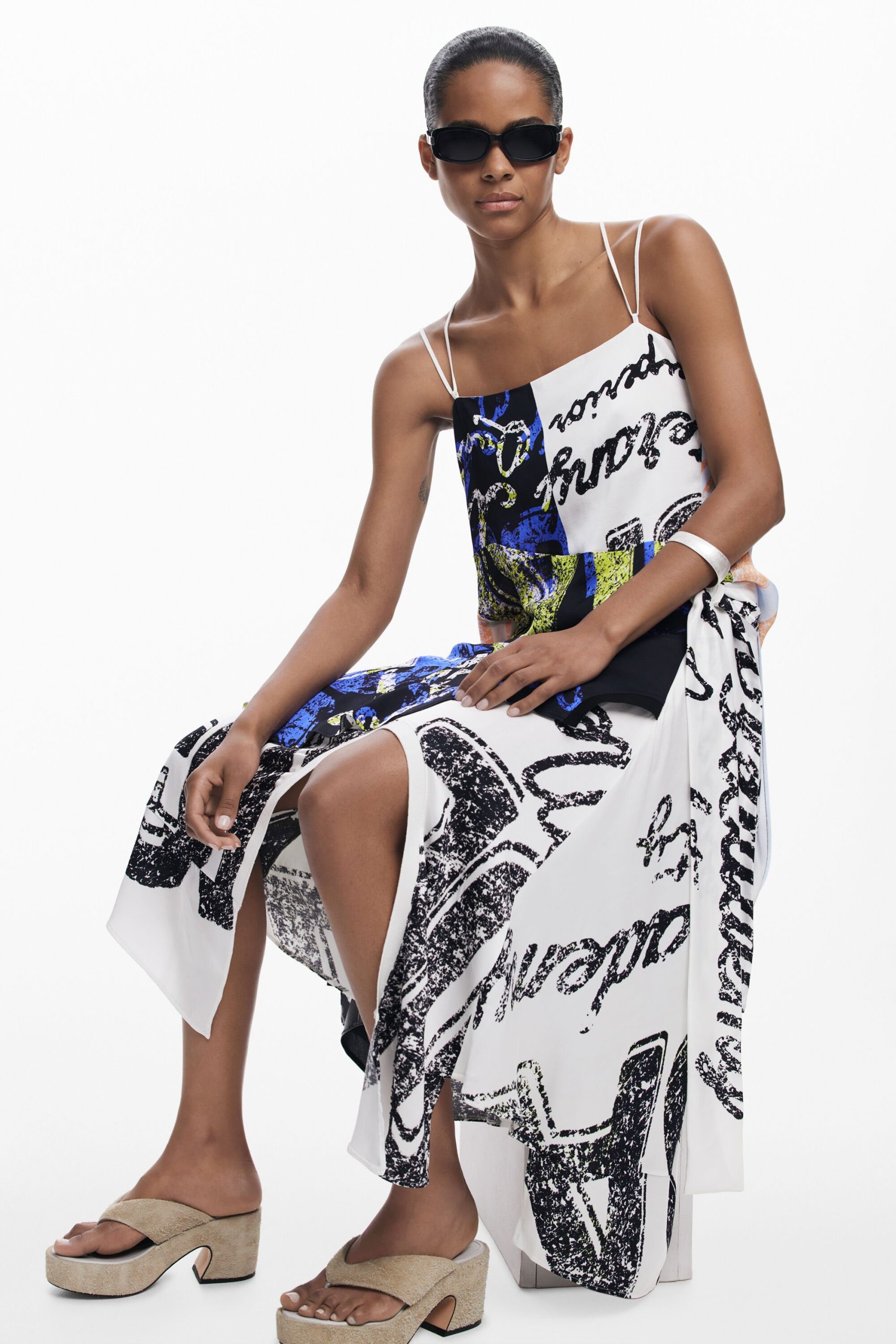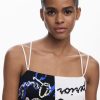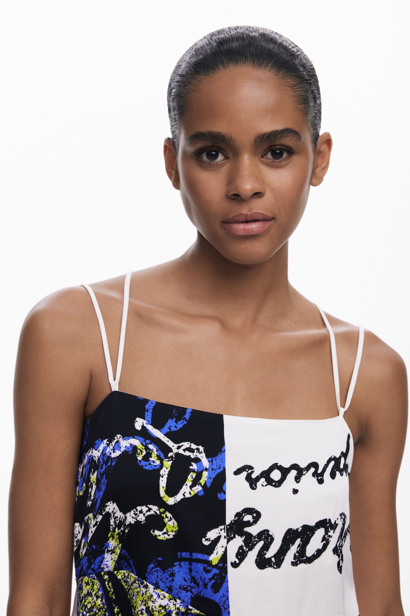 Tank top with double straps, crossed at the back, and lettering-style print in contrasting color