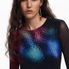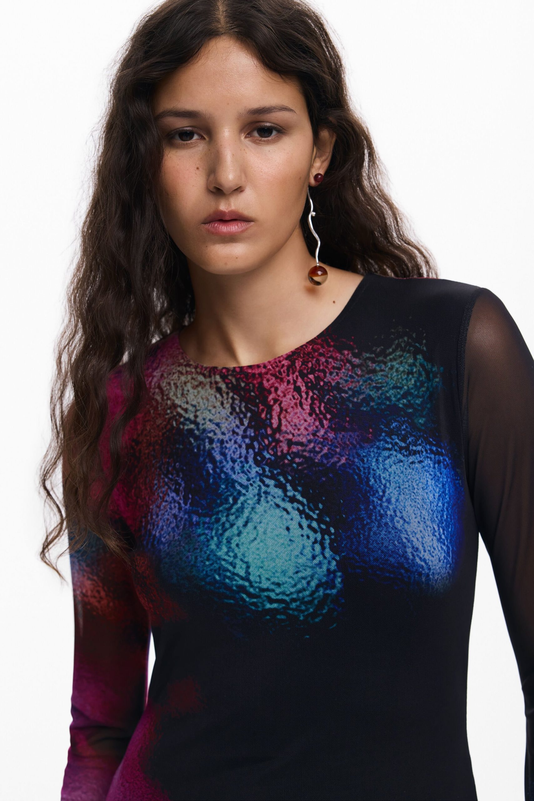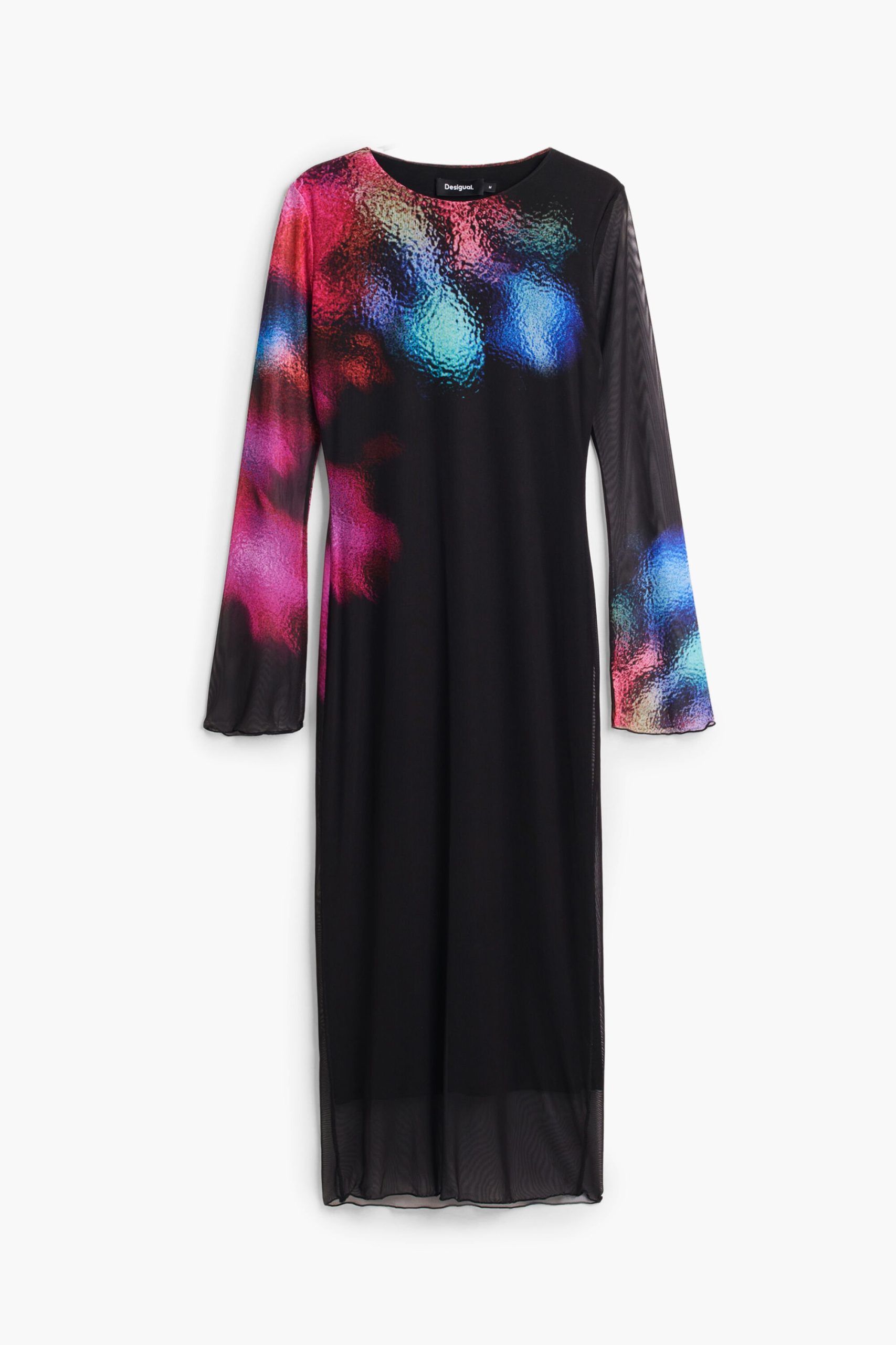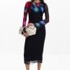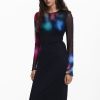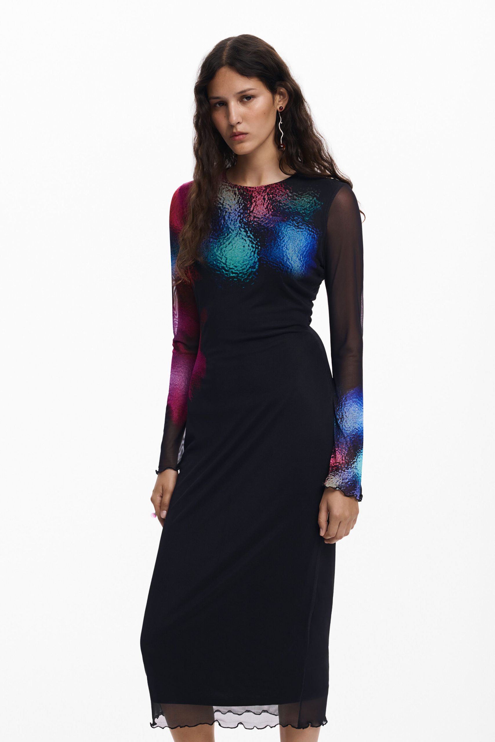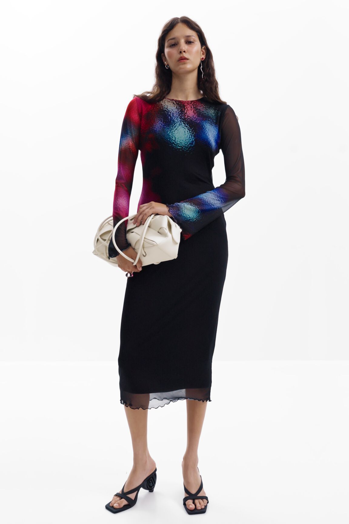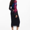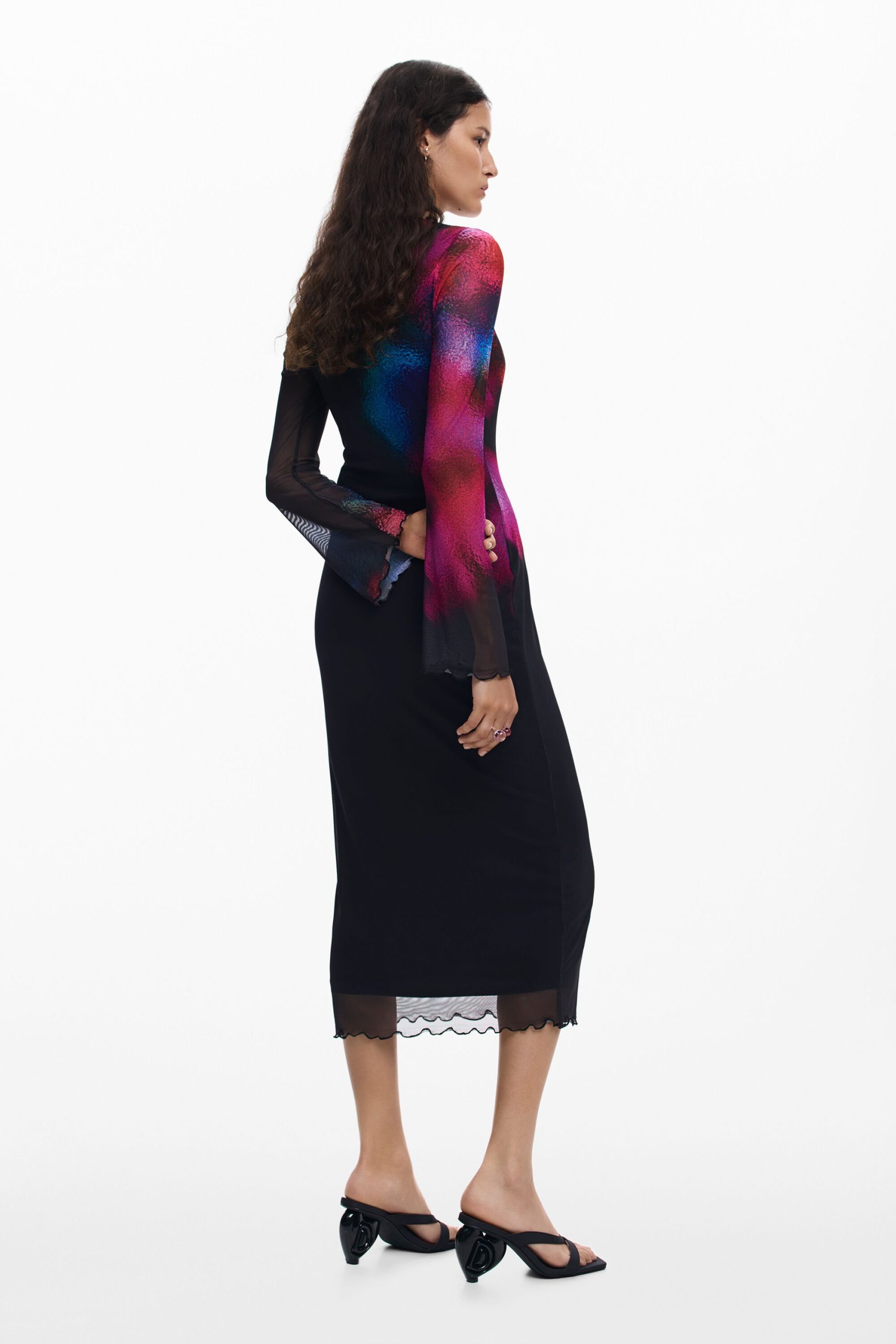 Fitted midi dress with long sleeves in stretch fabric with a print designed by M. Christian Lacroix.