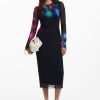 Fitted midi dress with long sleeves in stretch fabric with a print designed by M. Christian Lacroix.