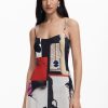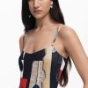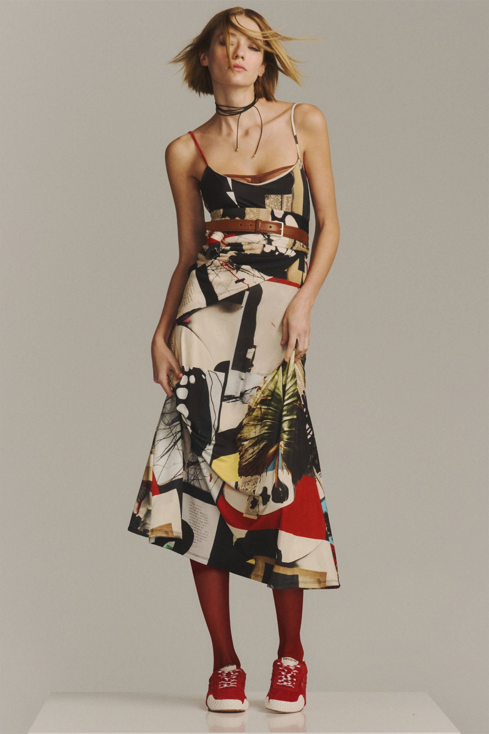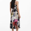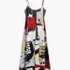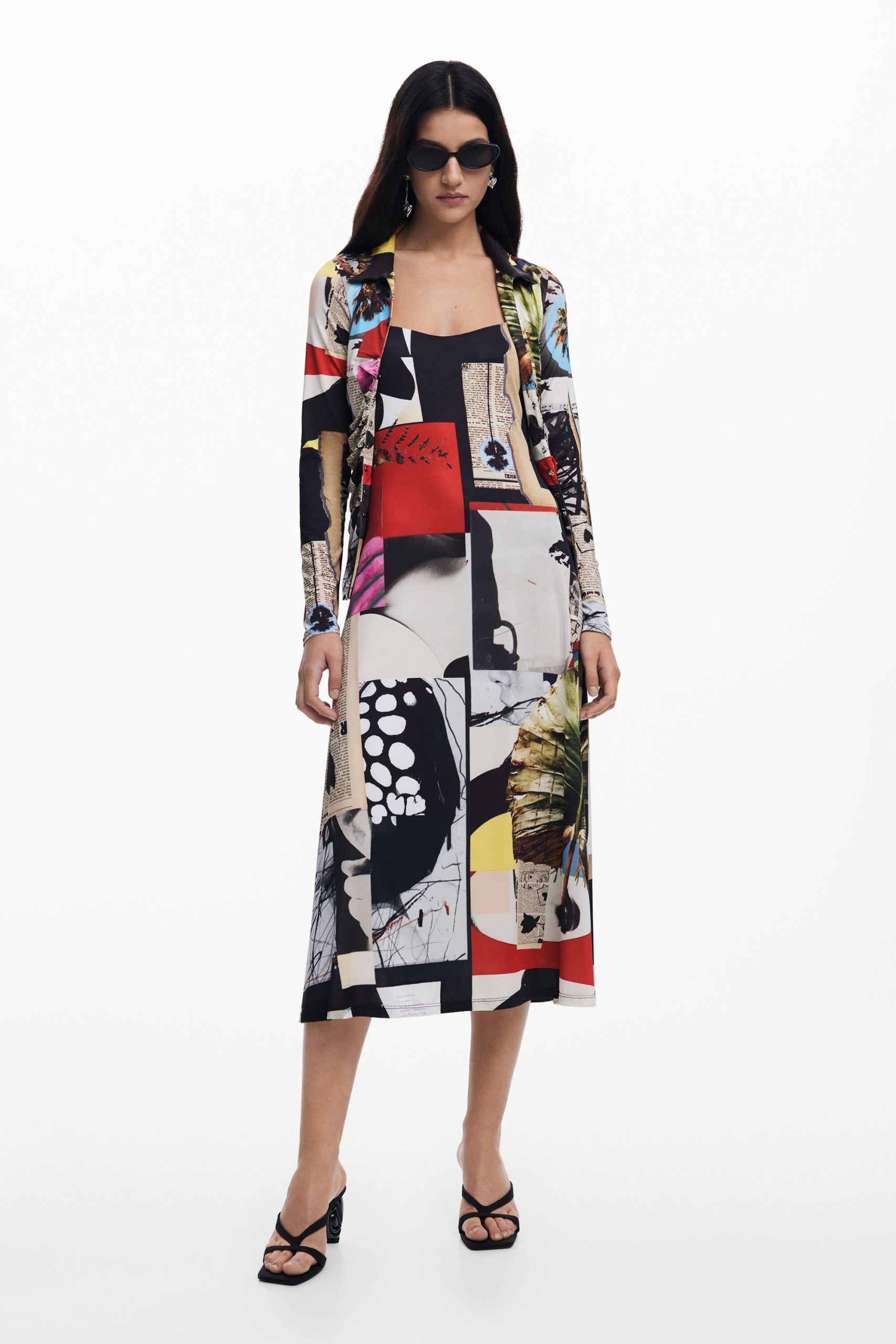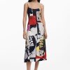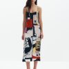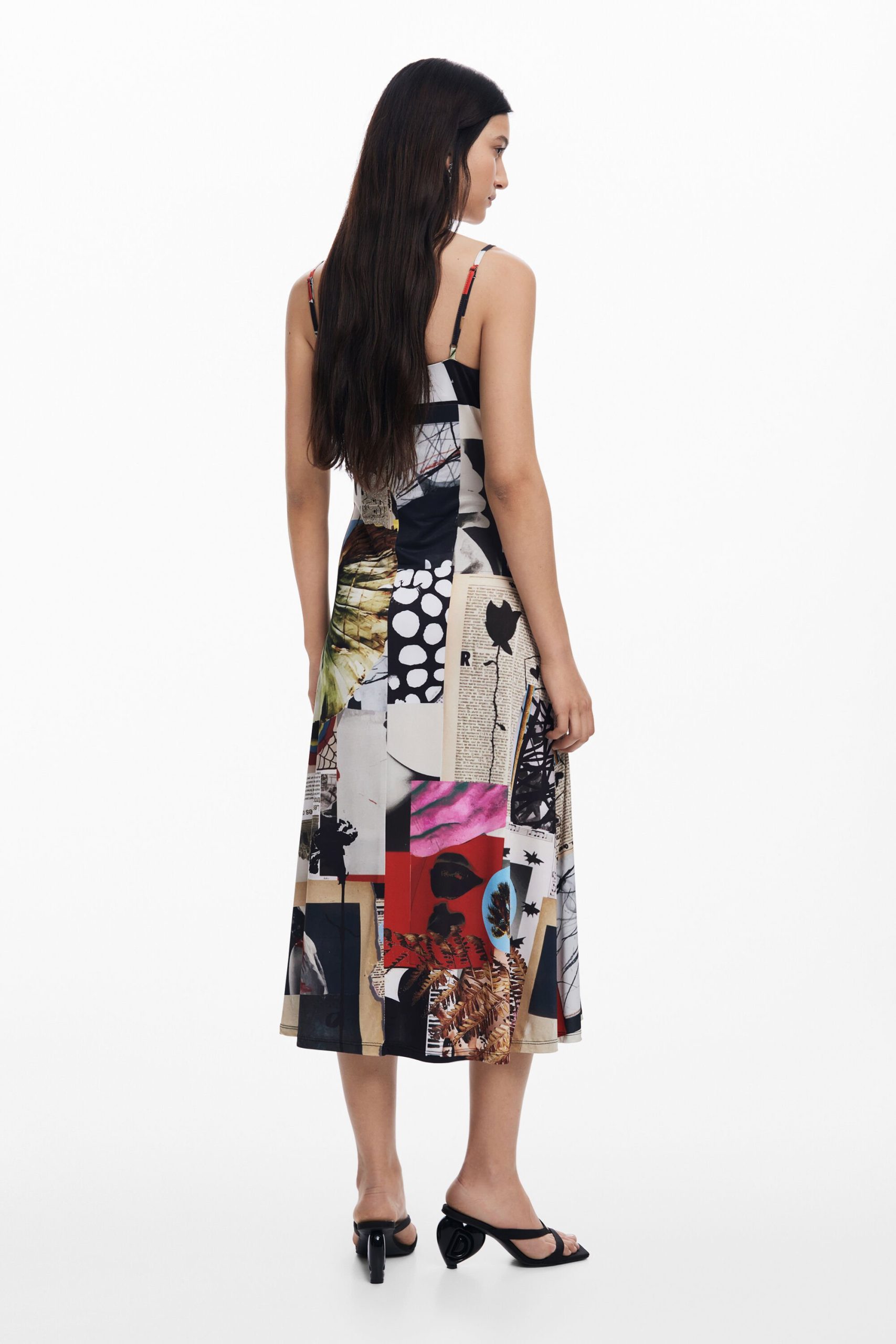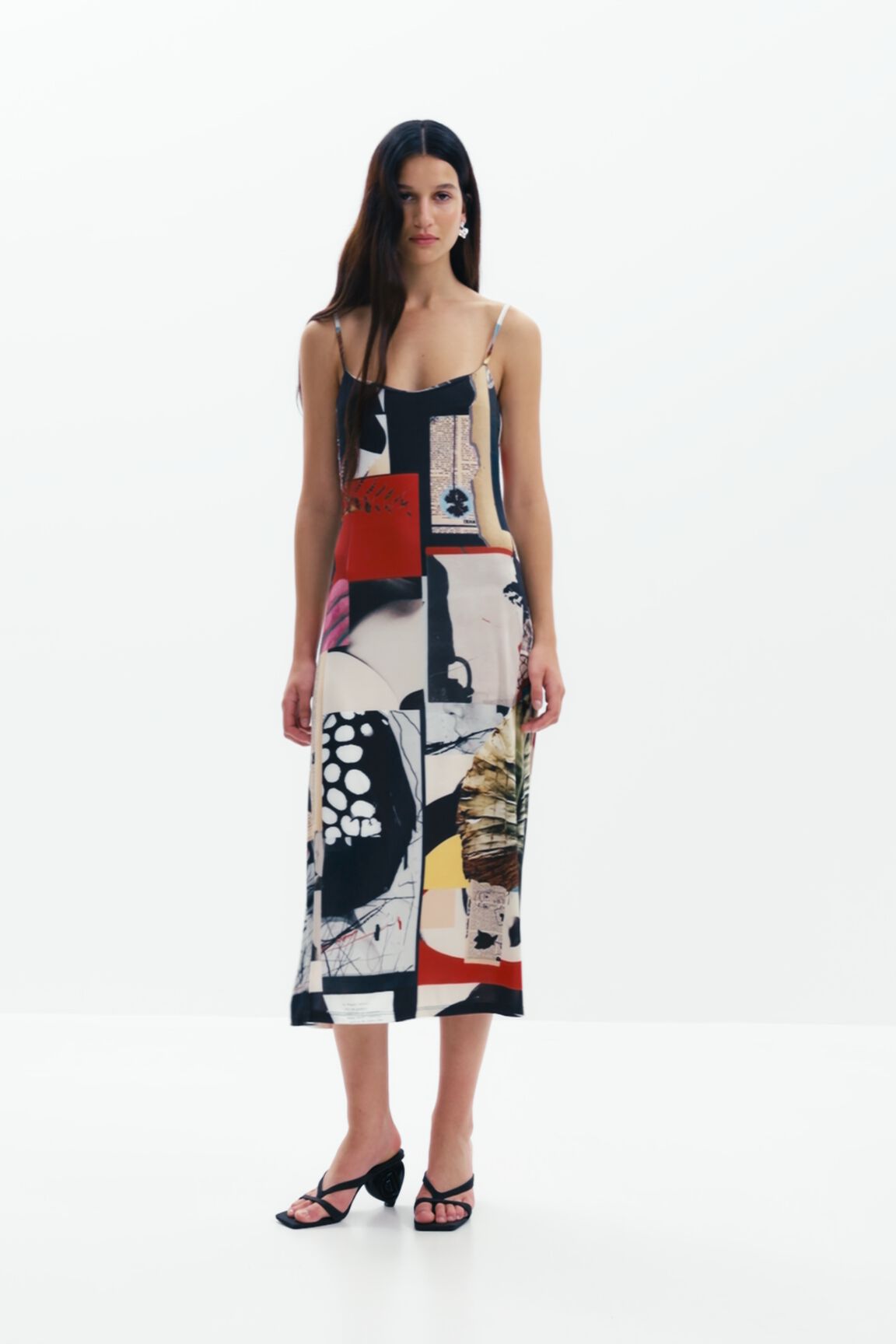 Midi dress with adjustable thin straps featuring a print designed by Monsieur Christian Lacroix.