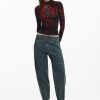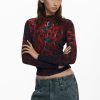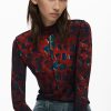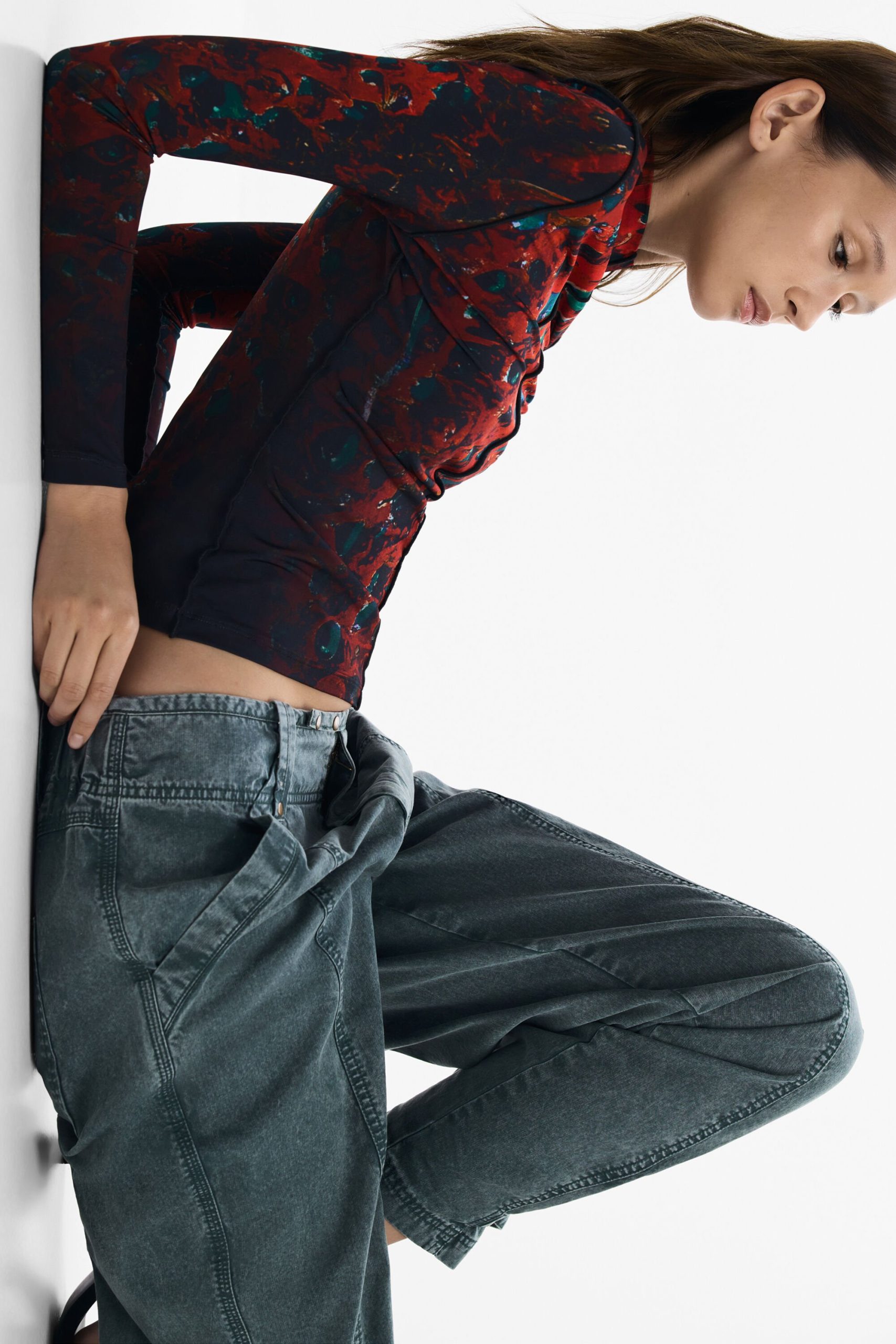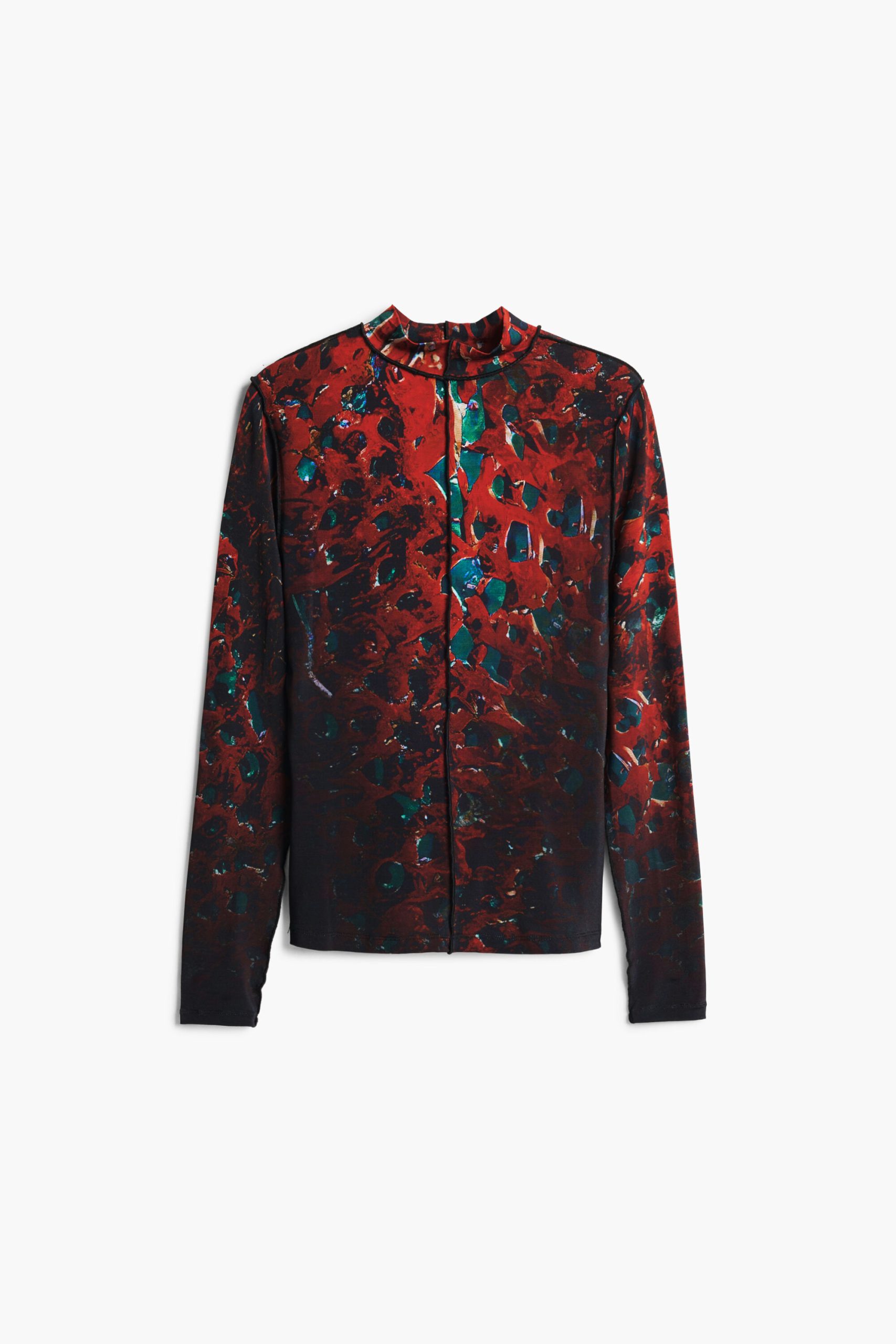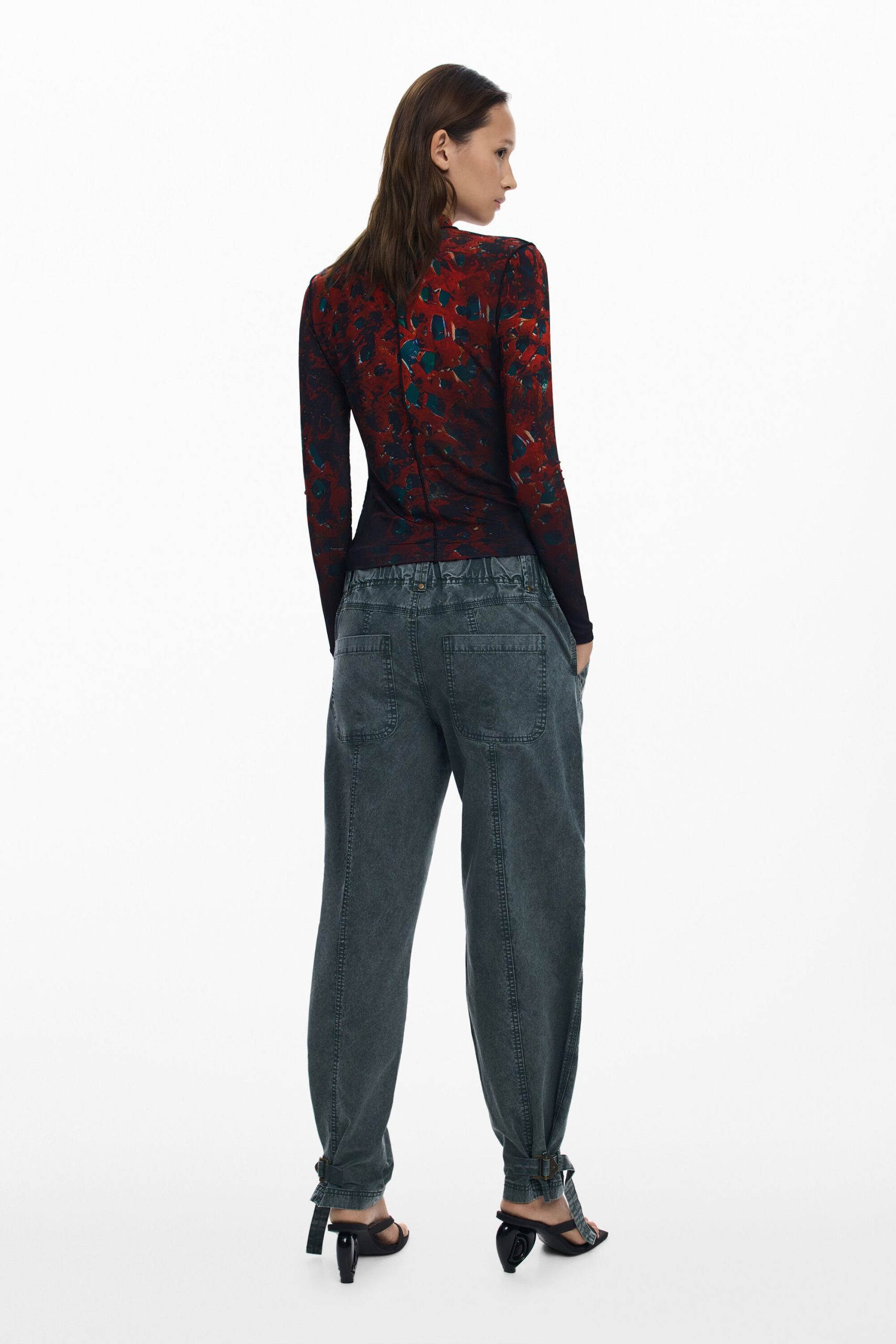 Long-sleeve T-shirt, regular fit, decorative stitching, and autumn-inspired leaf print.
