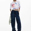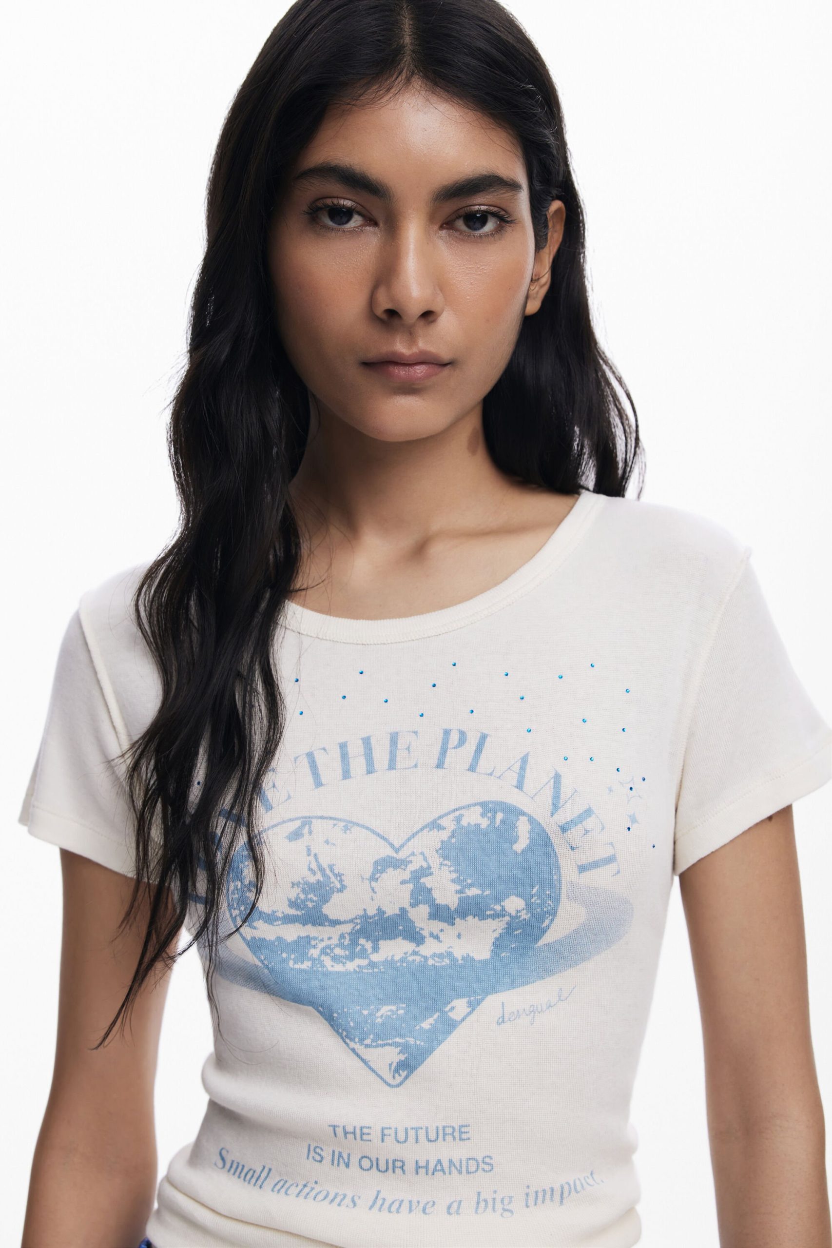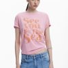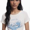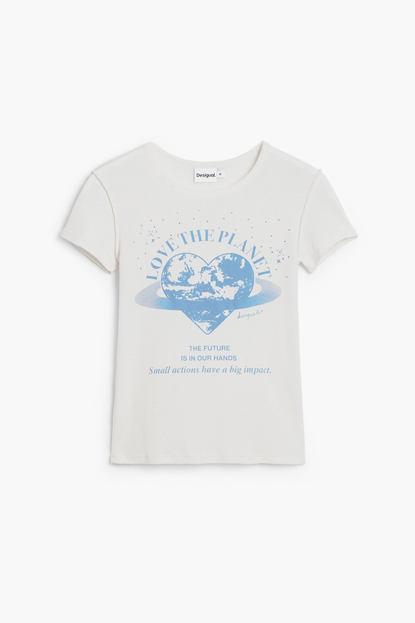 Short-sleeved T-shirt with a round neck and knit fabric featuring text and planet print