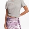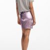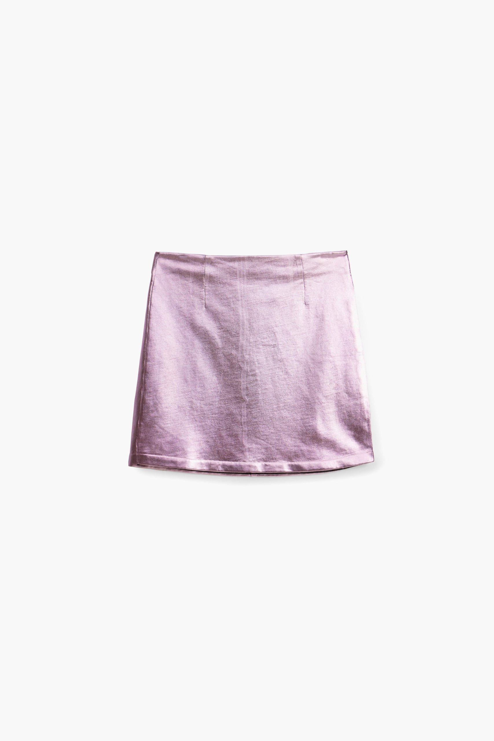 Fitted mini skirt with a straight cut and a shiny metallic finish in a solid color