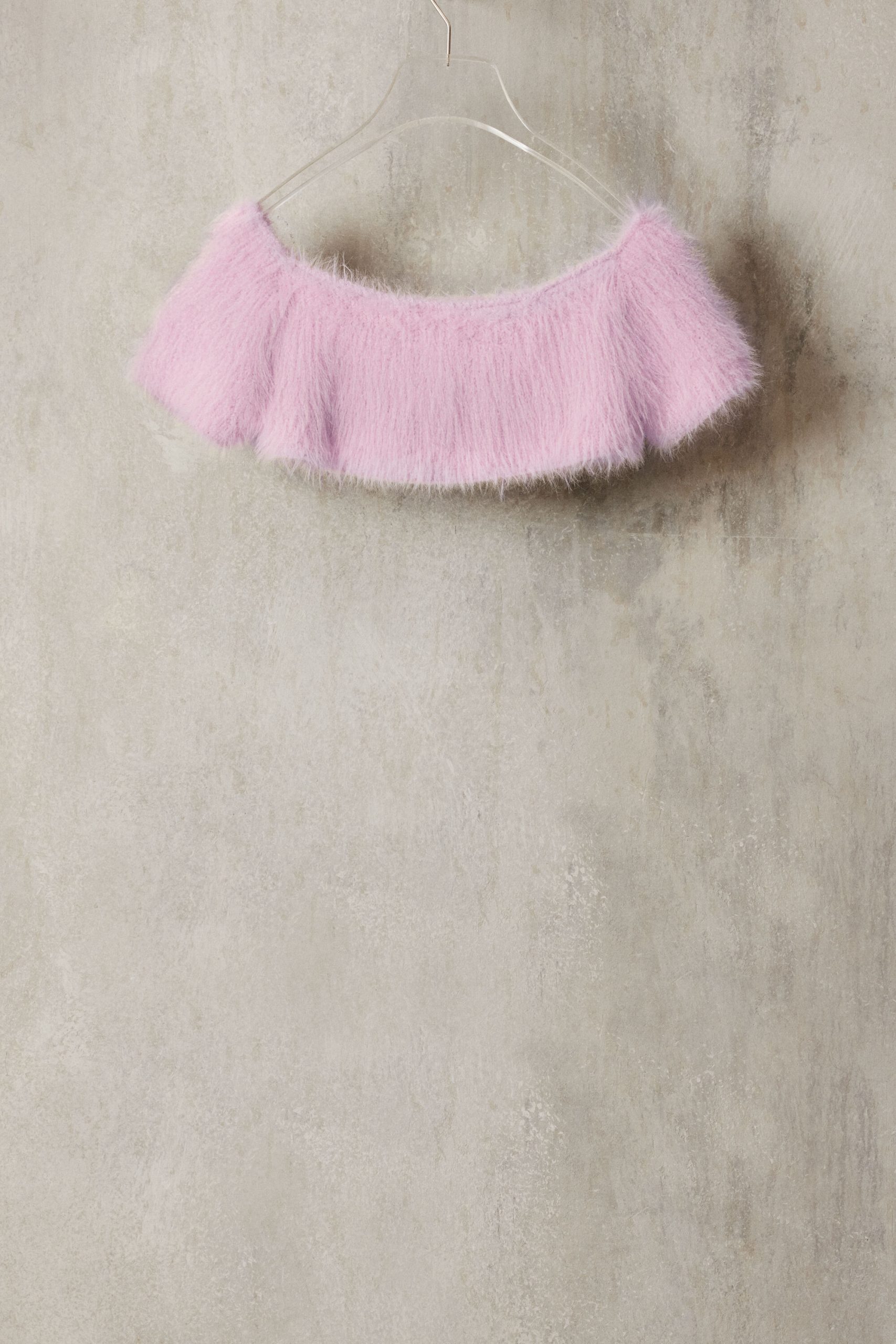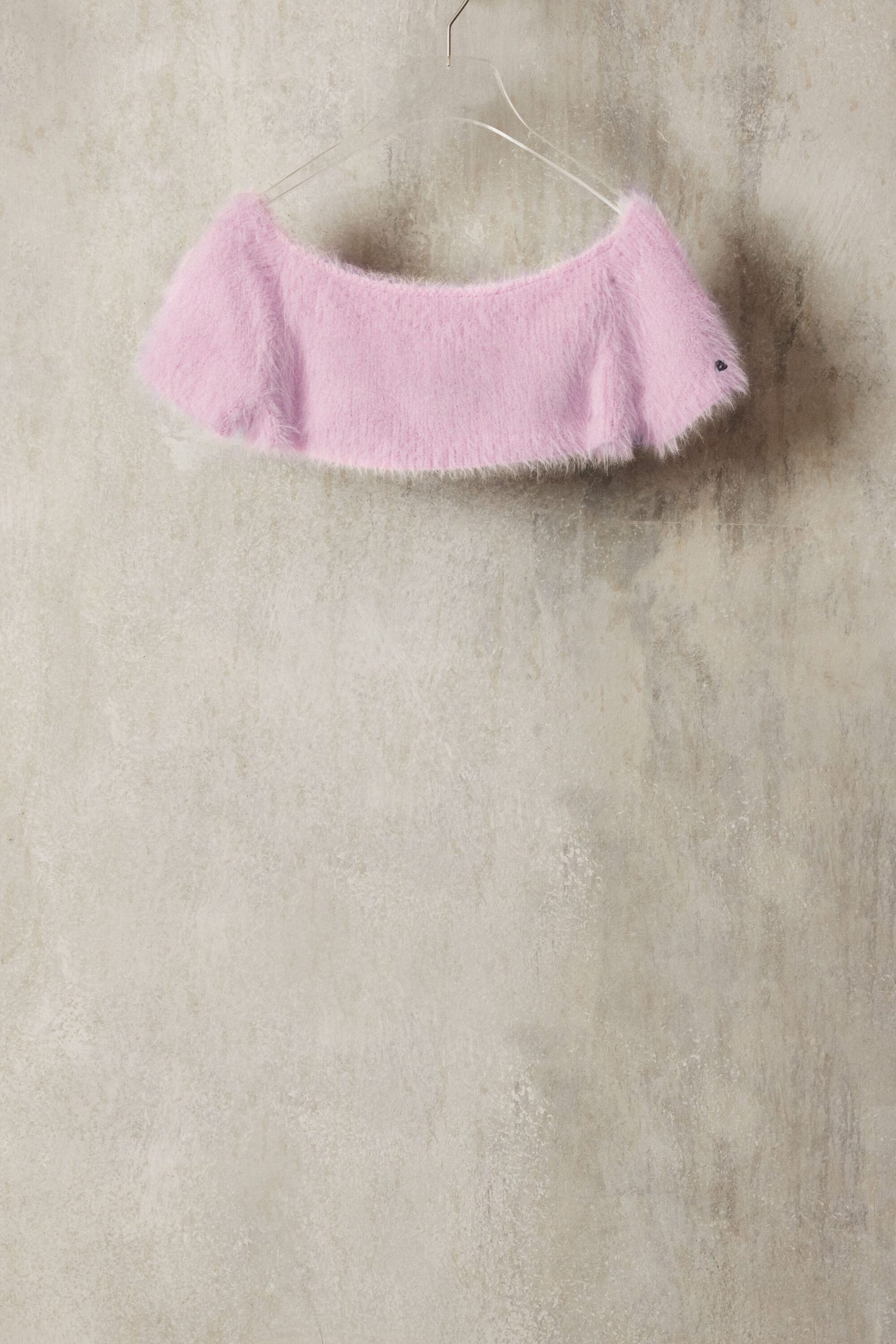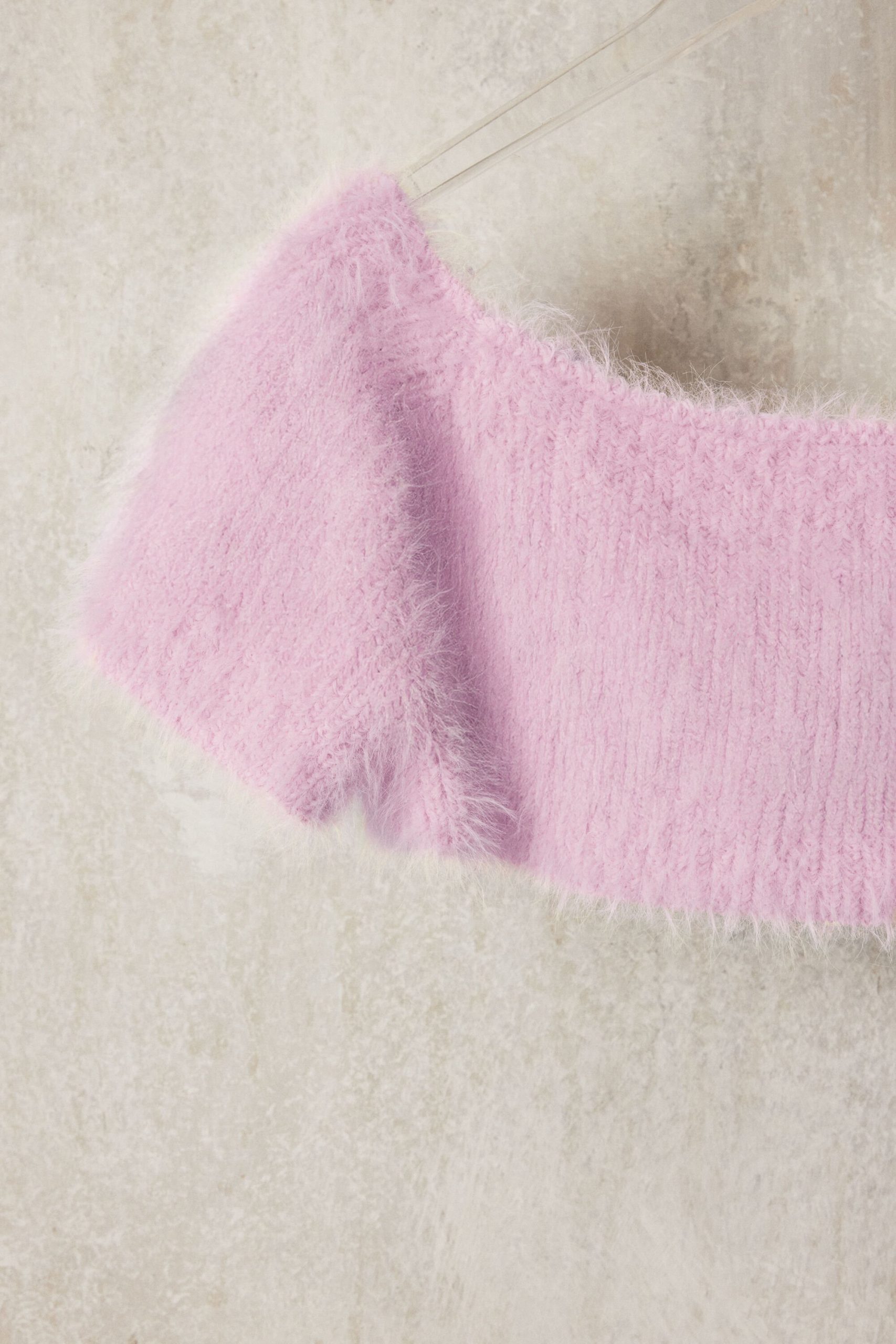 Short crop top-style T-shirt with a boat neckline, made from recycled fabric with a soft finish