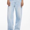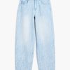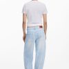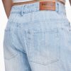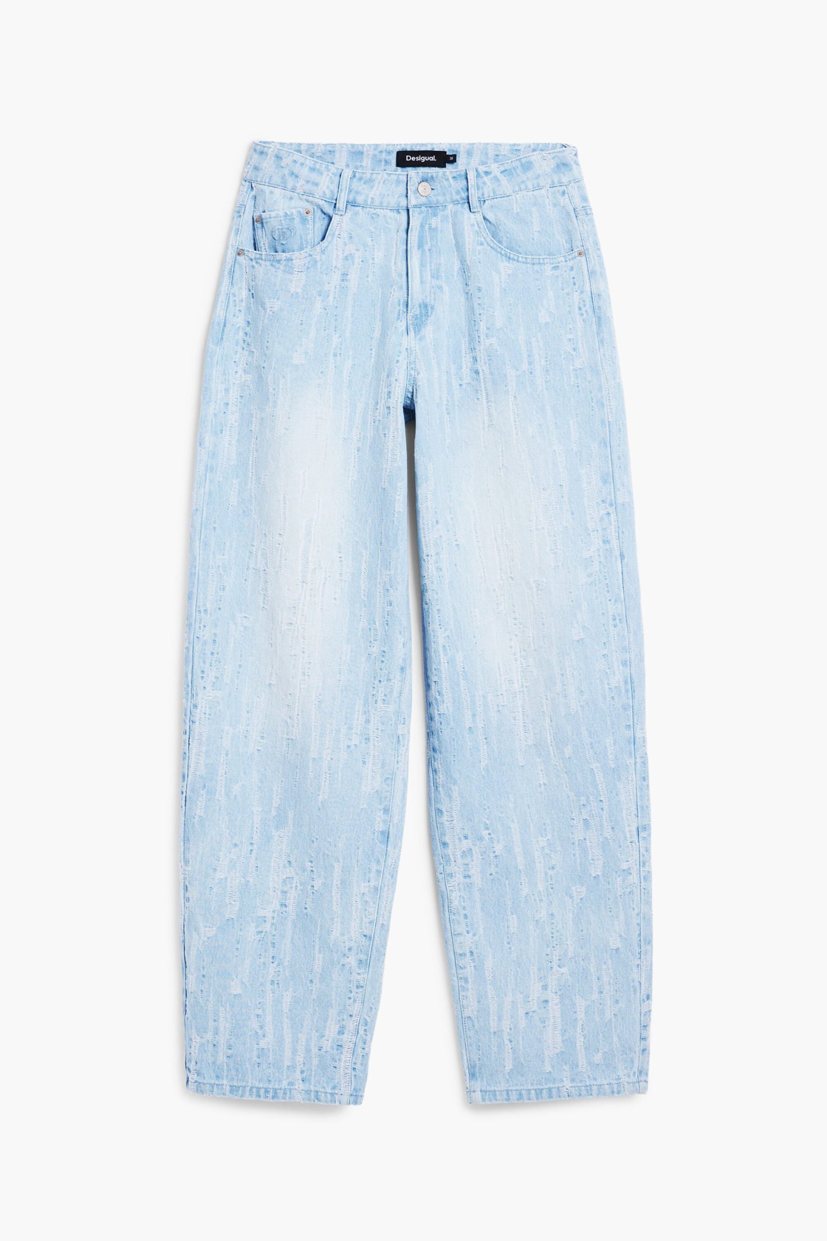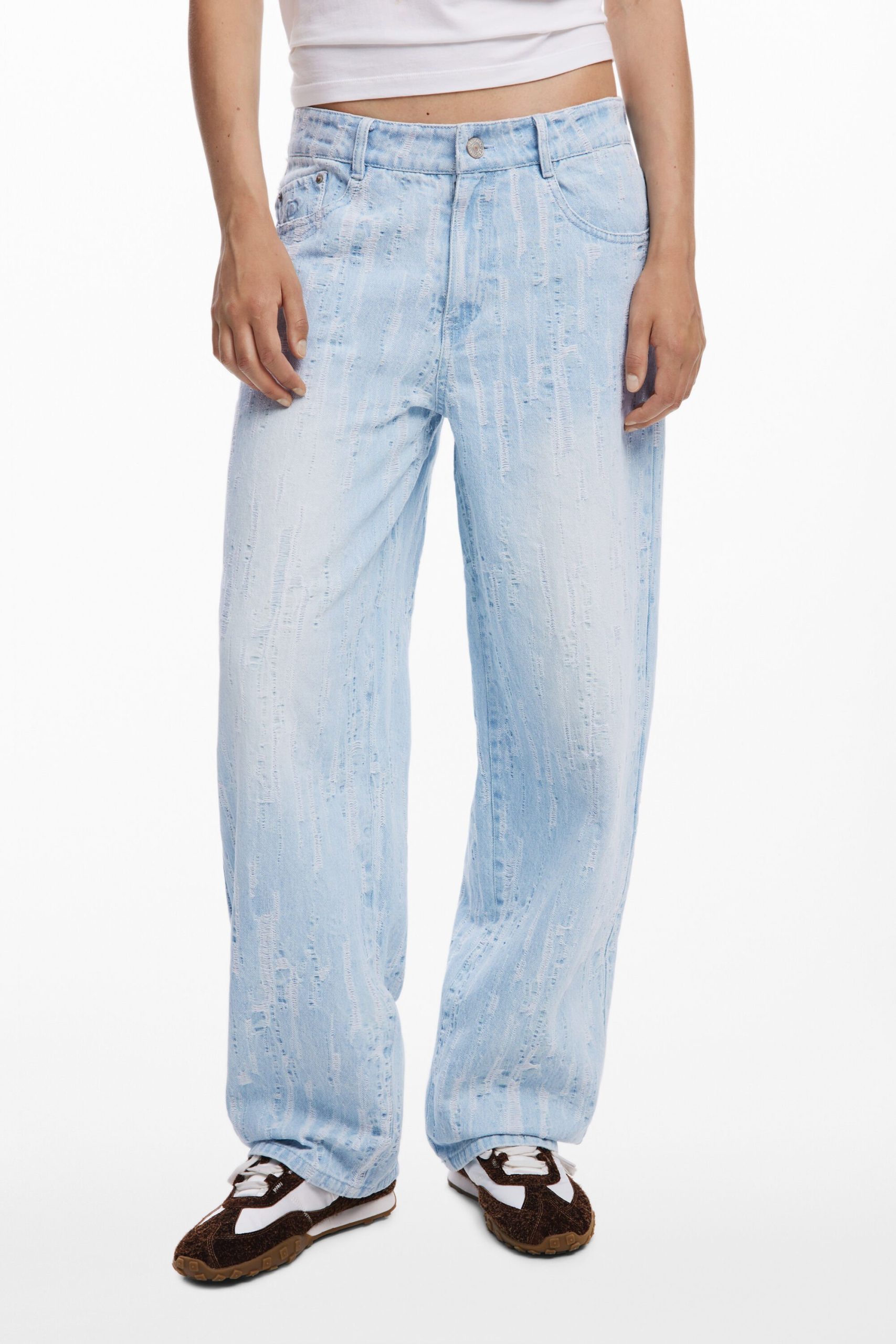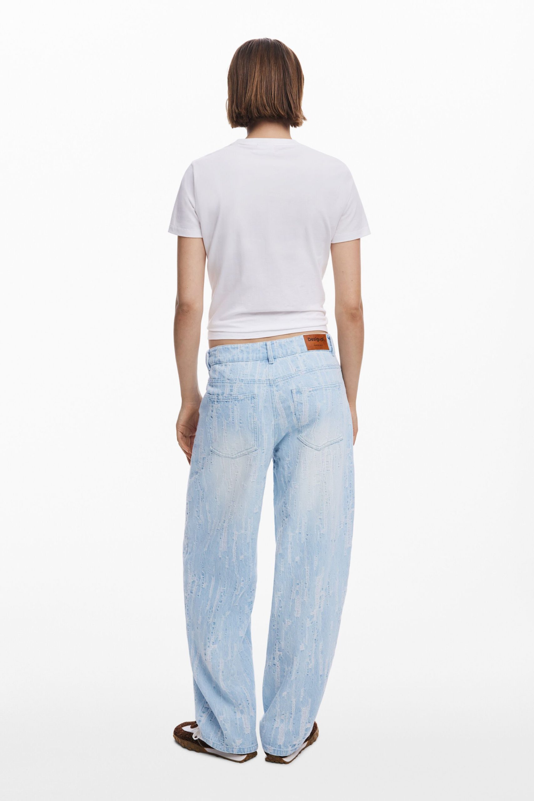 Baggy-cut jeans with a striped print with a worn effect and an embroidered logo on the front pocket.