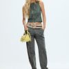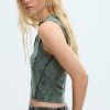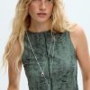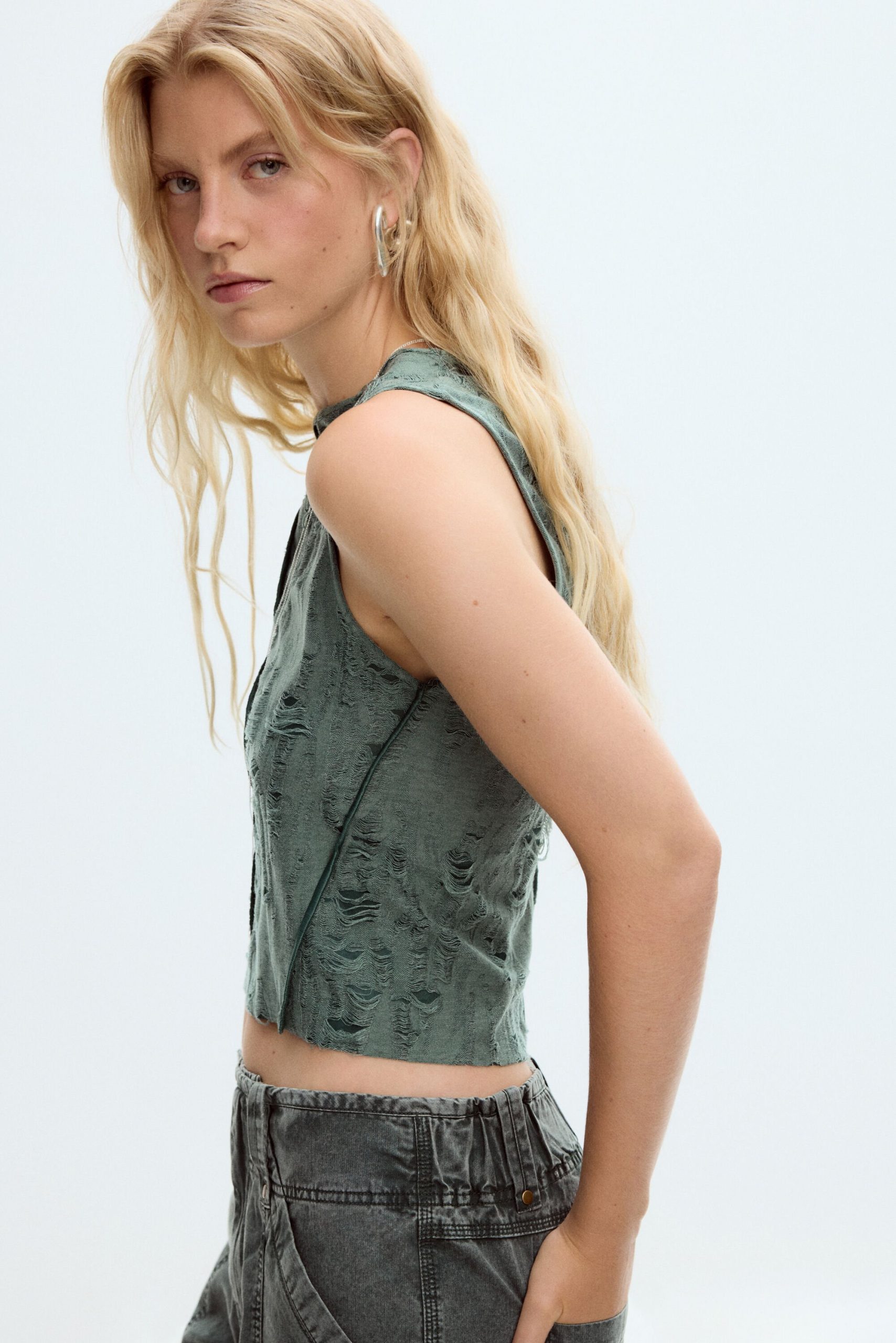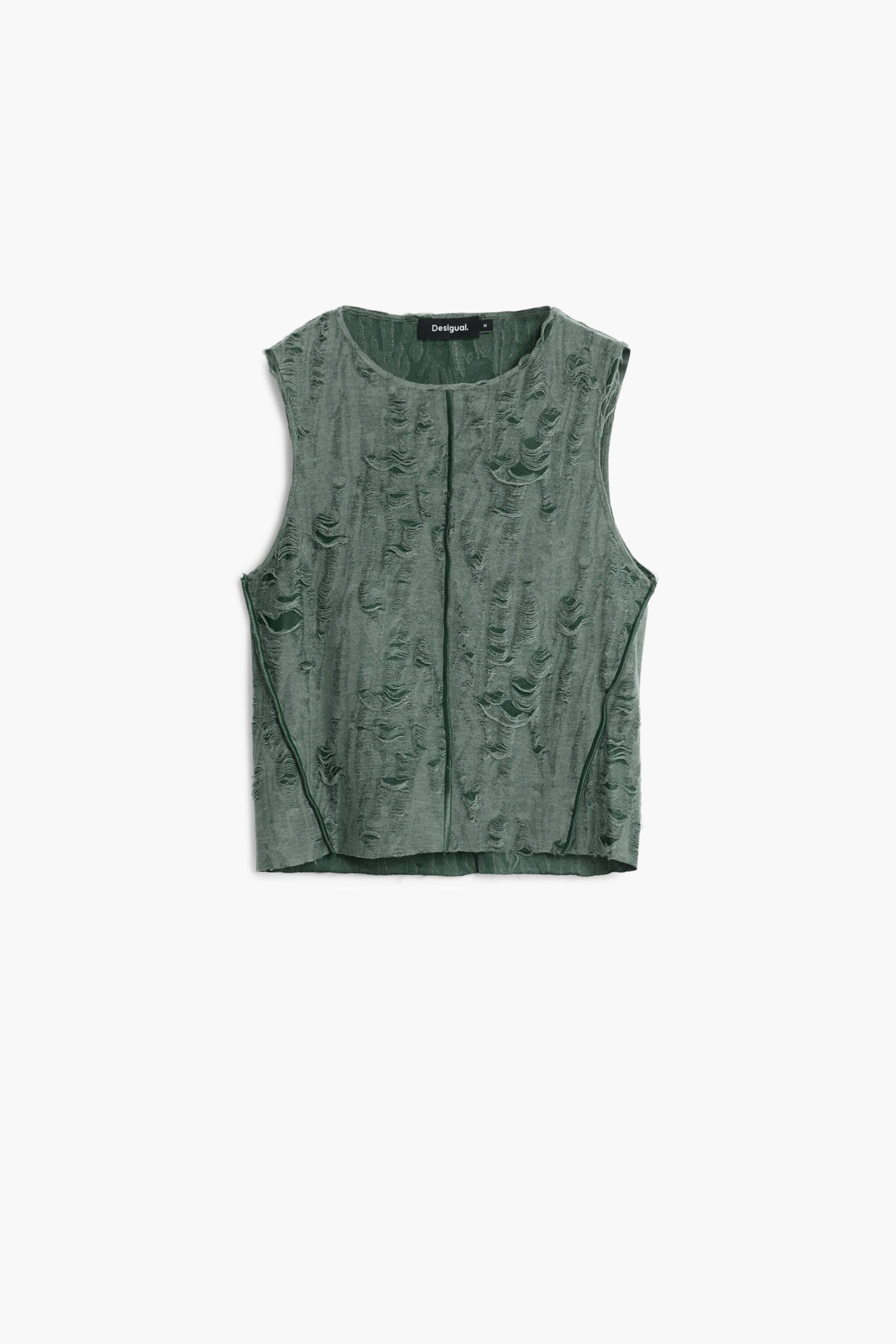 Sleeveless T-shirt made of textured stretch fabric with decorative seam details.