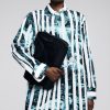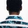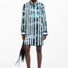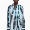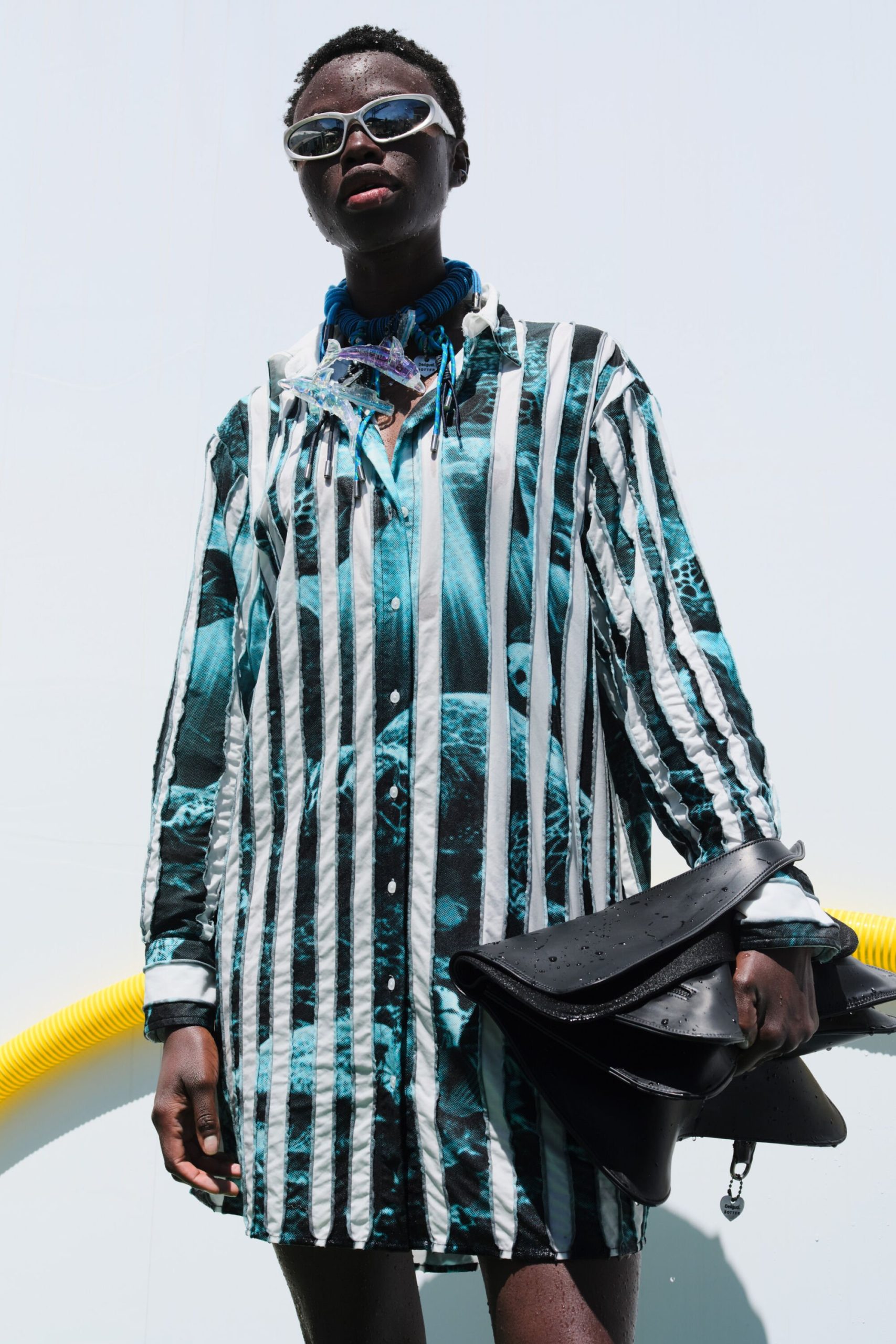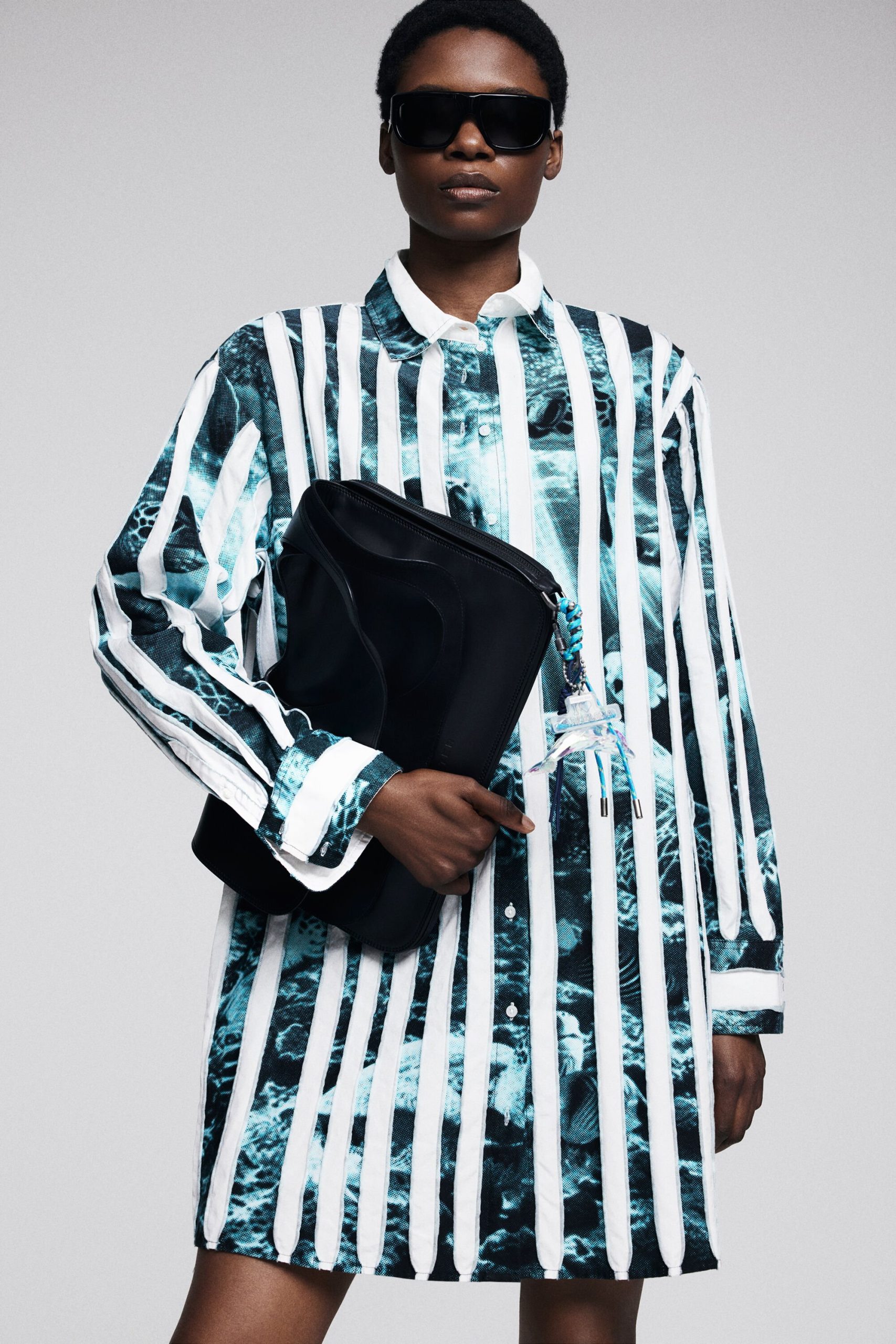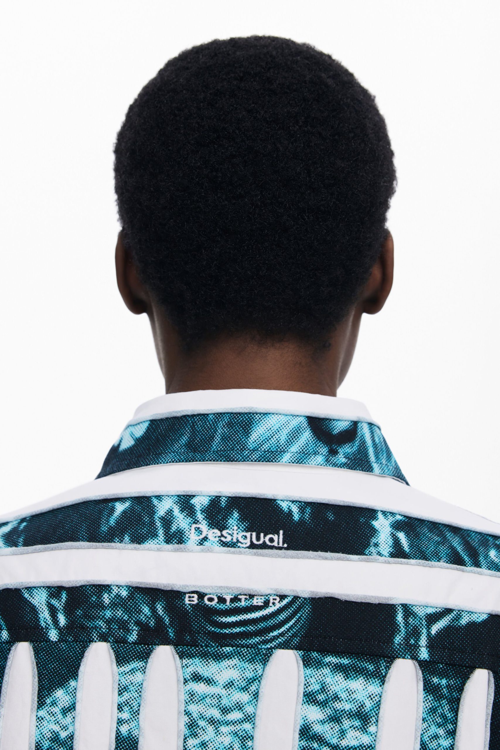 Oversized shirt dress in poplin, with panel details in t-shirt-style fabric and print inspired by underwater landscapes.