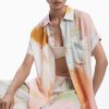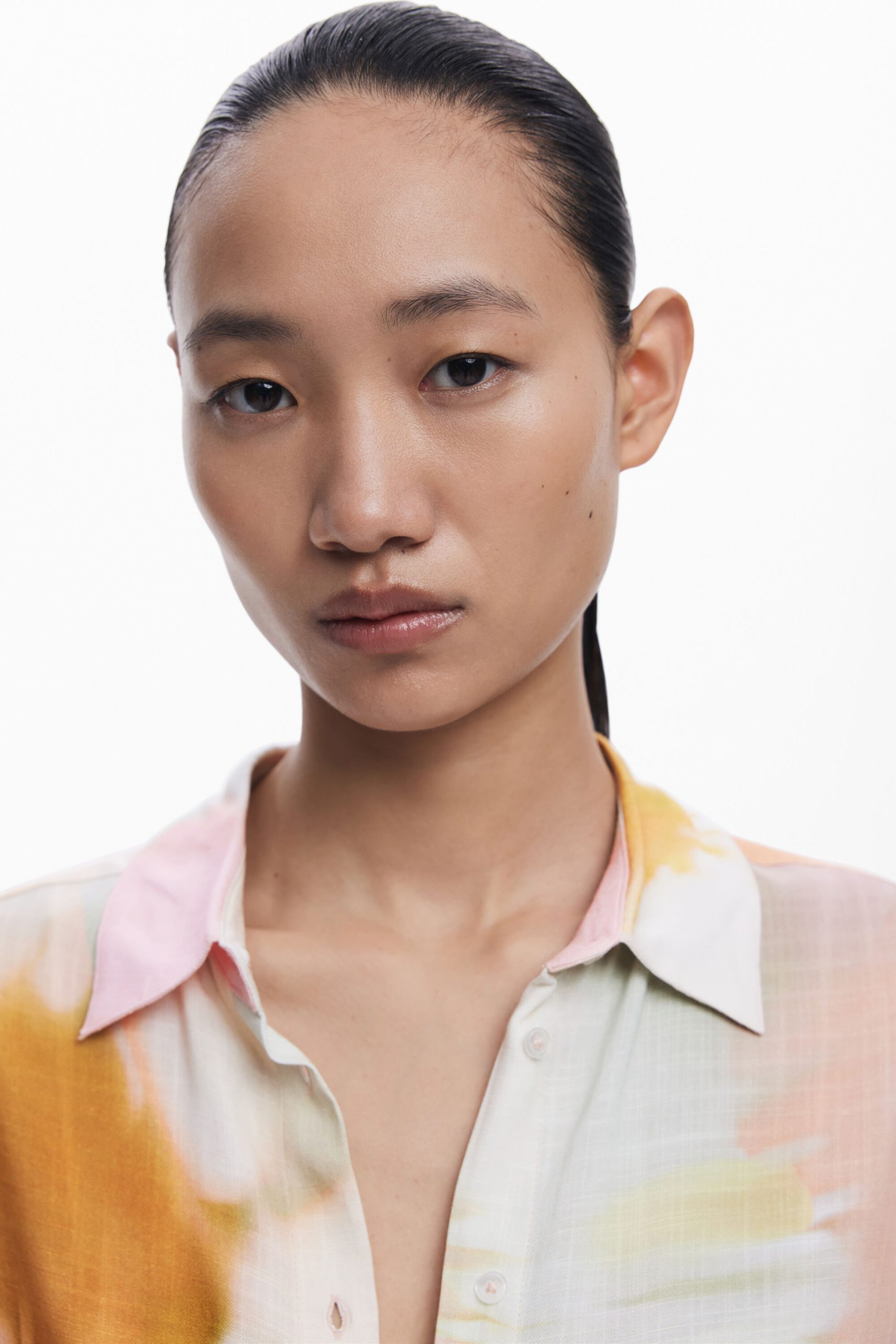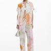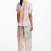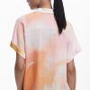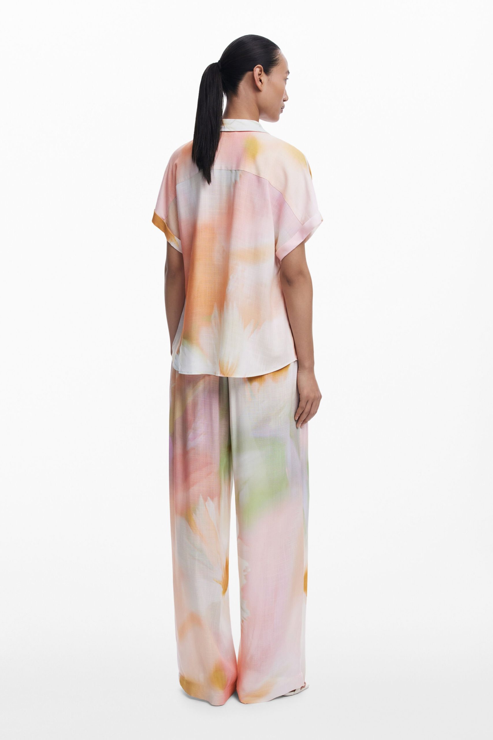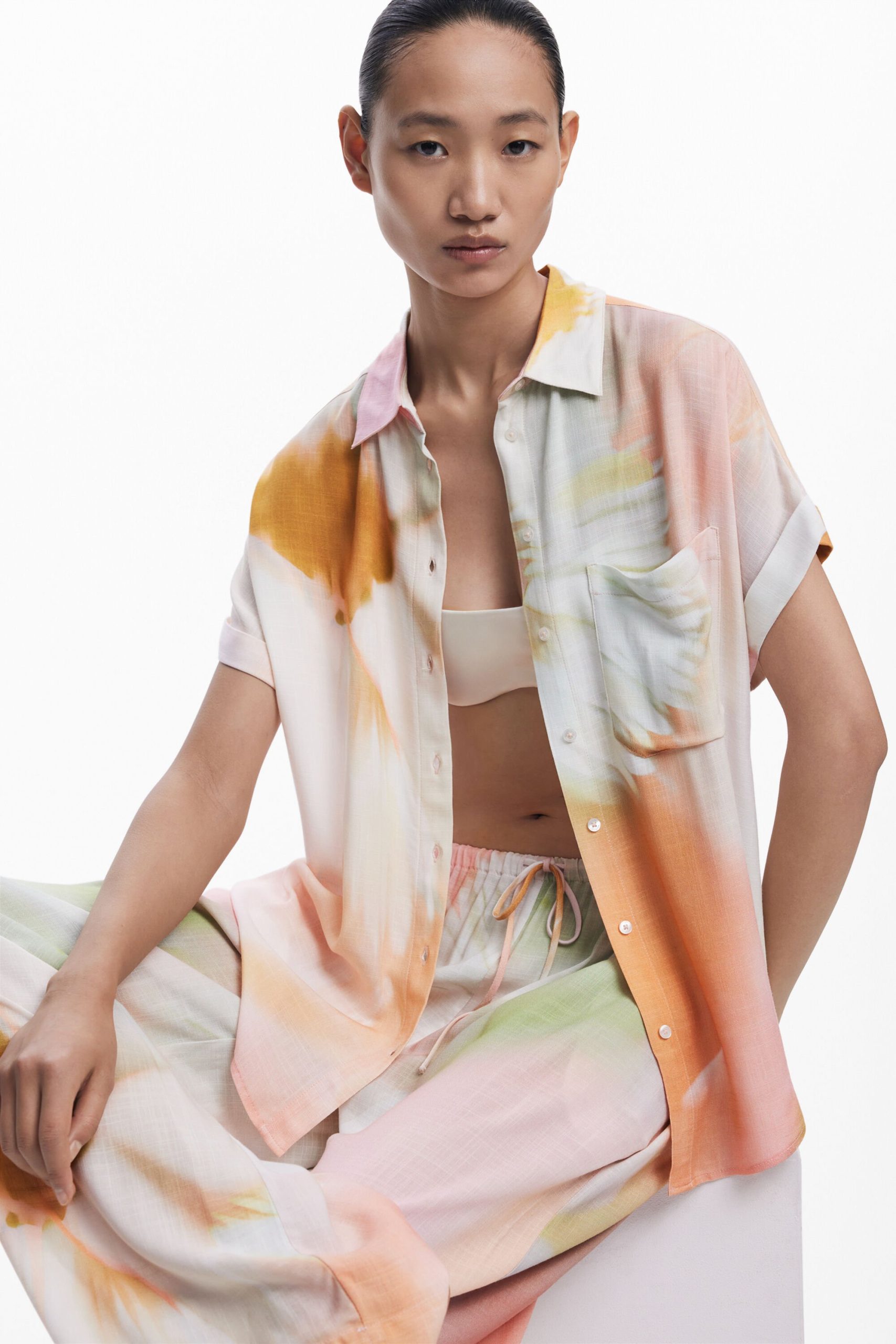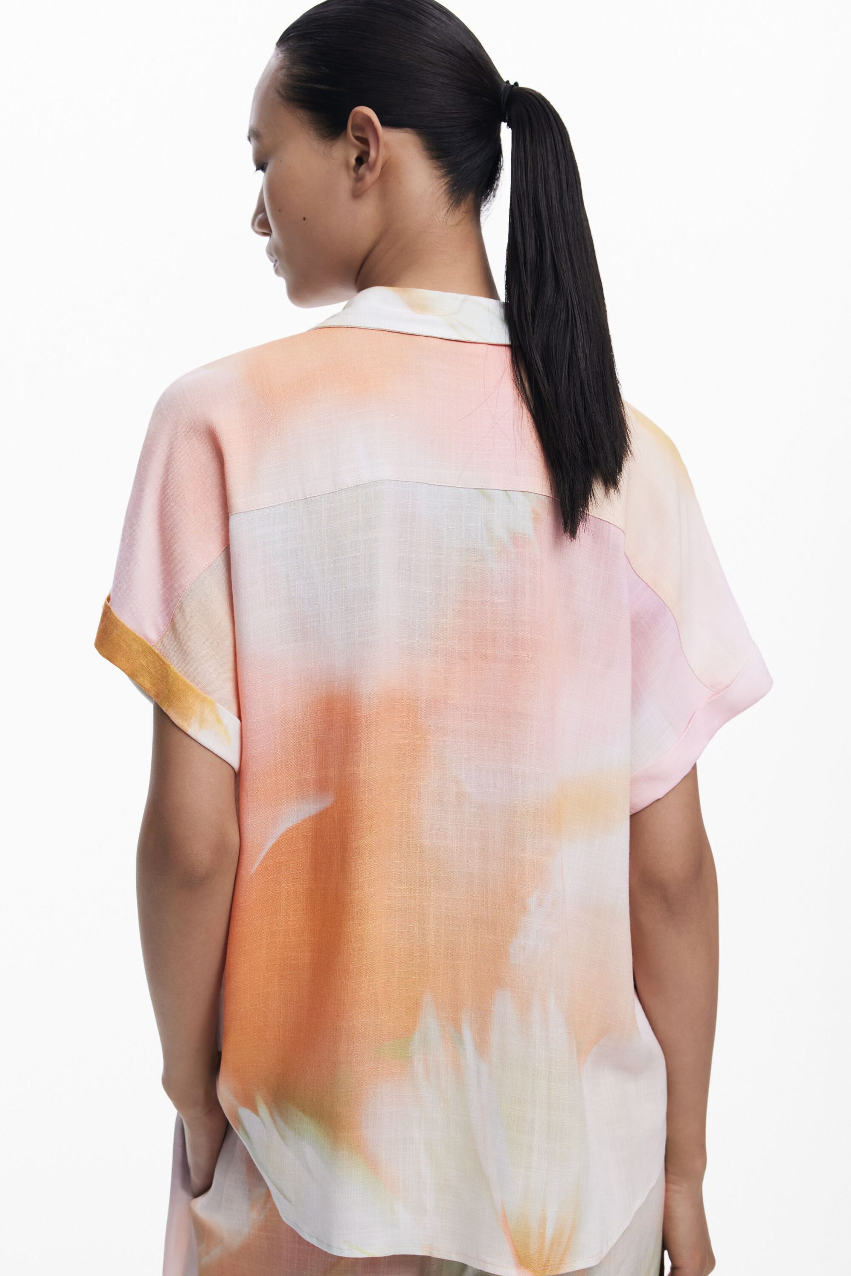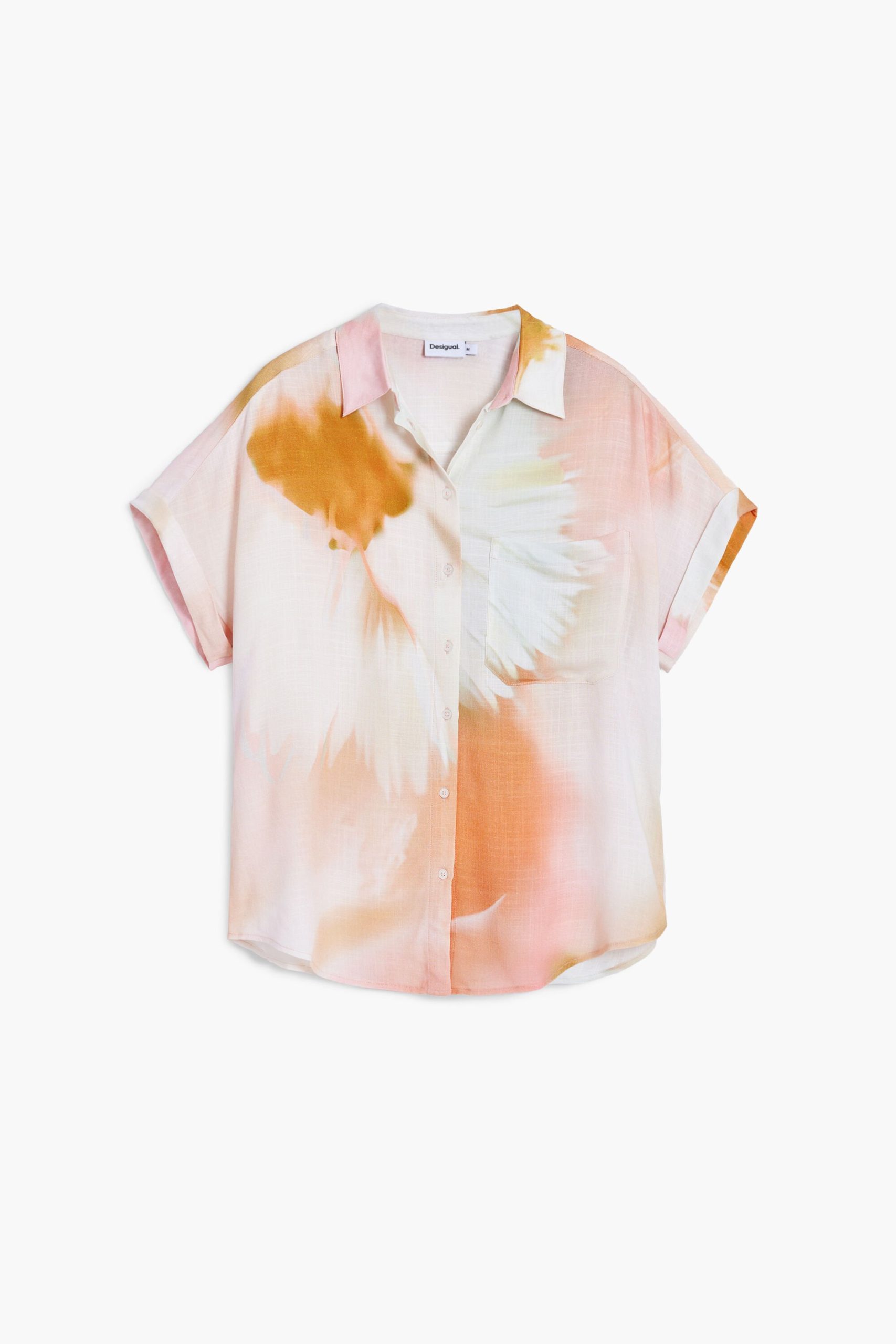 Fluid short-sleeve shirt with watercolor-style floral print and front pocket