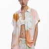 Fluid short-sleeve shirt with watercolor-style floral print and front pocket