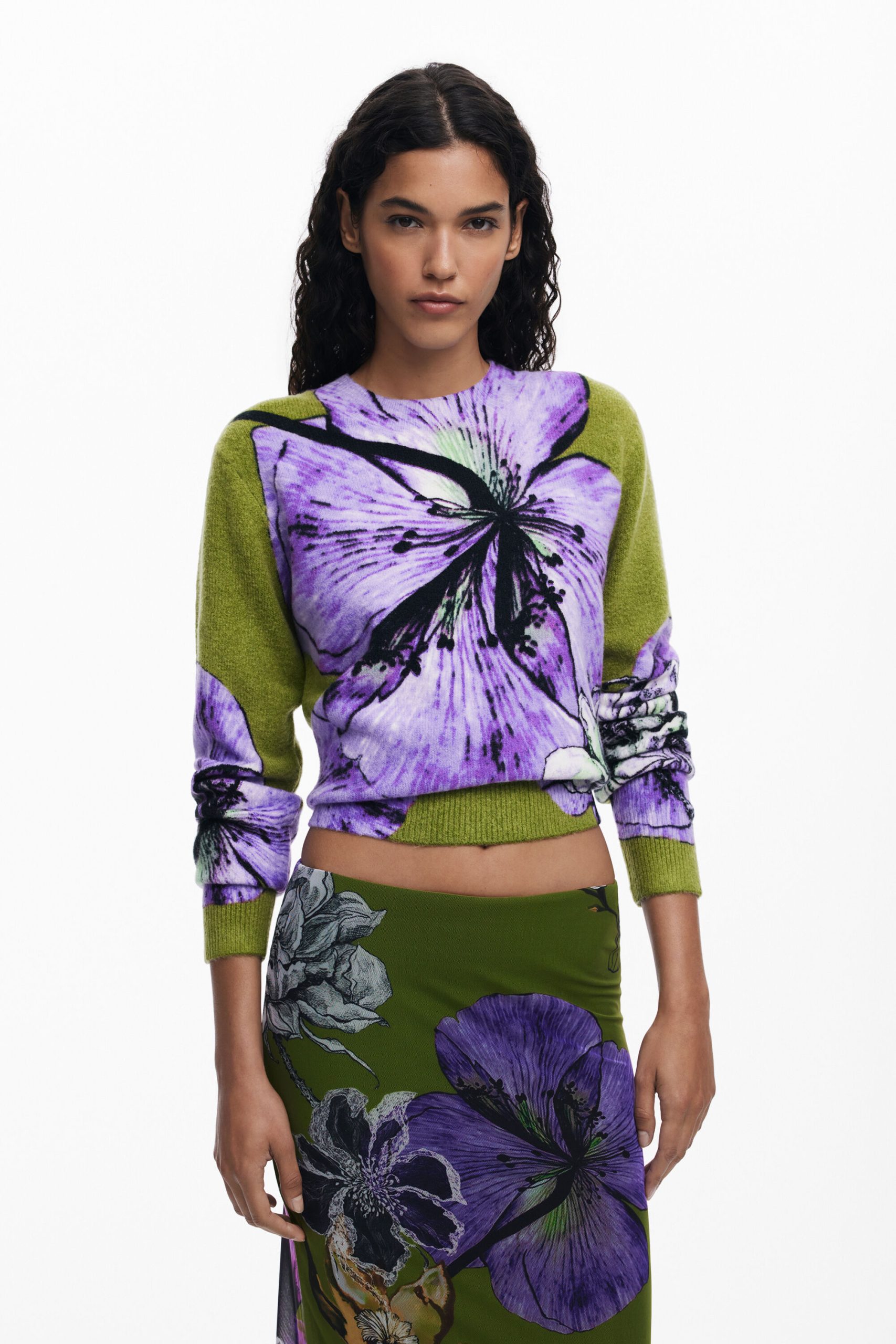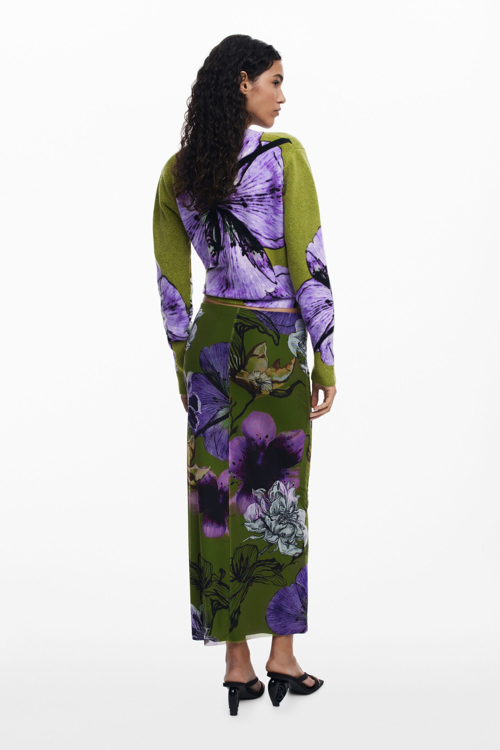 Midi pencil skirt in tulle with floral print designed by Monsieur Christian Lacroix.