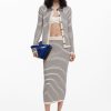 Knee-length pencil skirt in stretchy knit fabric, body-hugging, with horizontal stripe print.