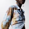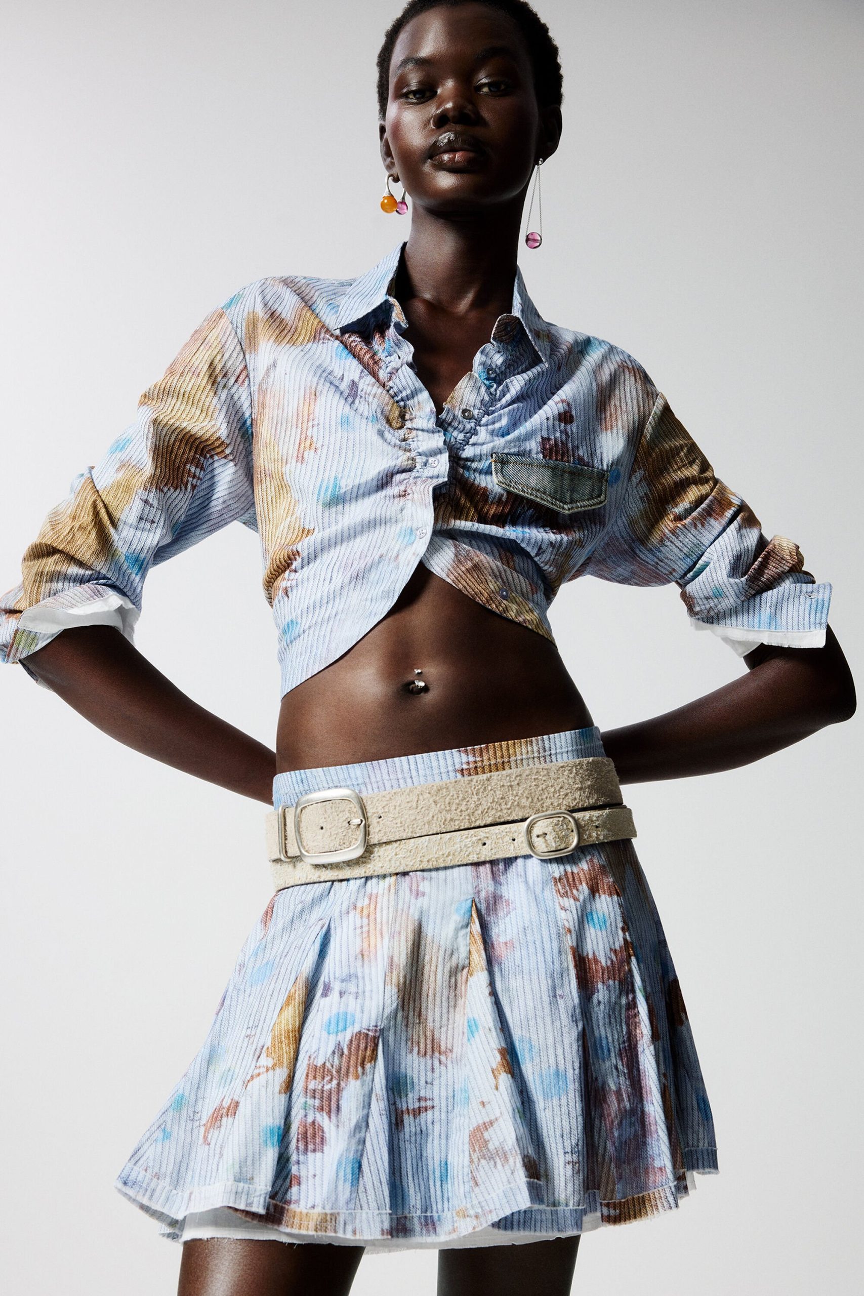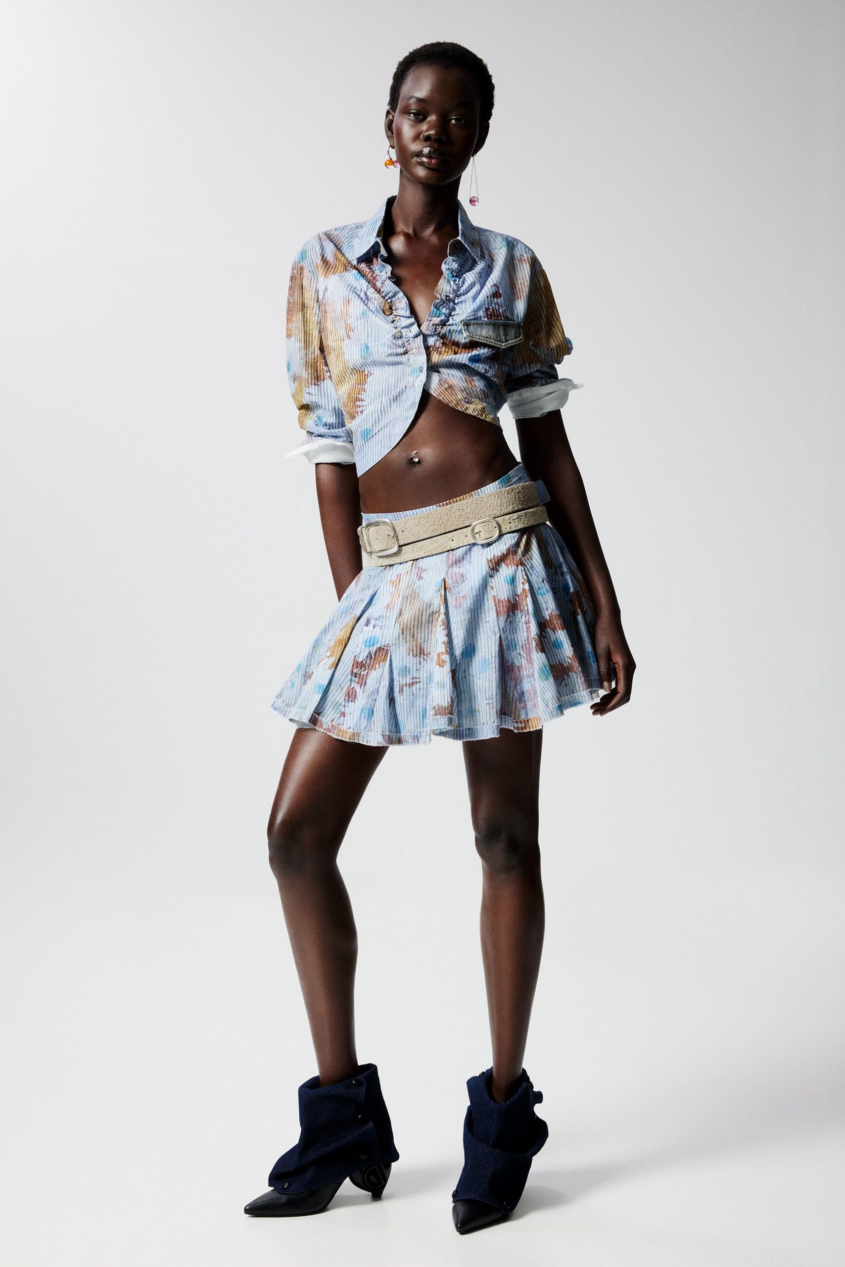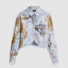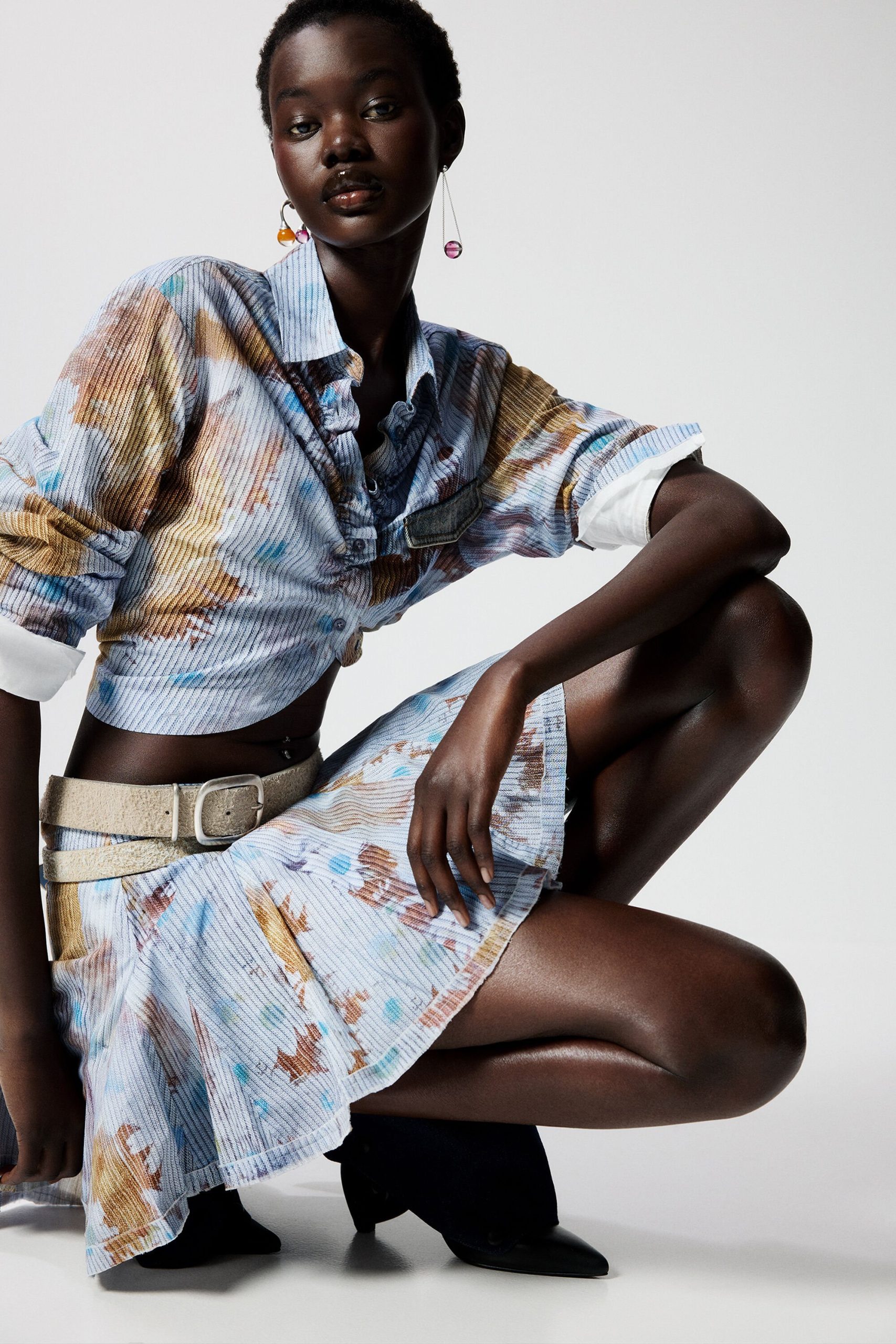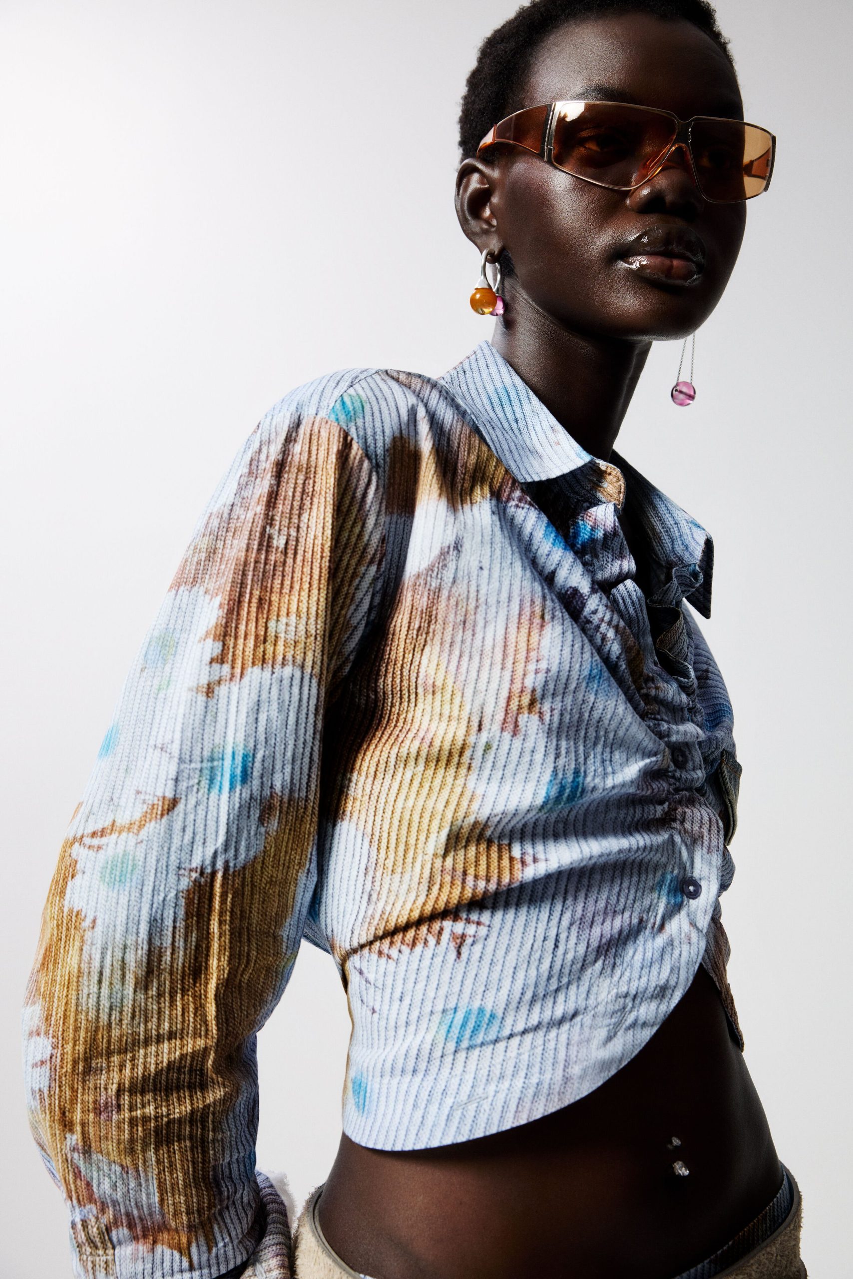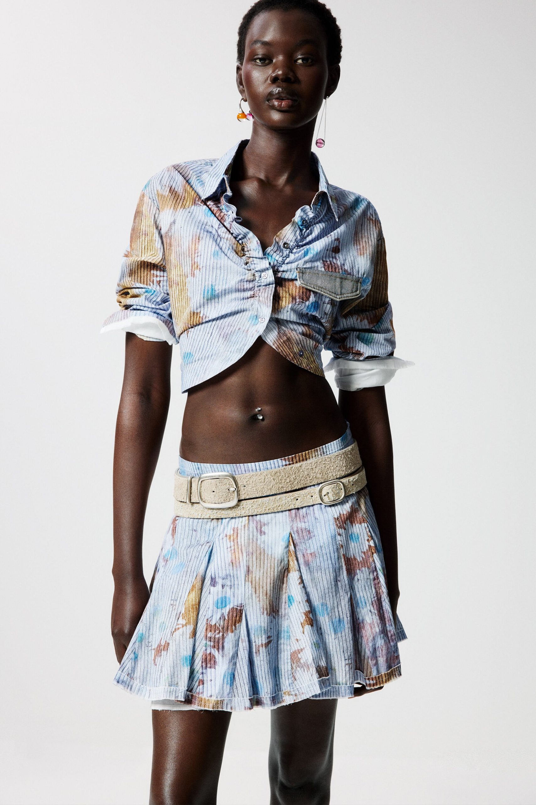 Regular-fit shirt with long sleeves, made of cotton fabric and featuring a stripes and flowers print