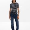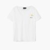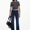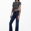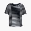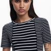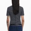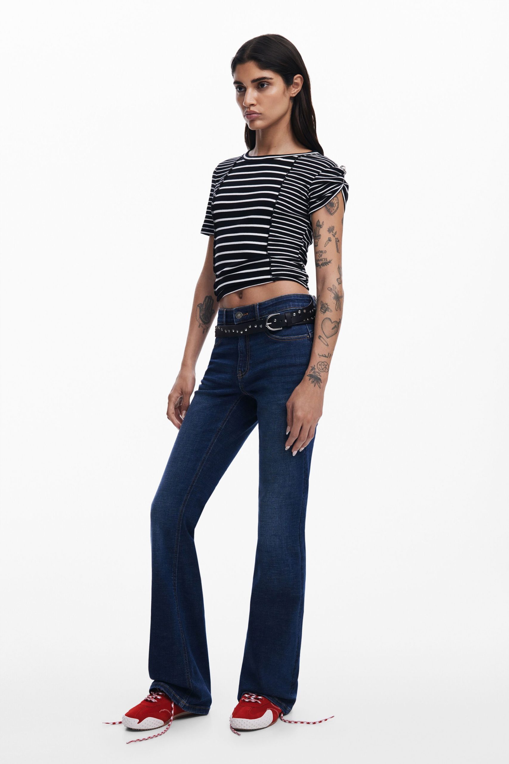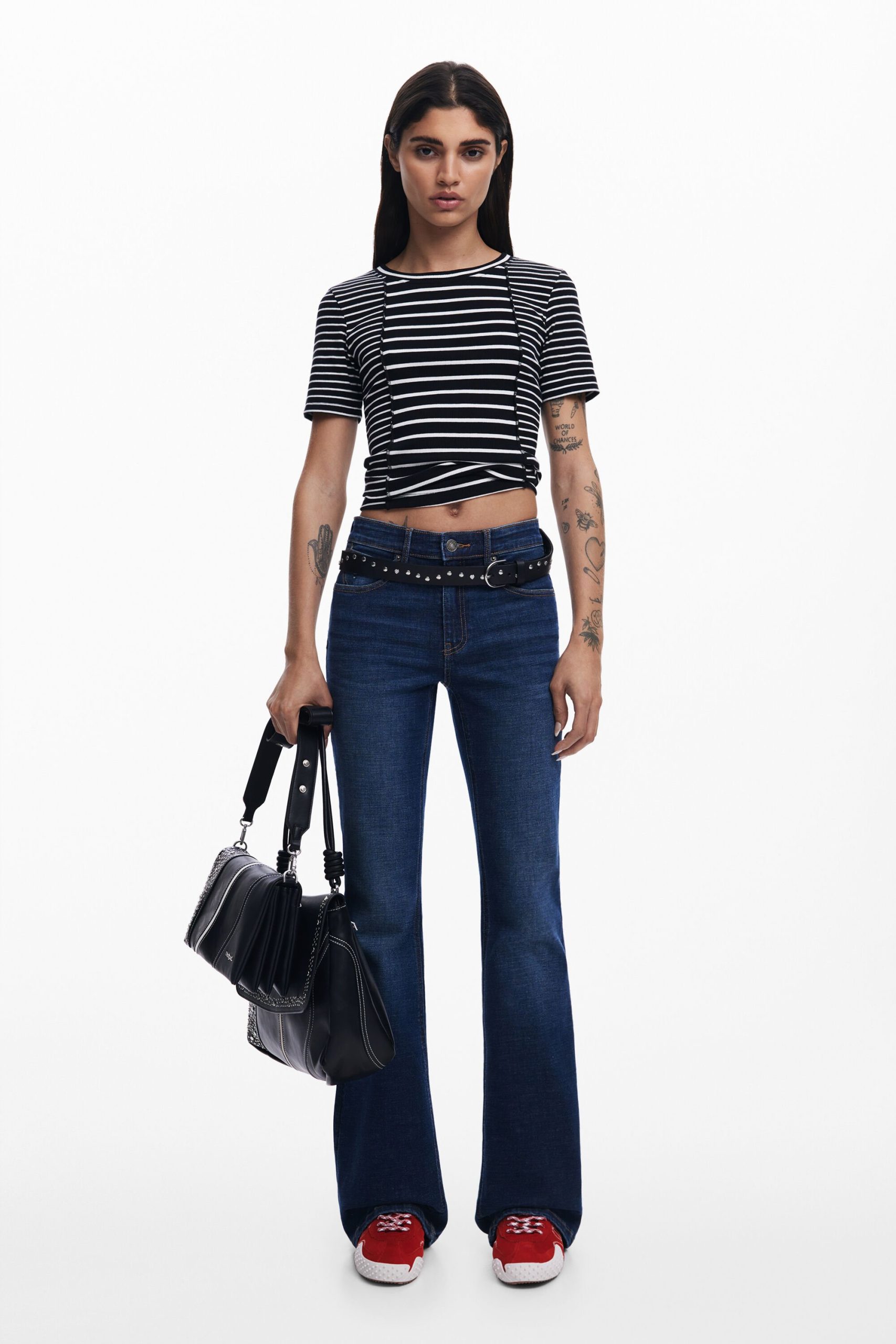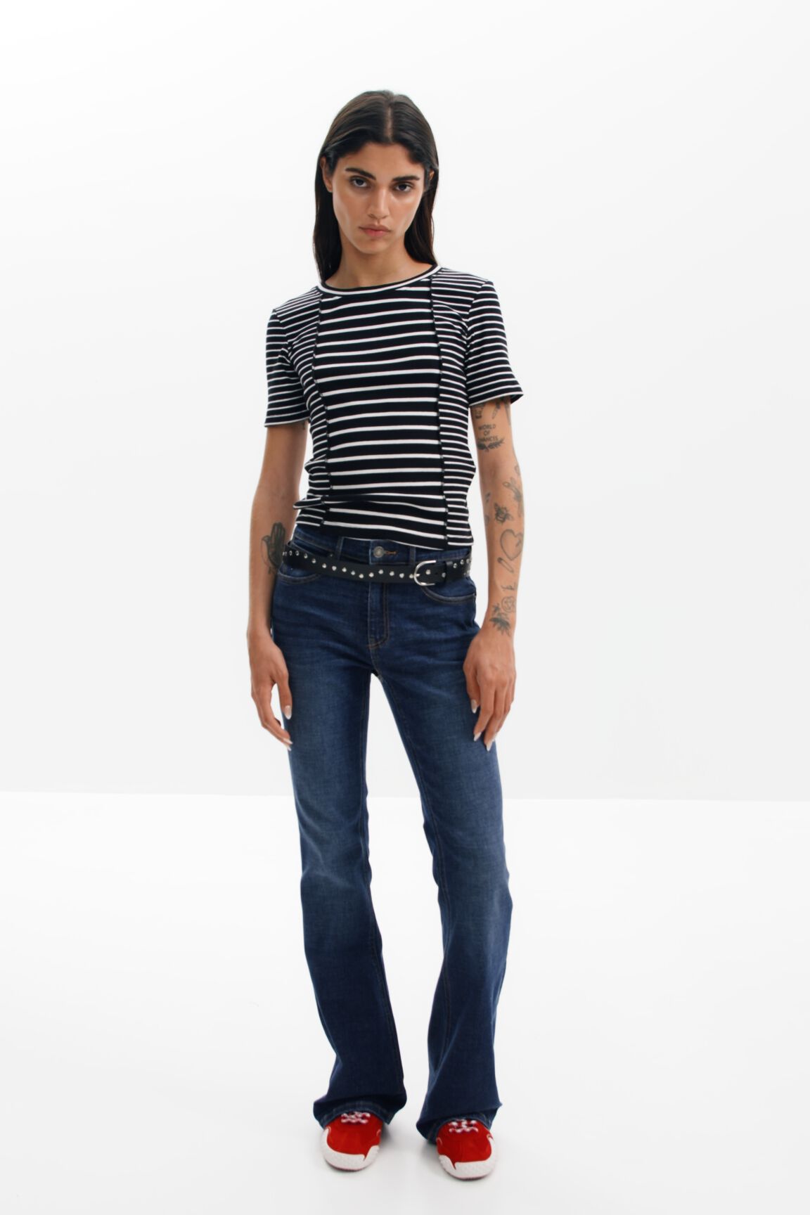 Short-sleeved T-shirt with a round neck and patchwork style combining different striped patterns.