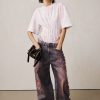 Long baggy-style denim trousers with embroidered fabric appliqués and Desigual logo in a frayed effect.