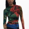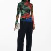 Fitted fine sweater, long-sleeved, turtleneck, and tapestry print designed by Monsieur Christian Lacroix.