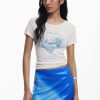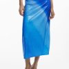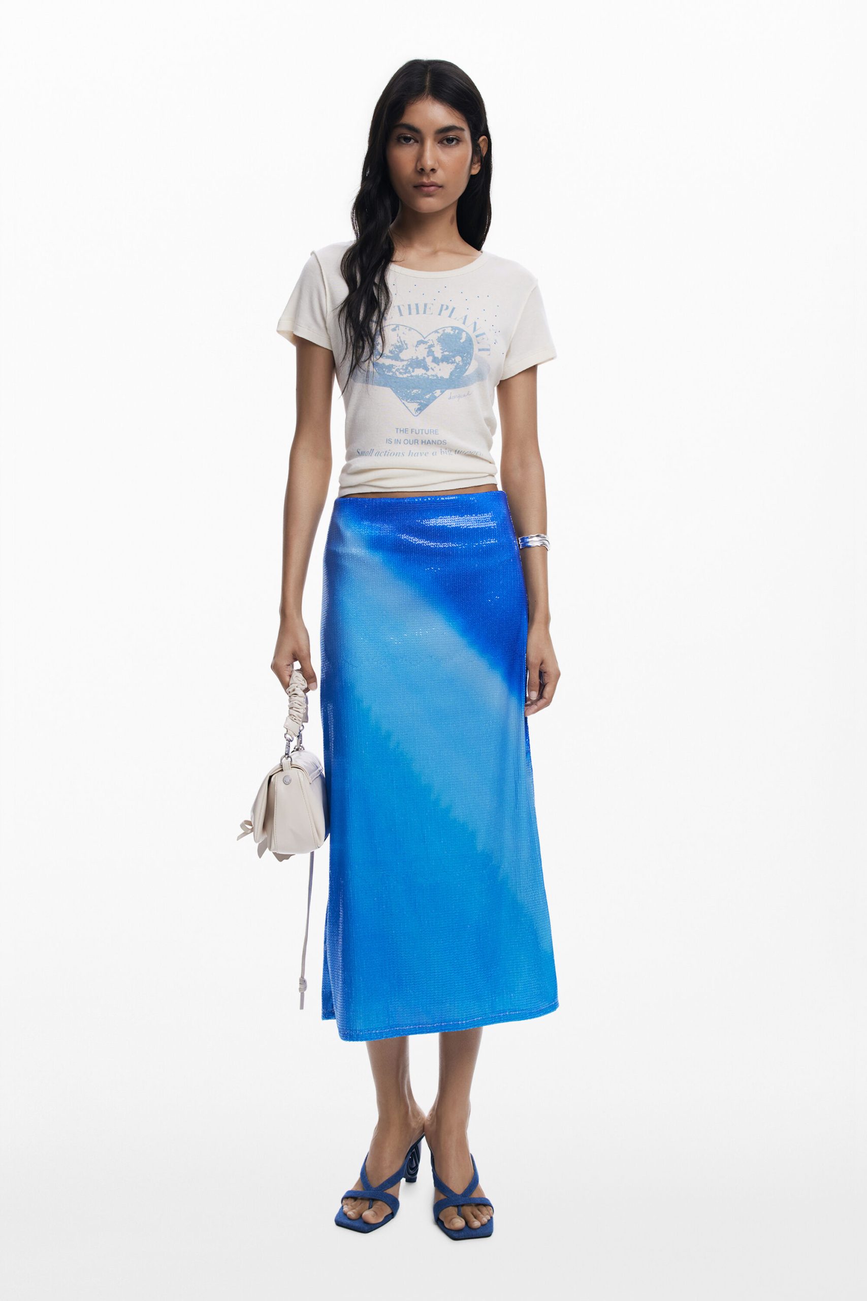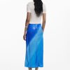 Knee-length skirt with a soft touch, in stretchy fabric, featuring a tie-dye print in blue tones.