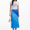 Knee-length skirt with a soft touch, in stretchy fabric, featuring a tie-dye print in blue tones.