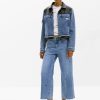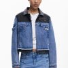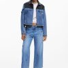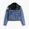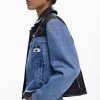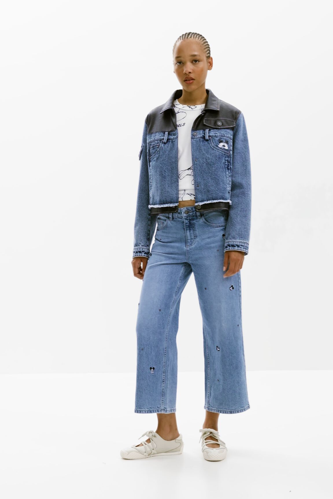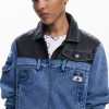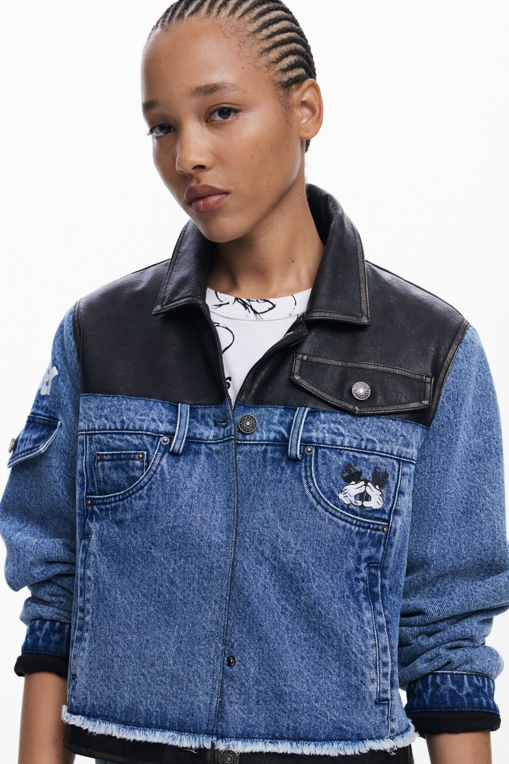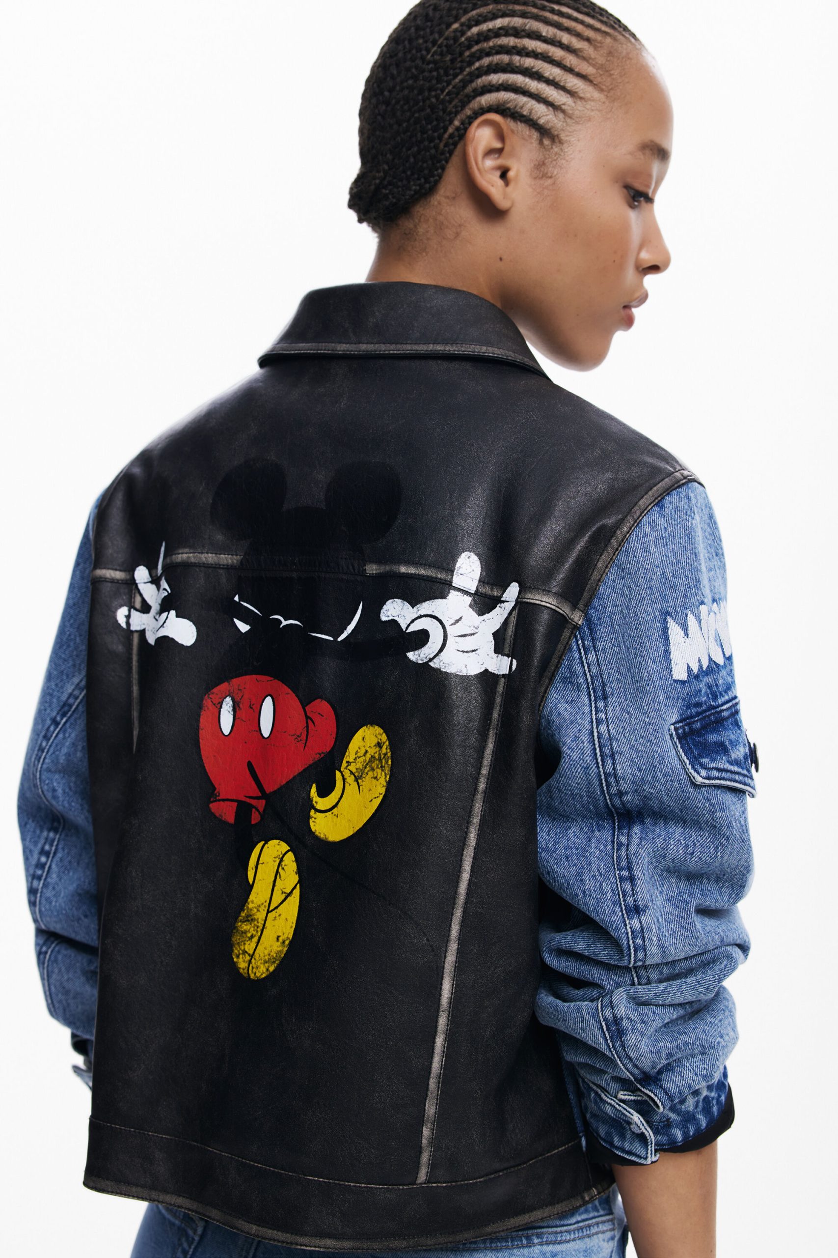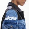Bicolor Trucker denim jacket with waxed effect, multiple front pockets, and Mickey Mouse™ print.