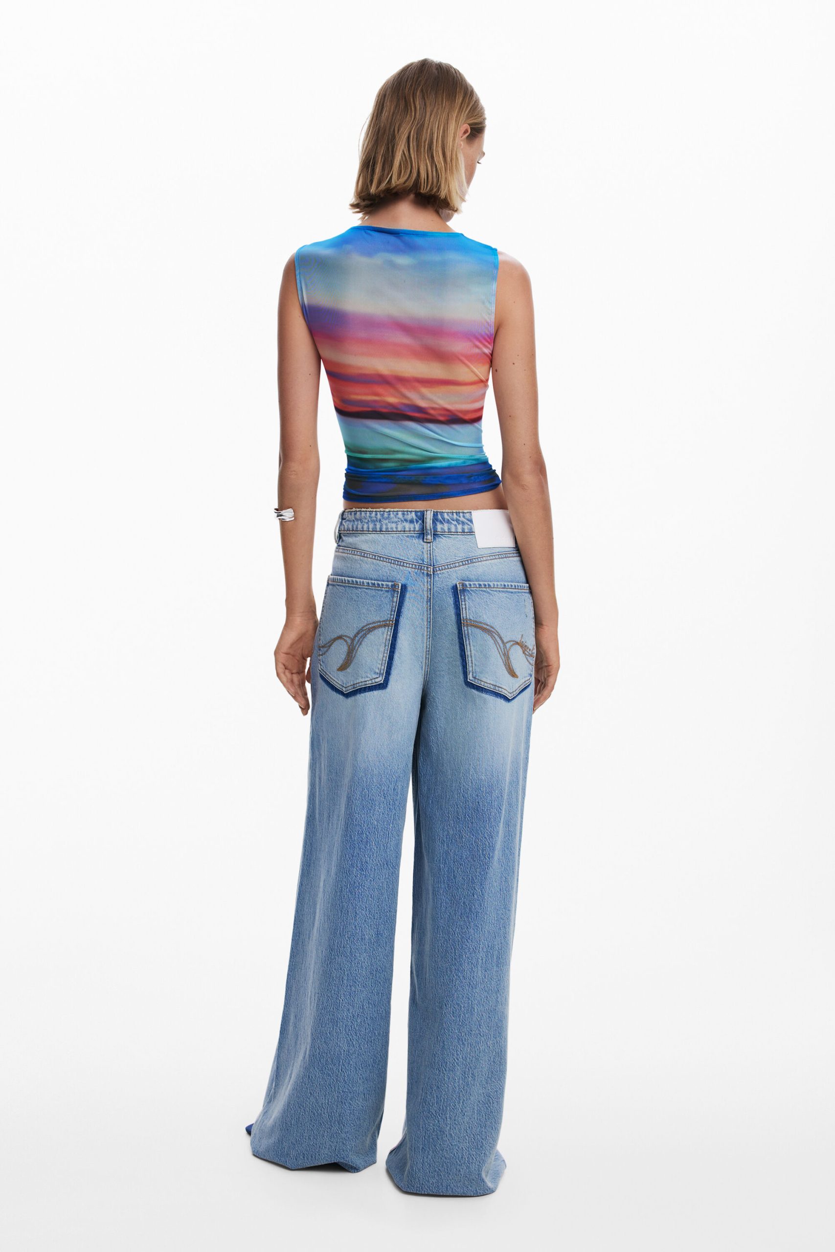 Wide Leg jeans with wide legs, front and back pockets in solid color.